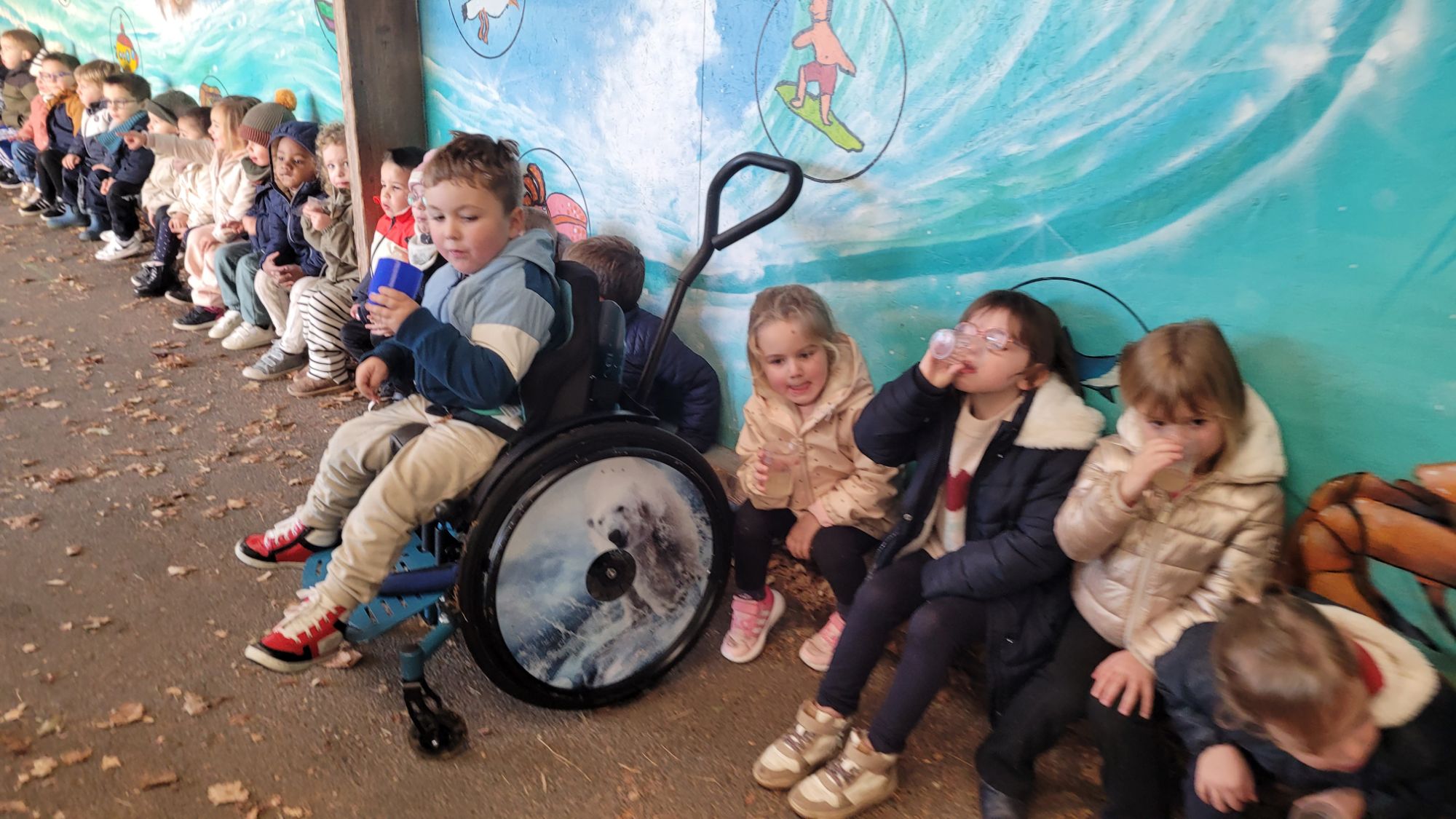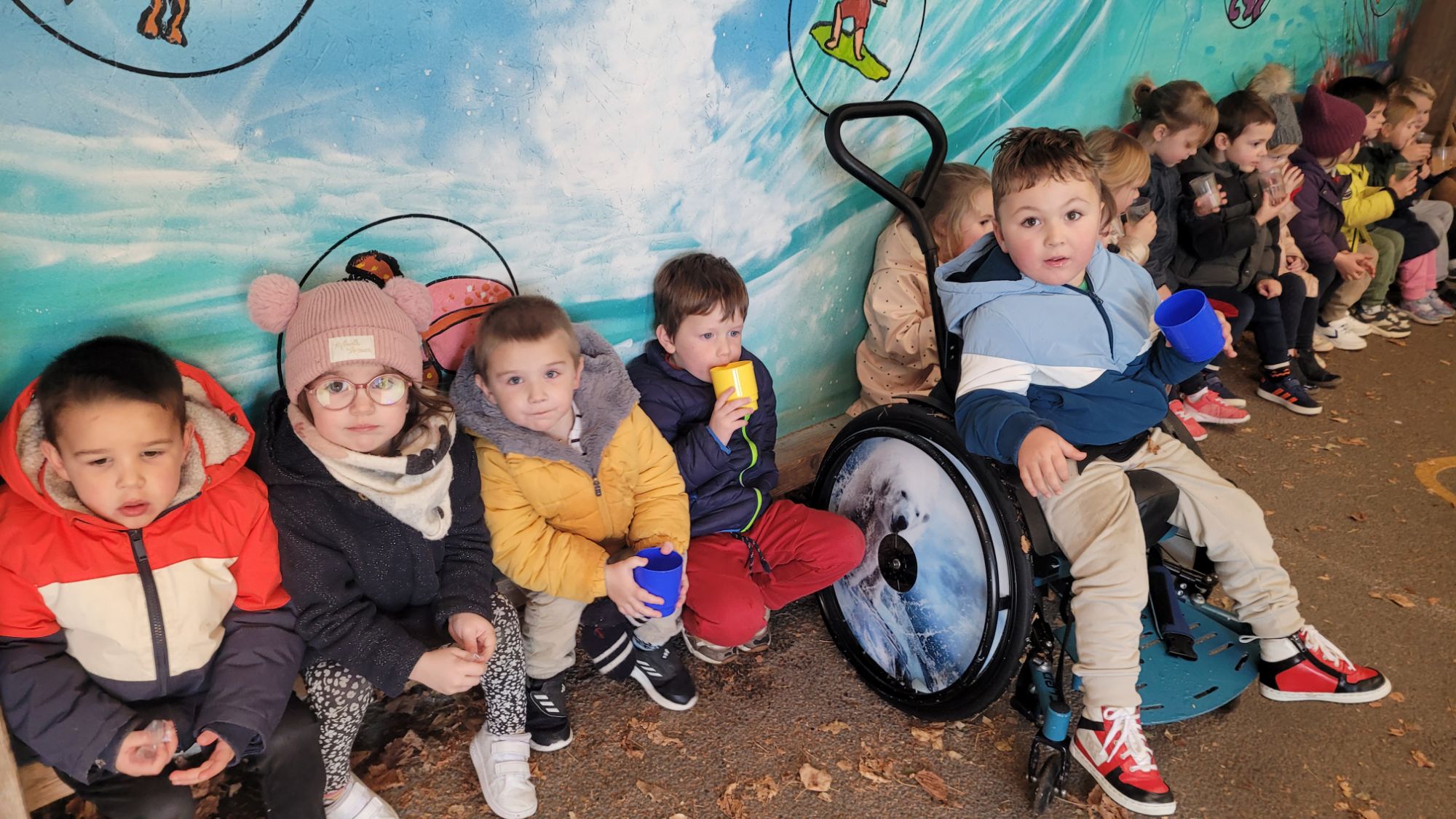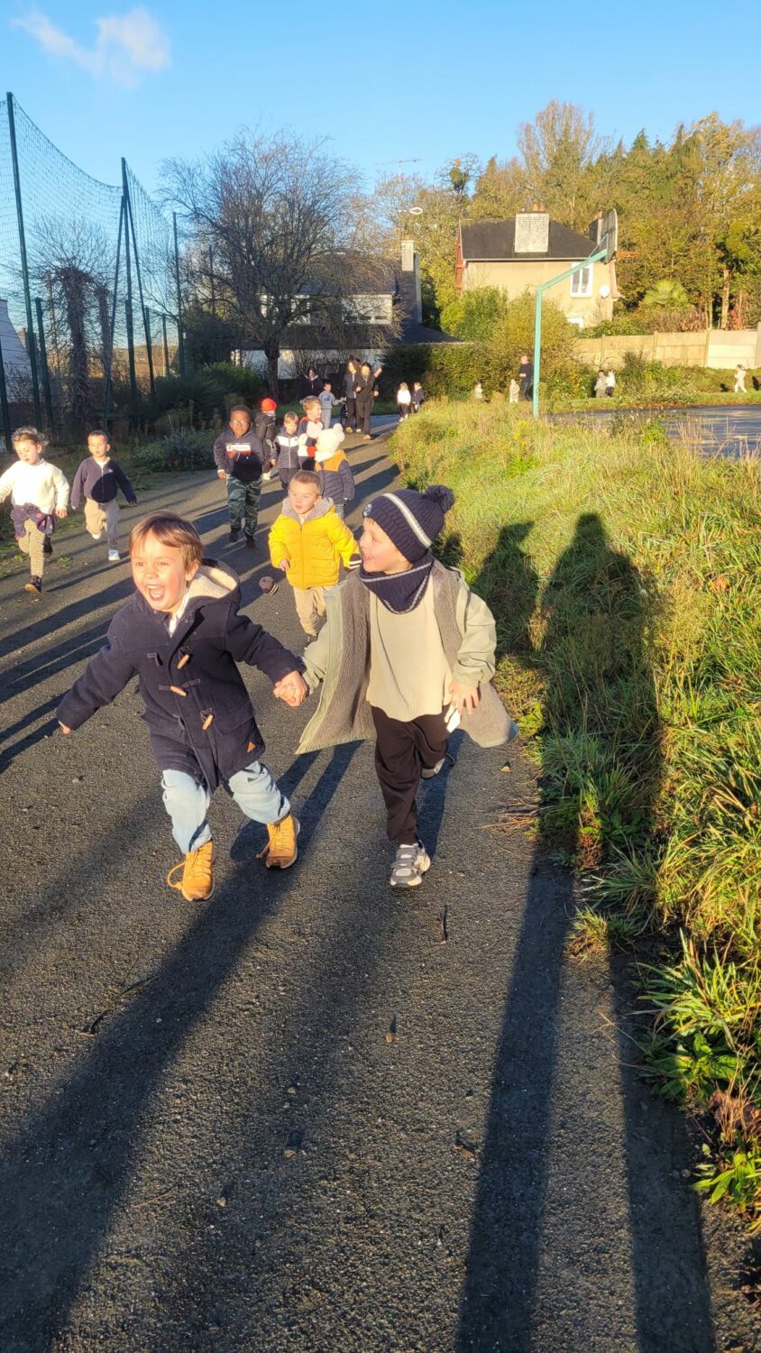 Aujourd’hui nous avons couru pour le Telethon. Ce fut un moment de sport festif et tous les enfants se donné à fond pour le Téléthon ! Et les parents ont bien participé aussi !! Ensuite nous avons partagé un moment convivial avec toutes les maternelles pour un goûter sous le préau ! C’était super !!