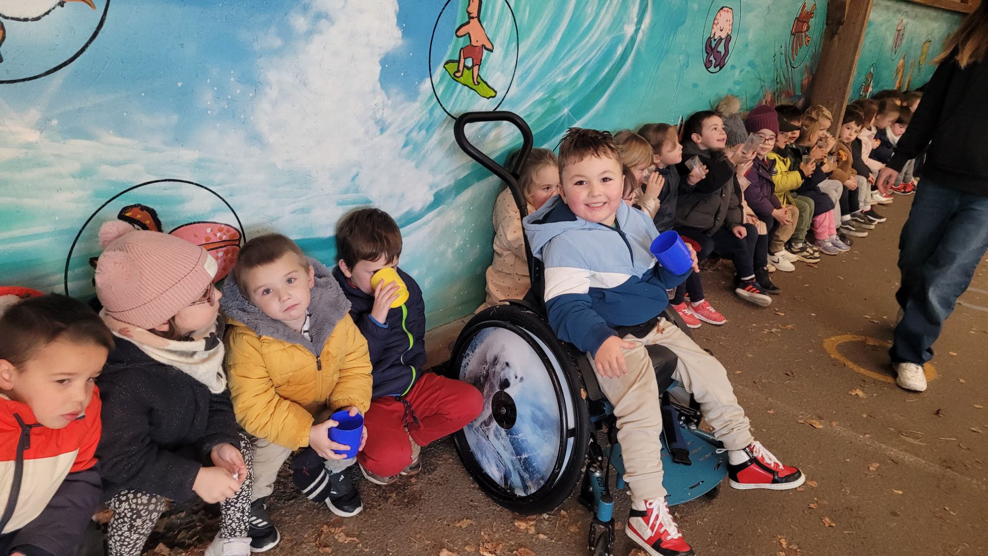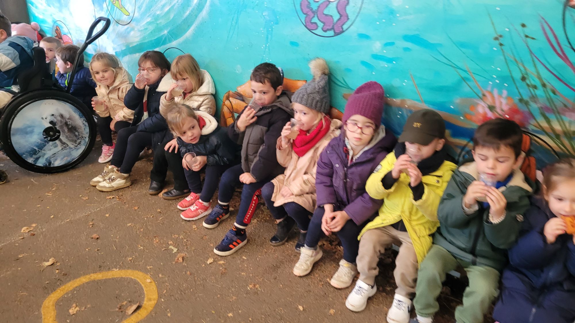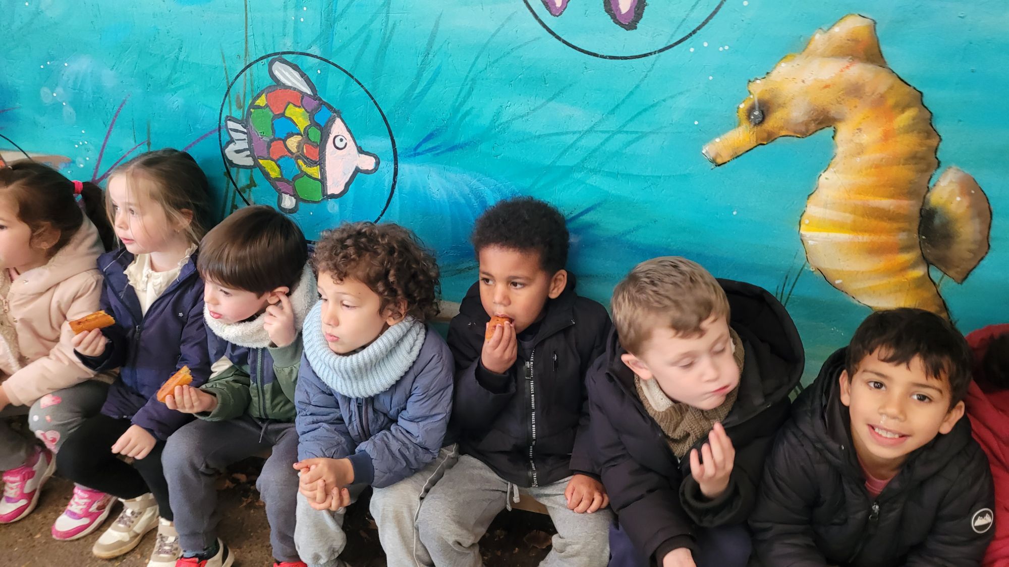 Aujourd’hui nous avons couru pour le Telethon. Ce fut un moment de sport festif et tous les enfants se donné à fond pour le Téléthon ! Et les parents ont bien participé aussi !! Ensuite nous avons partagé un moment convivial avec toutes les maternelles pour un goûter sous le préau ! C’était super !!
