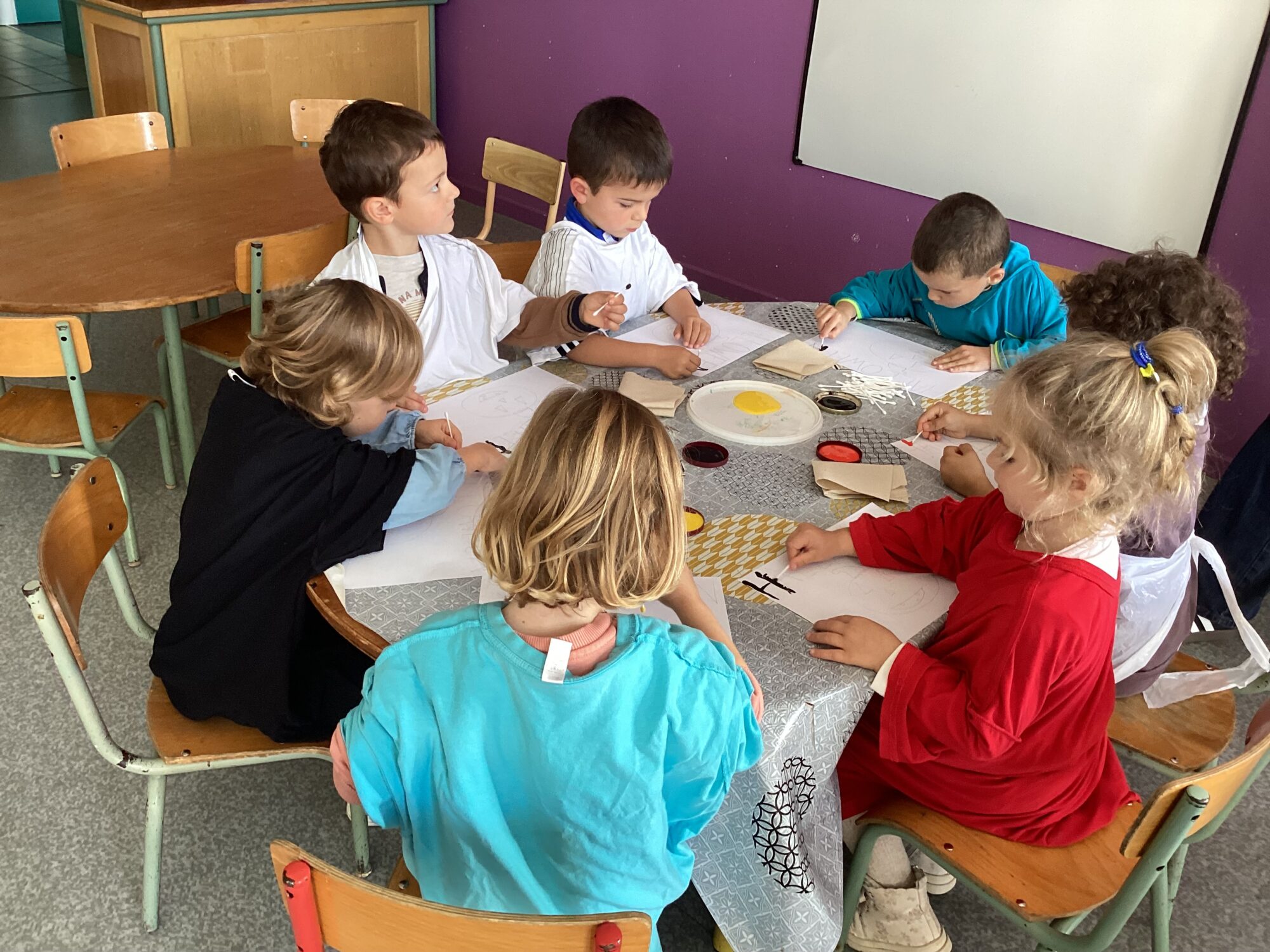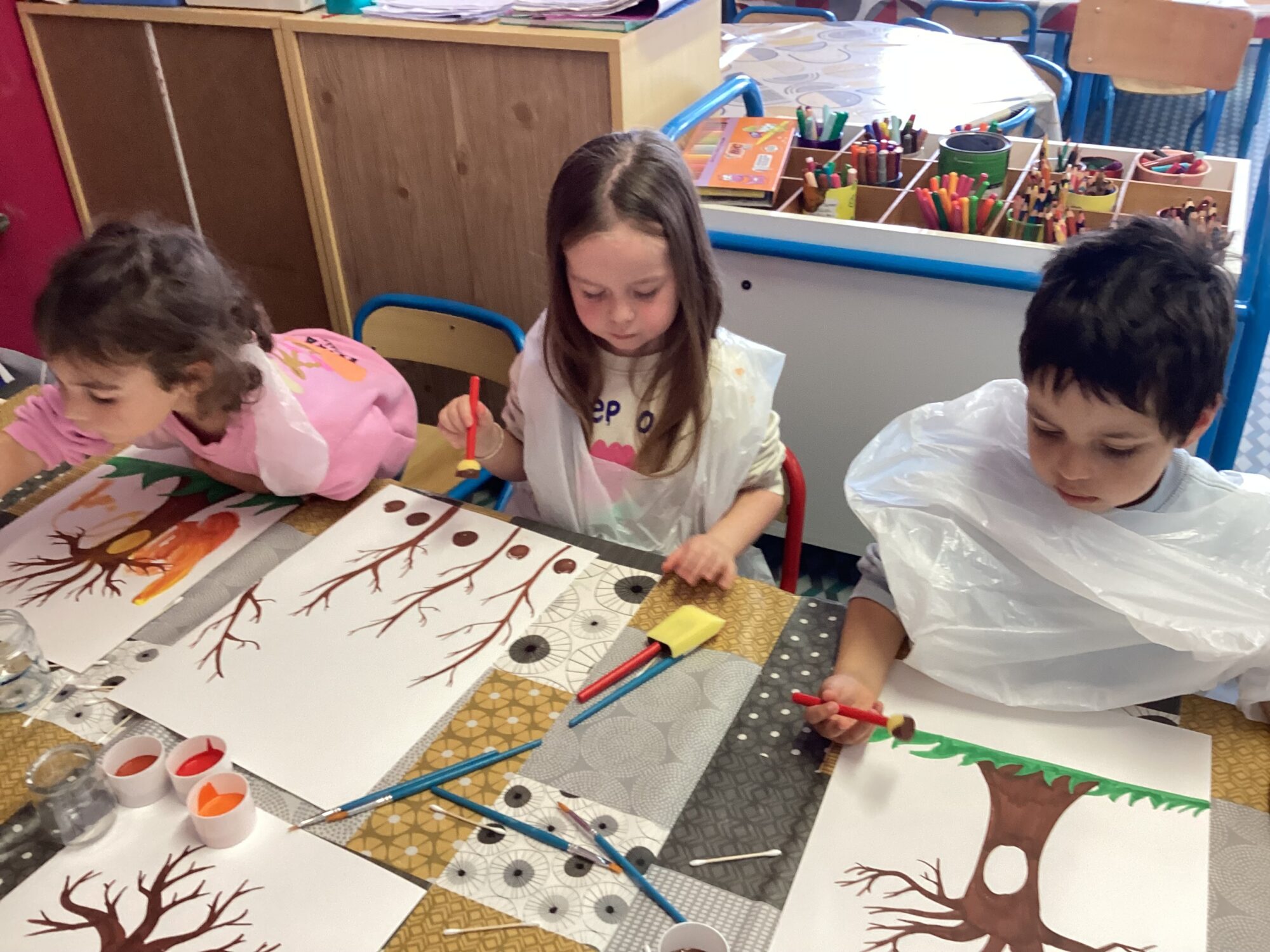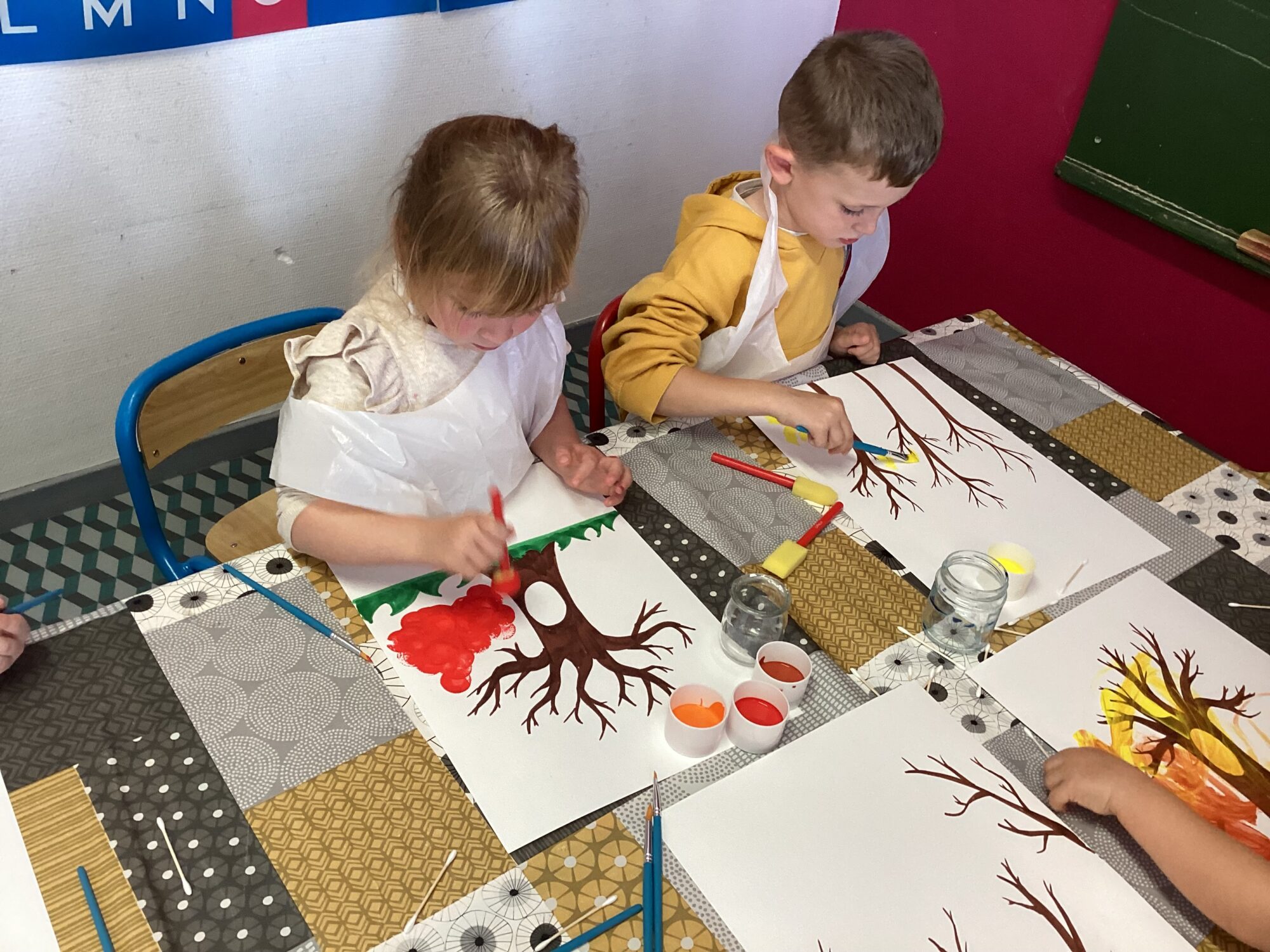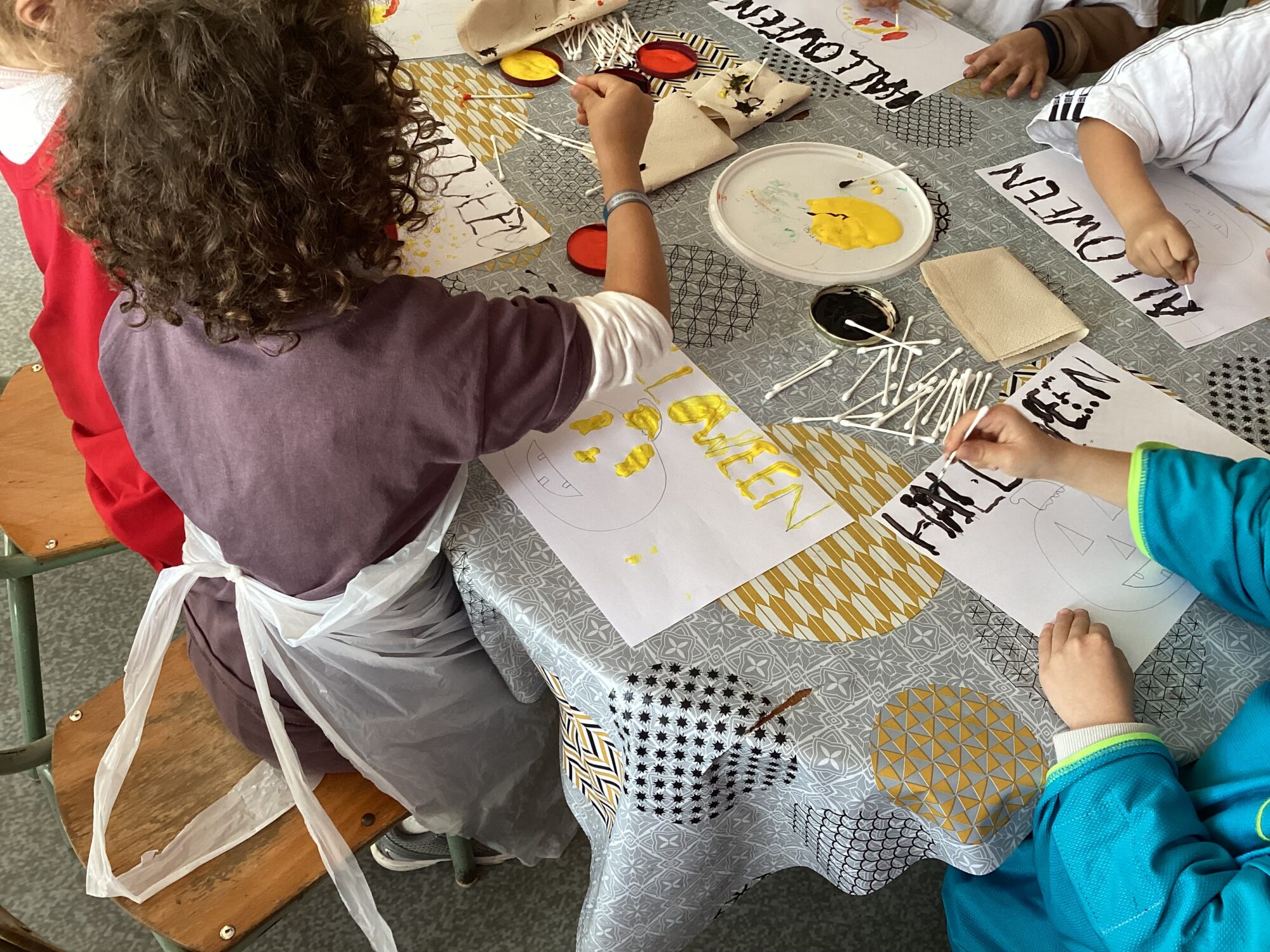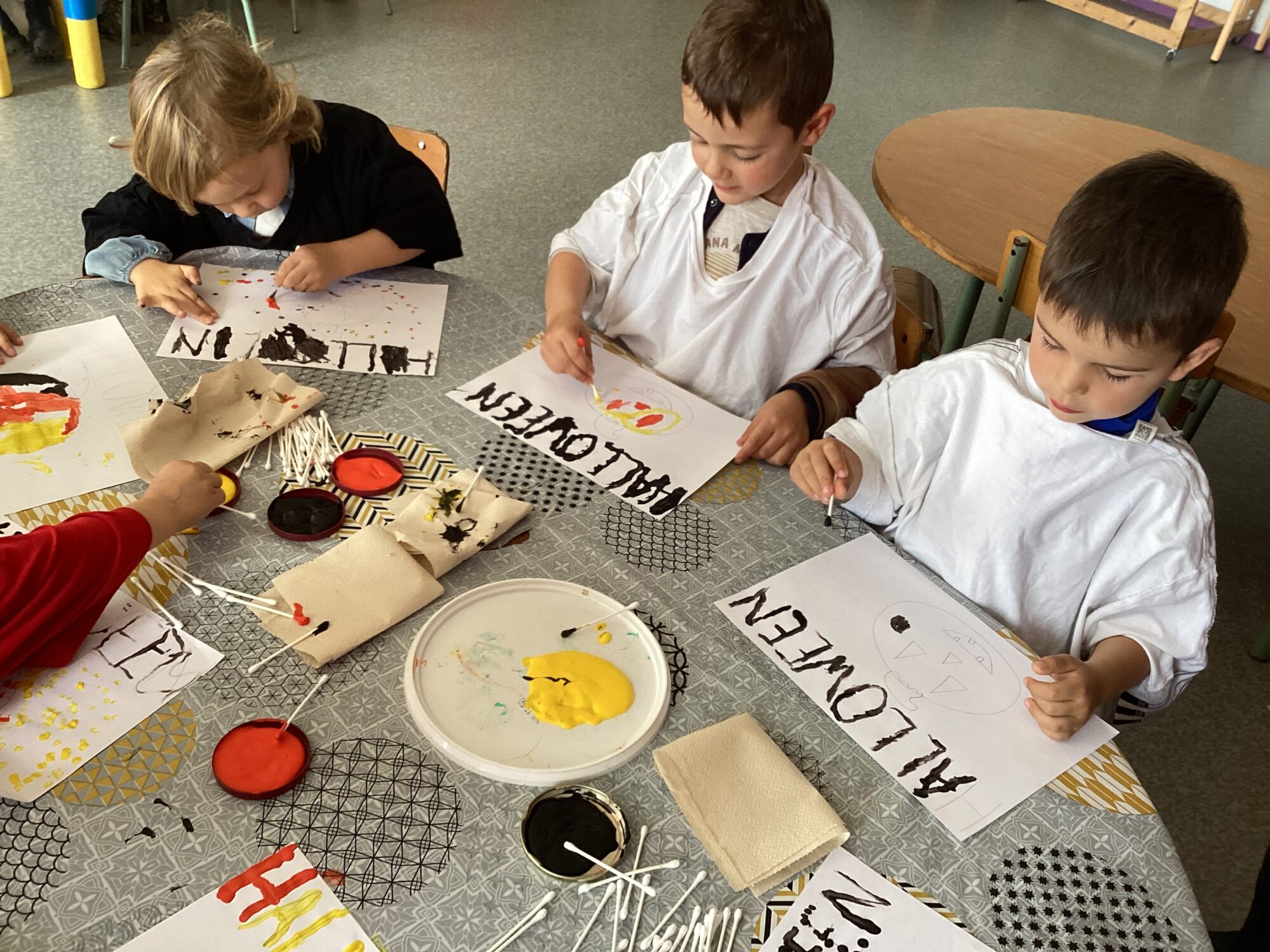 Les élèves ont participé au choix à un atelier : peinture aux couleurs de l automne, collage pour réaliser un fantôme et peinture sur le thème Halloween.