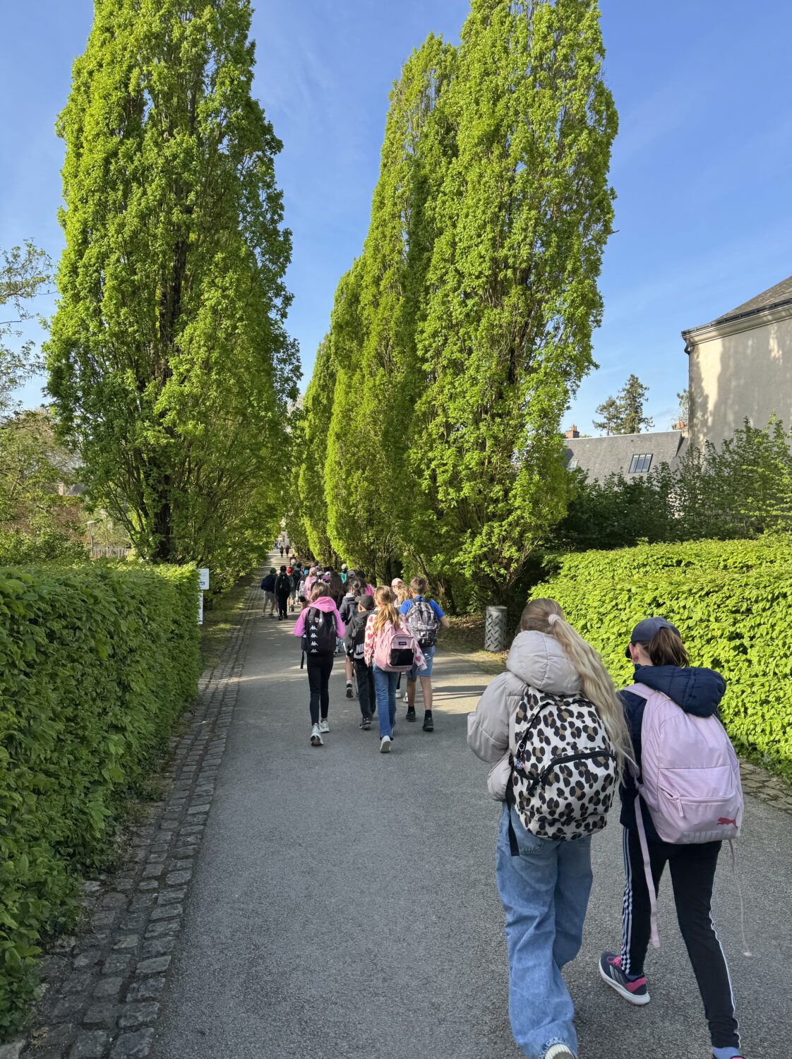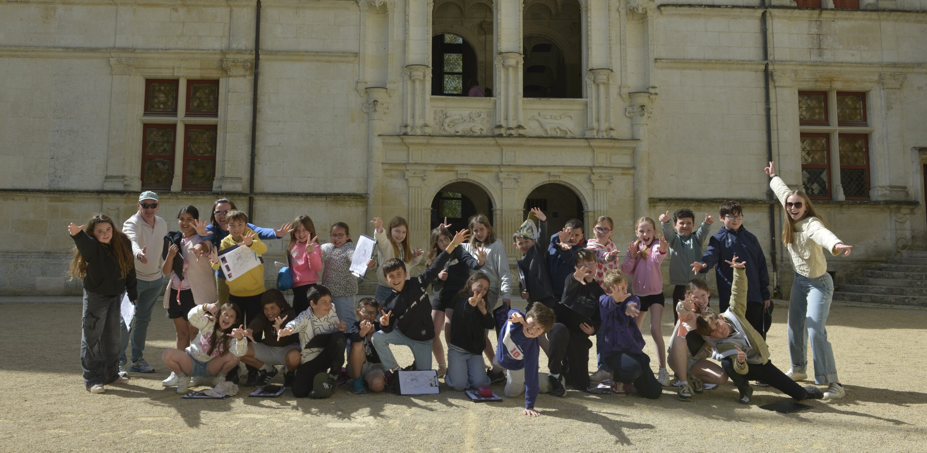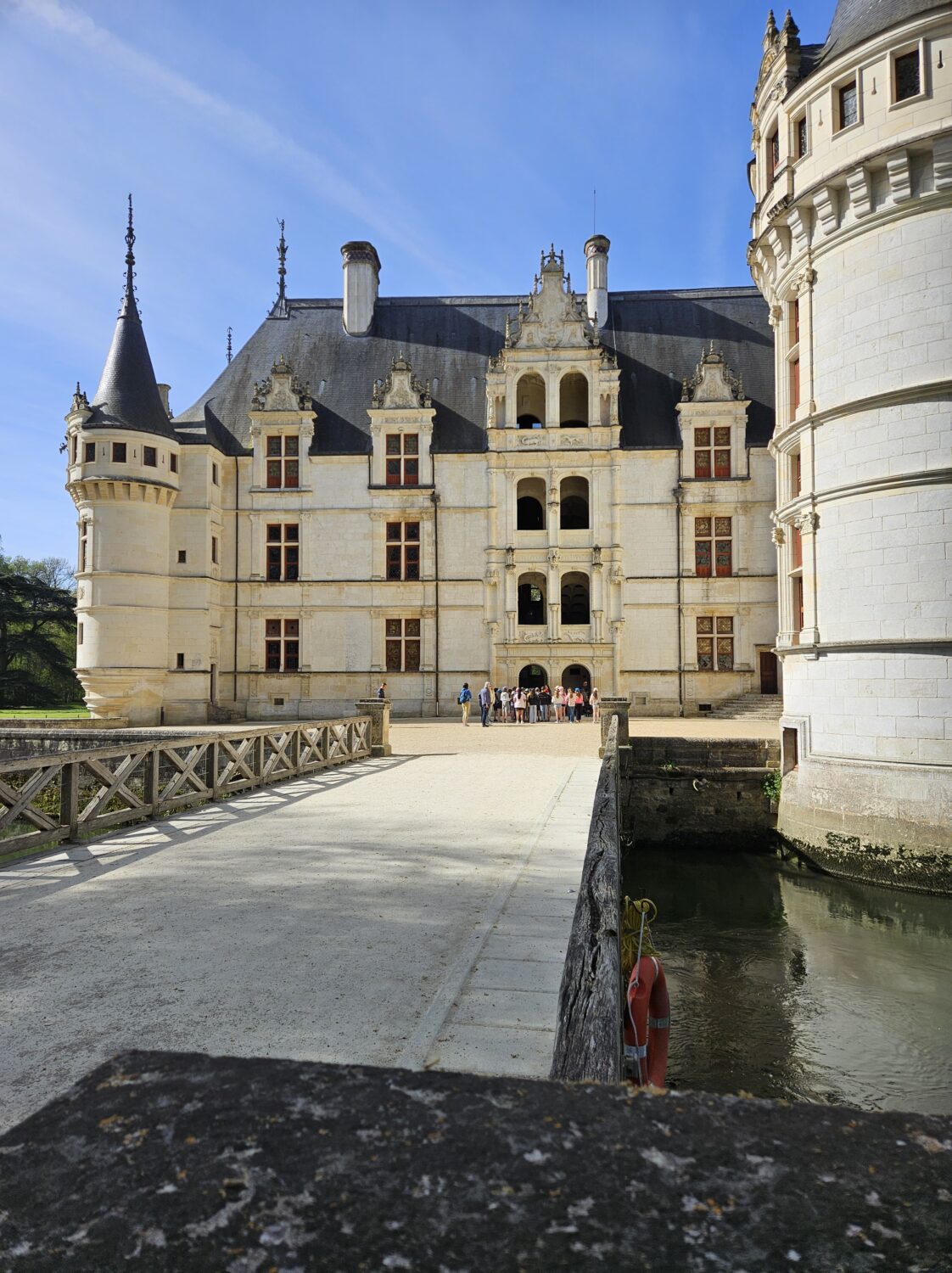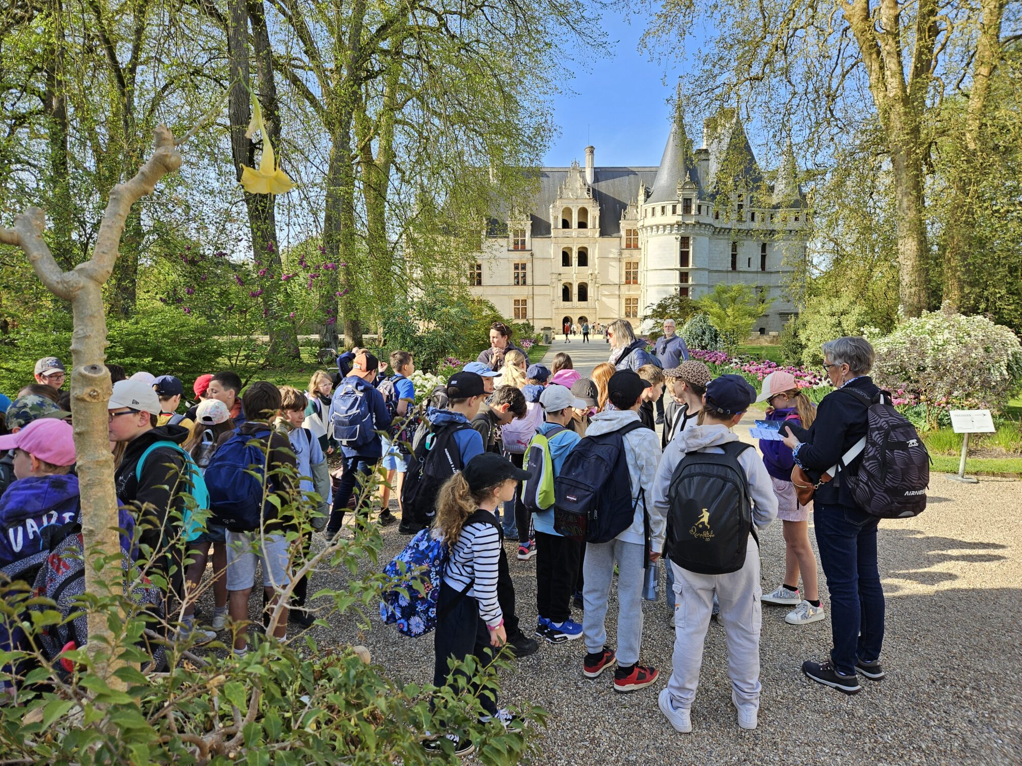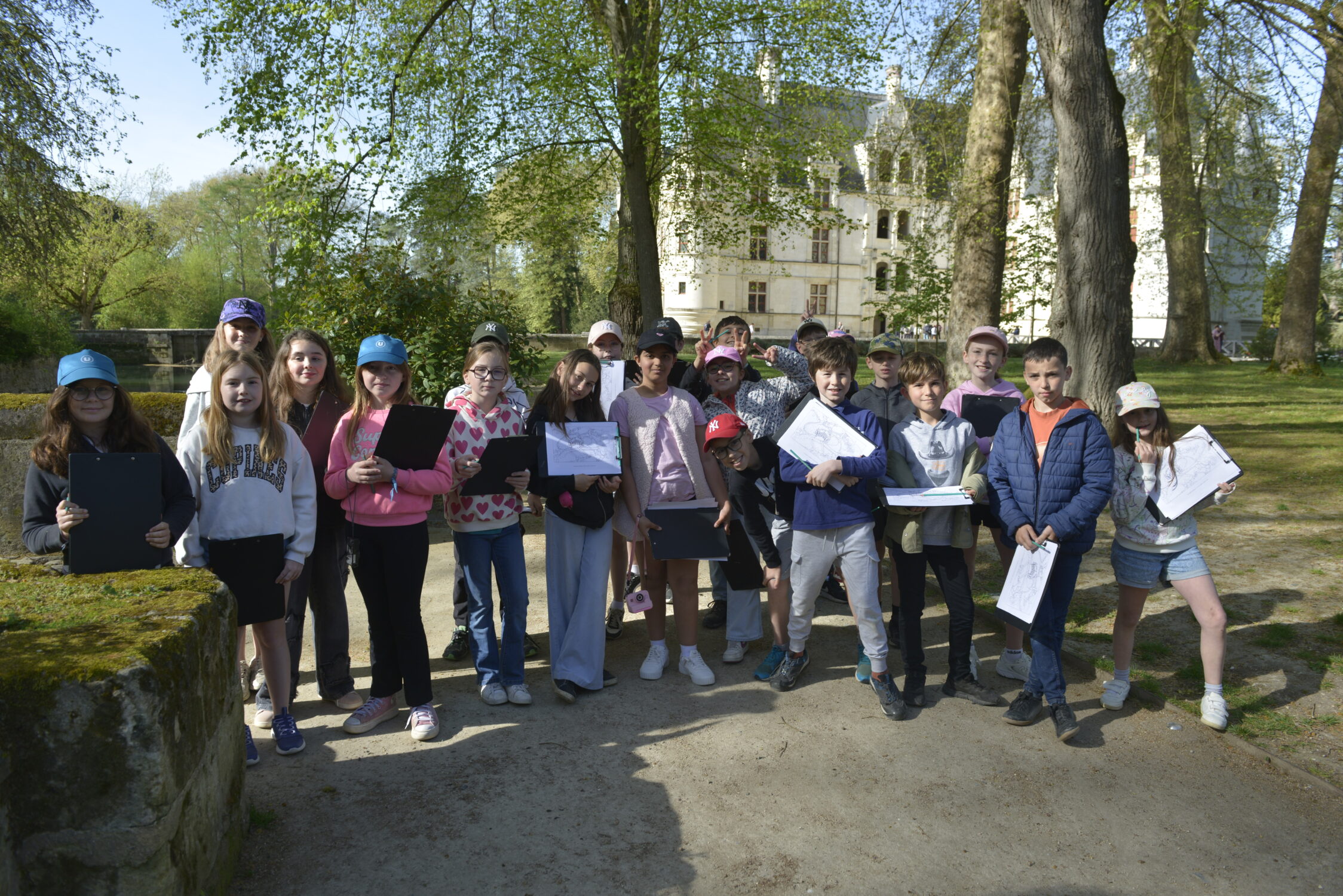 Nous voilà partis pour Azay le Rideau. Une visite du château était programmée. Ce monument est un joyau de la Renaissance française. Il semble flotter sur les eaux de l’Indre qui l’entourent. Construit au XVIe siècle sous le règne de François Ier, il présente une architecture raffinée alliant l’élégance italienne et la tradition française de l’époque. Nous avons pu suivre les explications de notre guide qui nous a transmis ses connaissances à travers la découverte du vocabulaire de l’architecture (tourelle, corniche, encorbellement, pilastre …). Le travail d’observation de la façade arrière nous a même permis de faire des liens avec les cours de géométrie sur la symétrie. Avec la visite de l’intérieur nous avons découvert une partie des appartements de l’ancien propriétaire, Gilles Berthelot, un riche financier et maire de Tours, au début du XVIe siècle. Aujourd’hui, il appartient à tous les Français et est géré par le Centre des monuments nationaux.