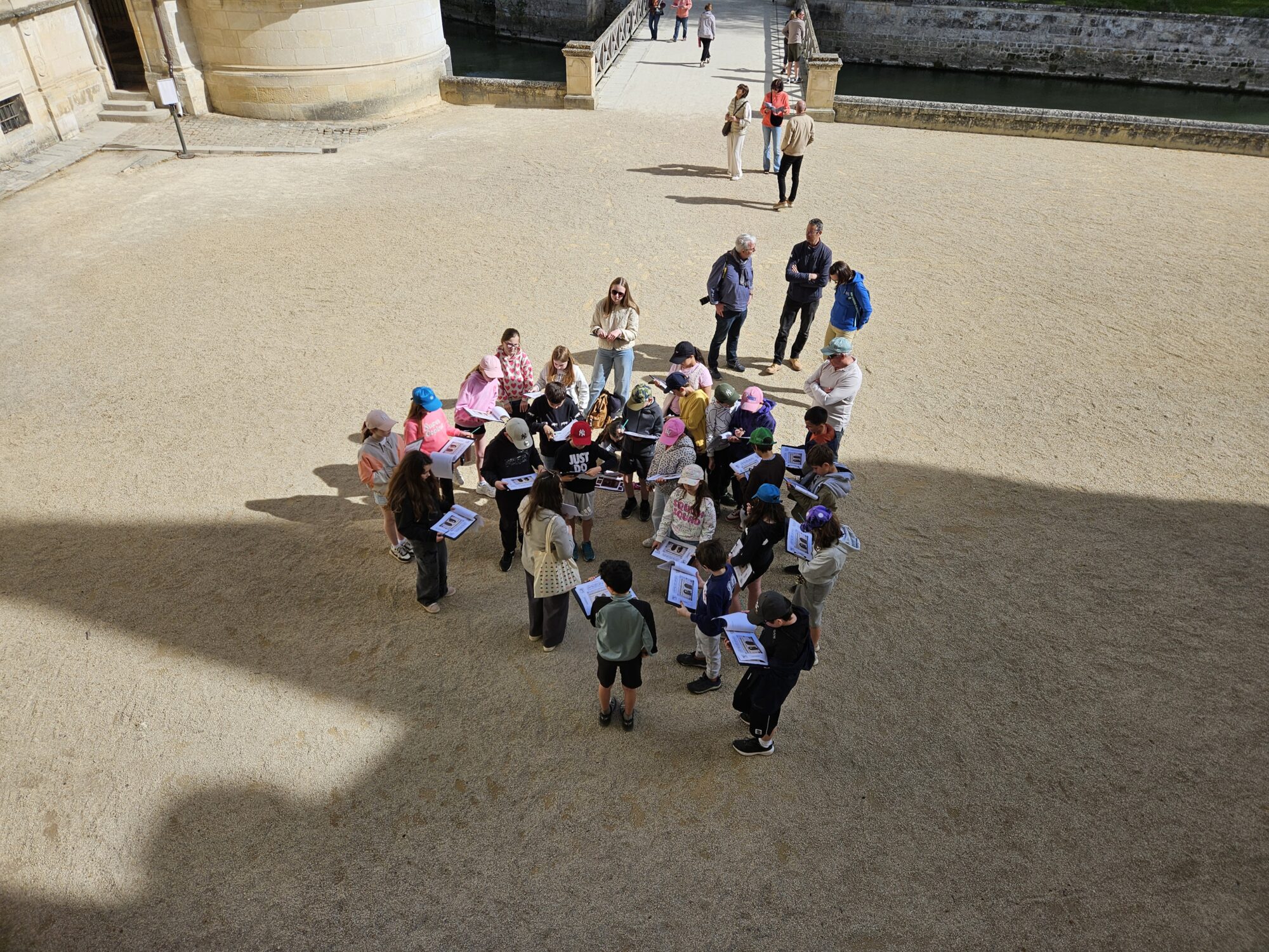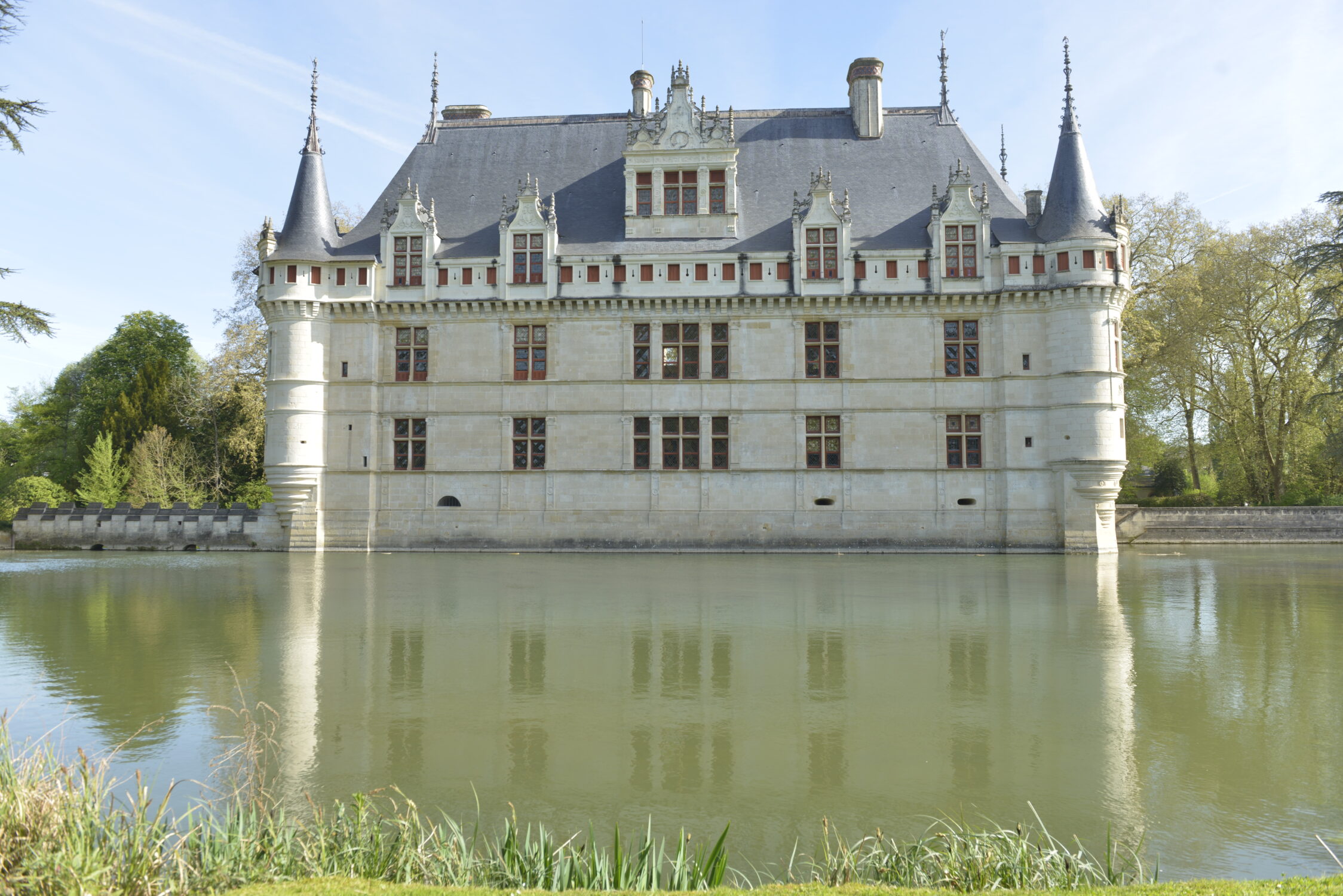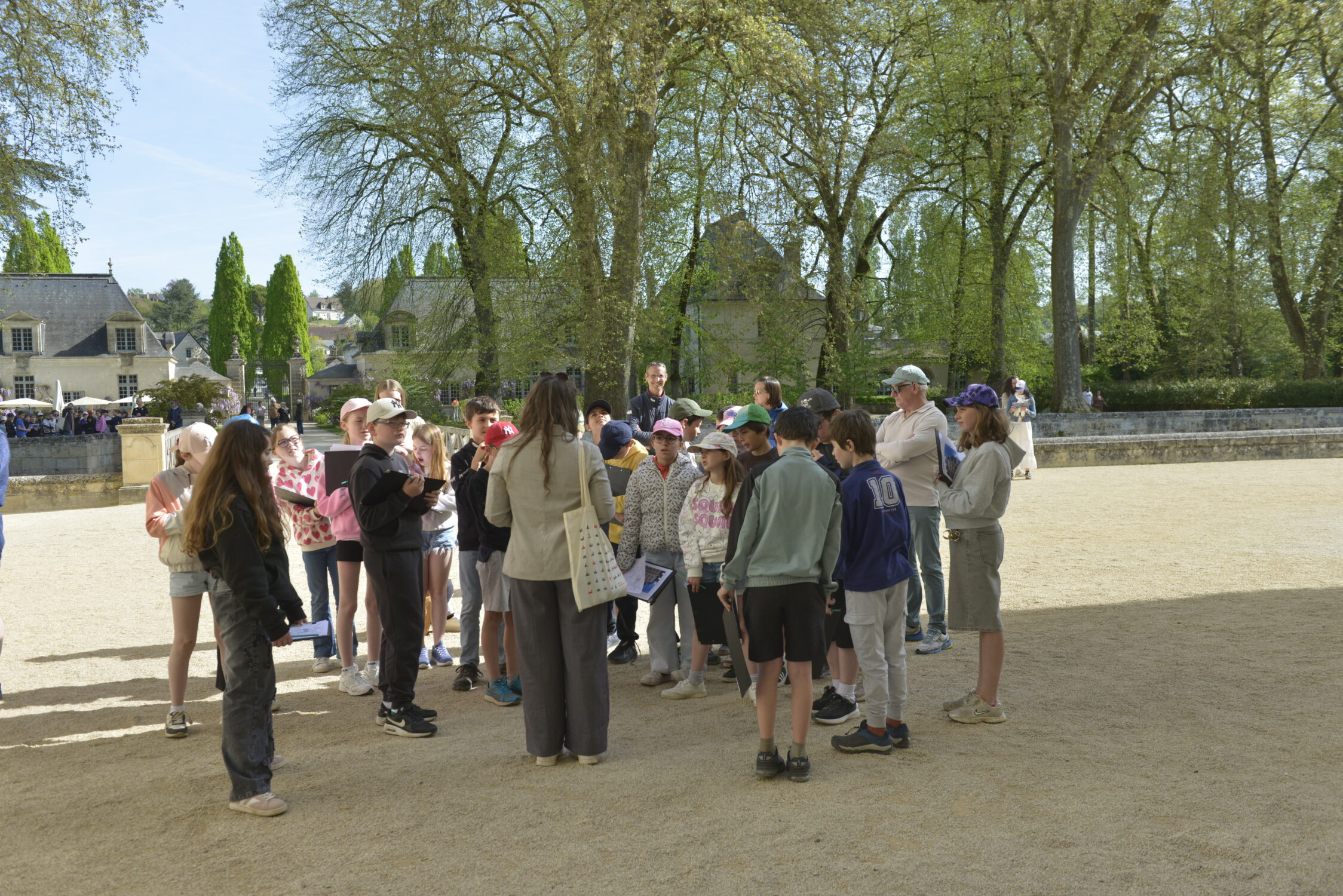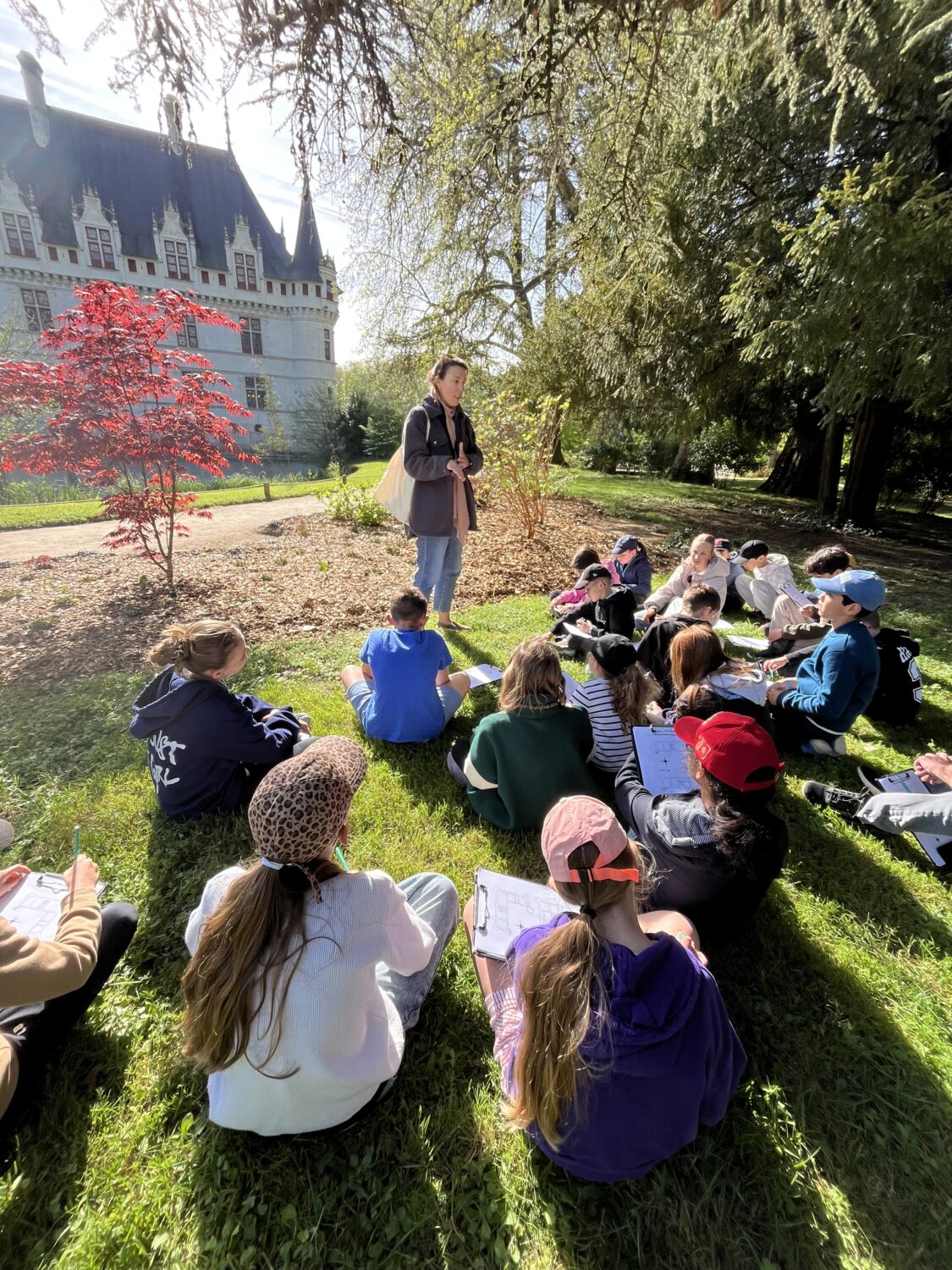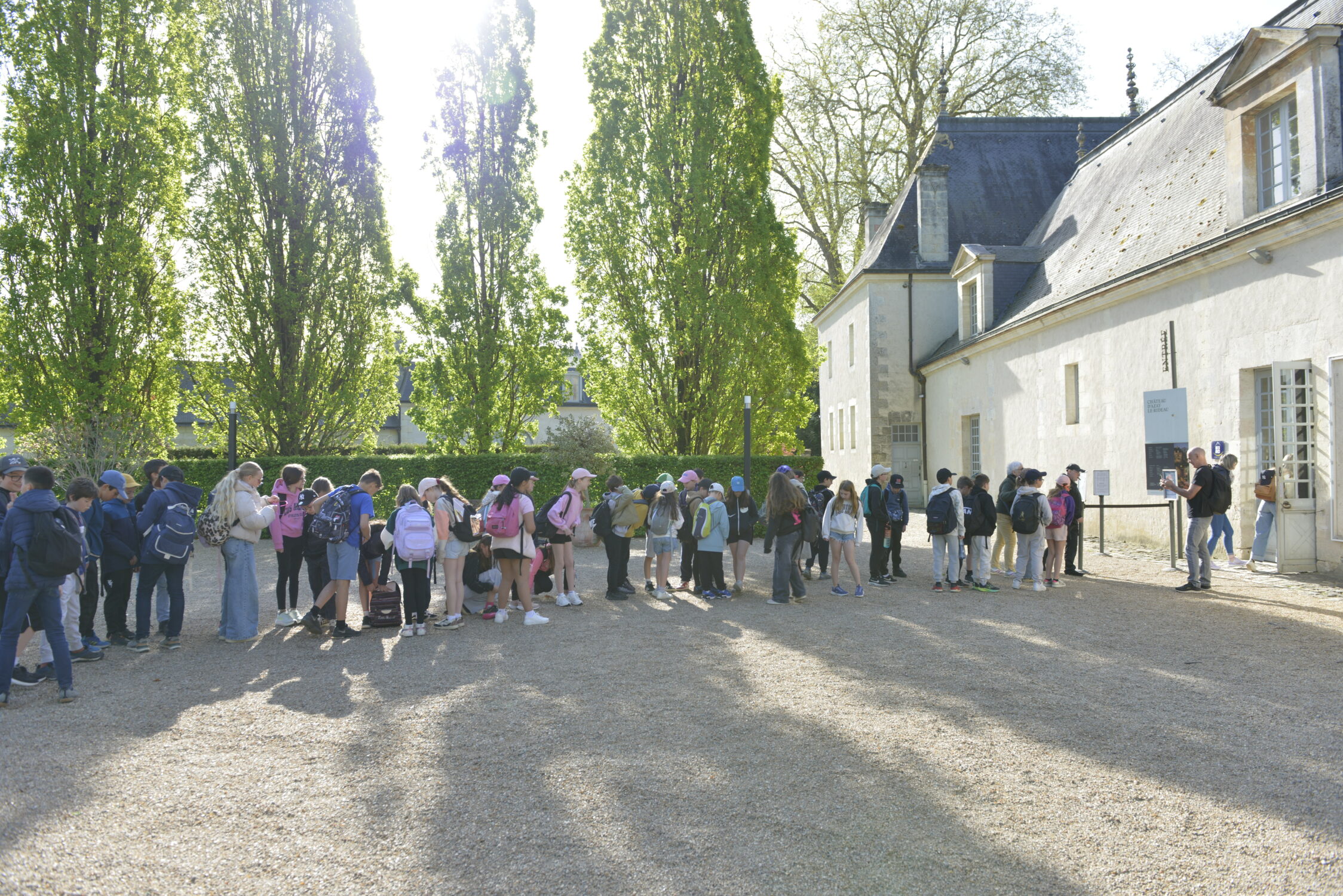 Nous voilà partis pour Azay le Rideau. Une visite du château était programmée. Ce monument est un joyau de la Renaissance française. Il semble flotter sur les eaux de l’Indre qui l’entourent. Construit au XVIe siècle sous le règne de François Ier, il présente une architecture raffinée alliant l’élégance italienne et la tradition française de l’époque. Nous avons pu suivre les explications de notre guide qui nous a transmis ses connaissances à travers la découverte du vocabulaire de l’architecture (tourelle, corniche, encorbellement, pilastre …). Le travail d’observation de la façade arrière nous a même permis de faire des liens avec les cours de géométrie sur la symétrie. Avec la visite de l’intérieur nous avons découvert une partie des appartements de l’ancien propriétaire, Gilles Berthelot, un riche financier et maire de Tours, au début du XVIe siècle. Aujourd’hui, il appartient à tous les Français et est géré par le Centre des monuments nationaux.