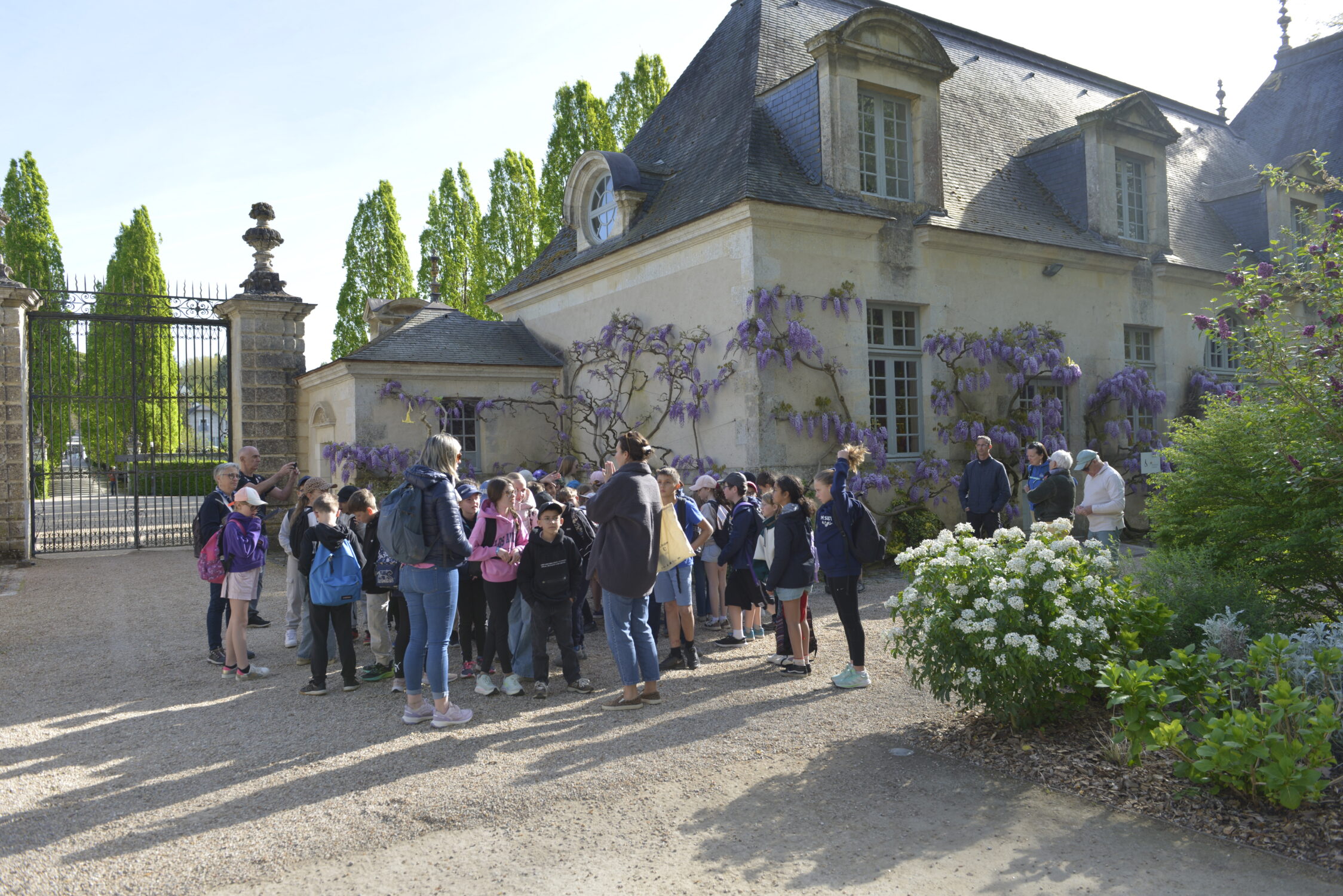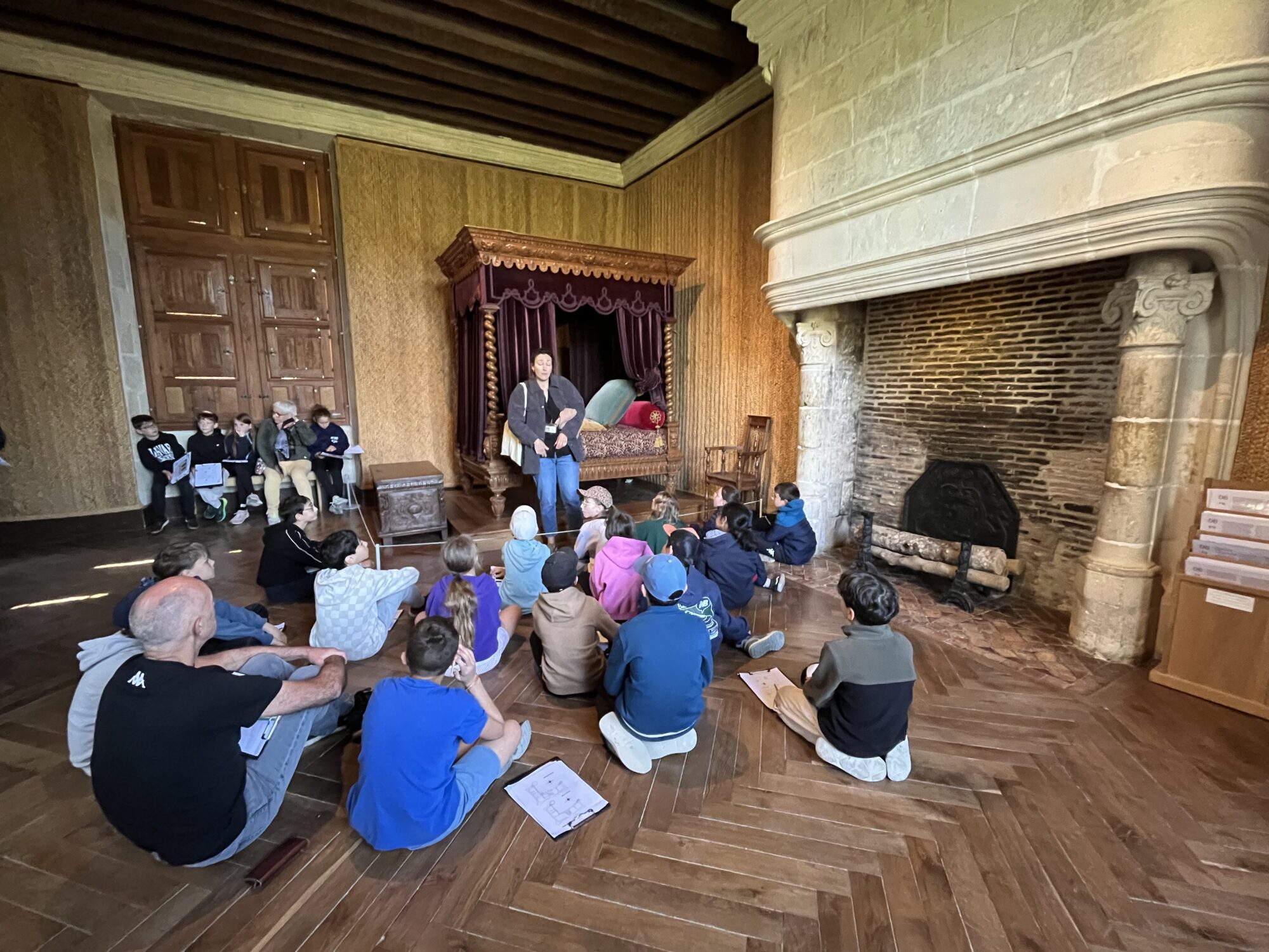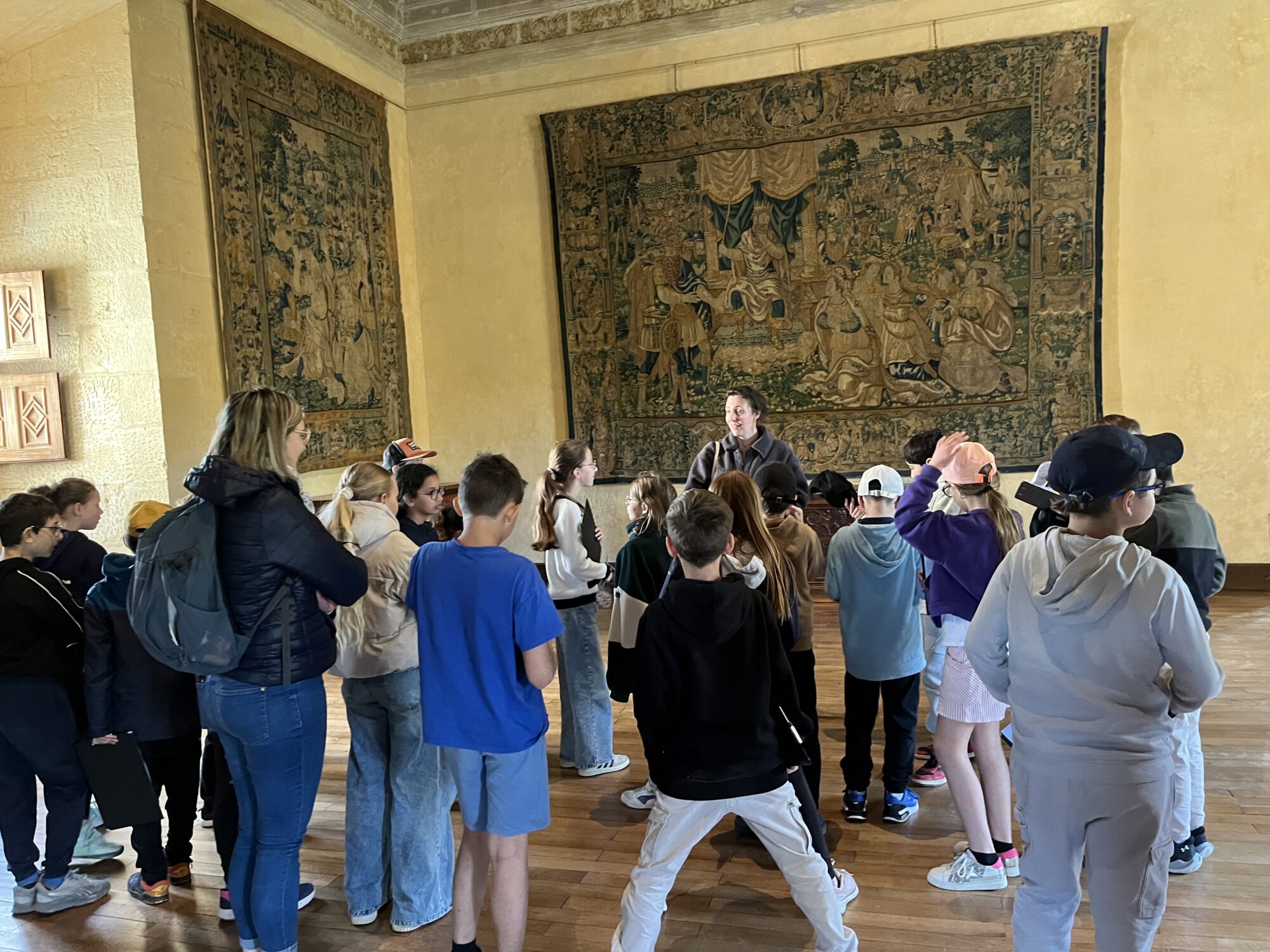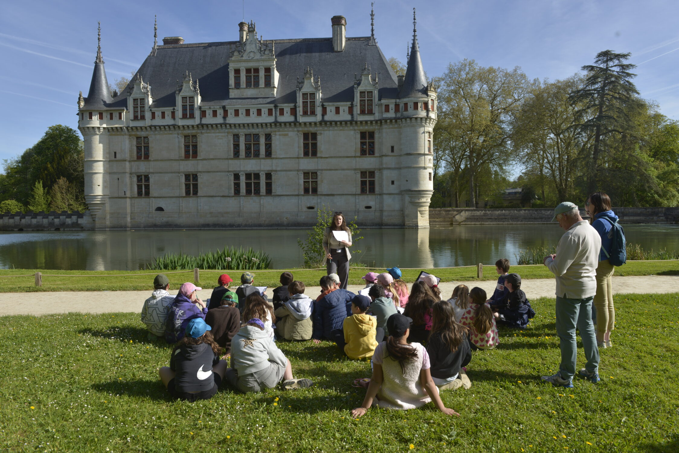 Nous voilà partis pour Azay le Rideau. Une visite du château était programmée. Ce monument est un joyau de la Renaissance française. Il semble flotter sur les eaux de l’Indre qui l’entourent. Construit au XVIe siècle sous le règne de François Ier, il présente une architecture raffinée alliant l’élégance italienne et la tradition française de l’époque. Nous avons pu suivre les explications de notre guide qui nous a transmis ses connaissances à travers la découverte du vocabulaire de l’architecture (tourelle, corniche, encorbellement, pilastre …). Le travail d’observation de la façade arrière nous a même permis de faire des liens avec les cours de géométrie sur la symétrie. Avec la visite de l’intérieur nous avons découvert une partie des appartements de l’ancien propriétaire, Gilles Berthelot, un riche financier et maire de Tours, au début du XVIe siècle. Aujourd’hui, il appartient à tous les Français et est géré par le Centre des monuments nationaux.