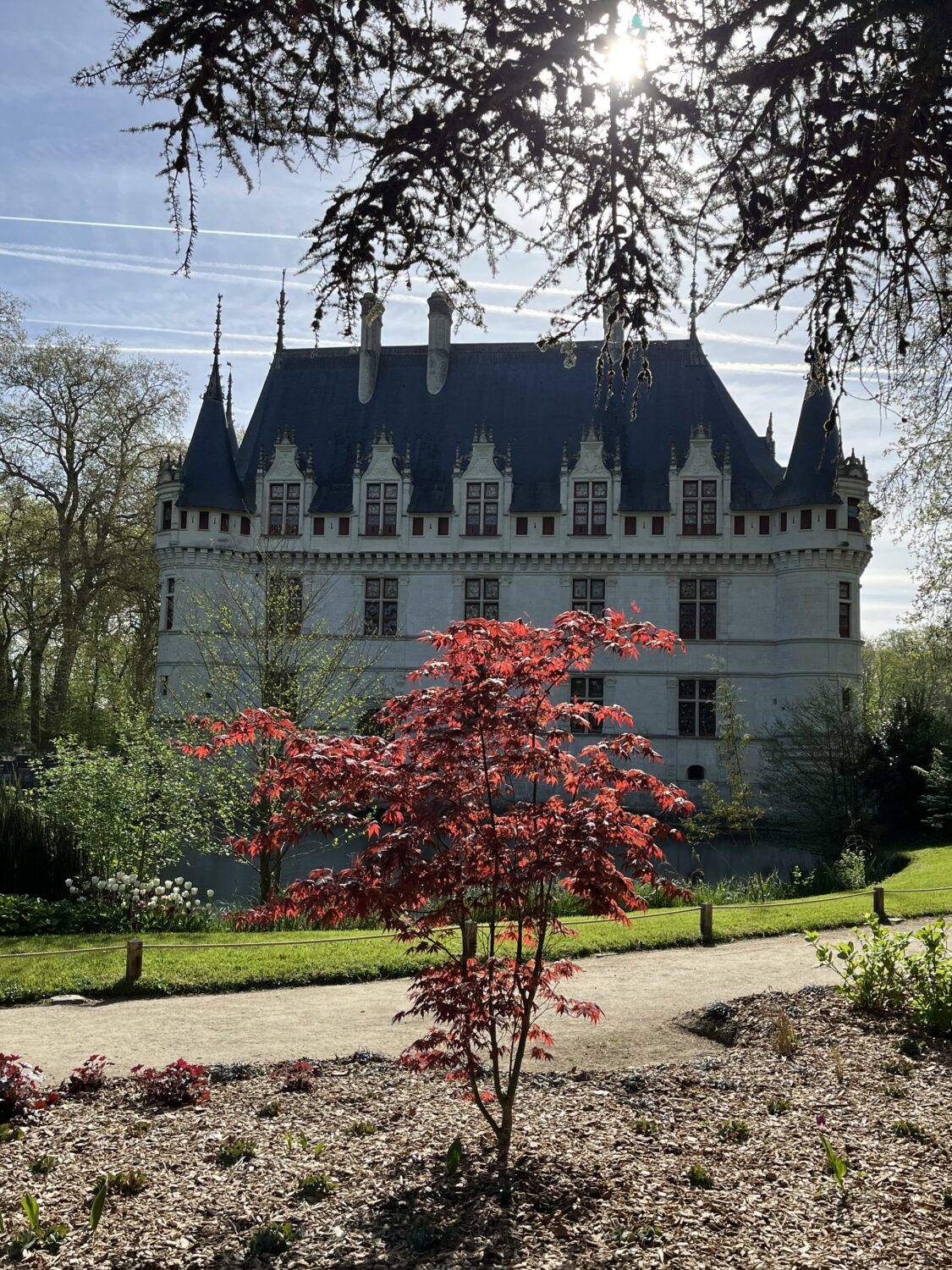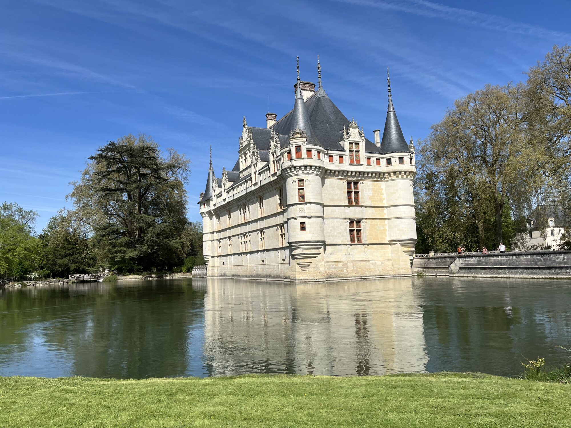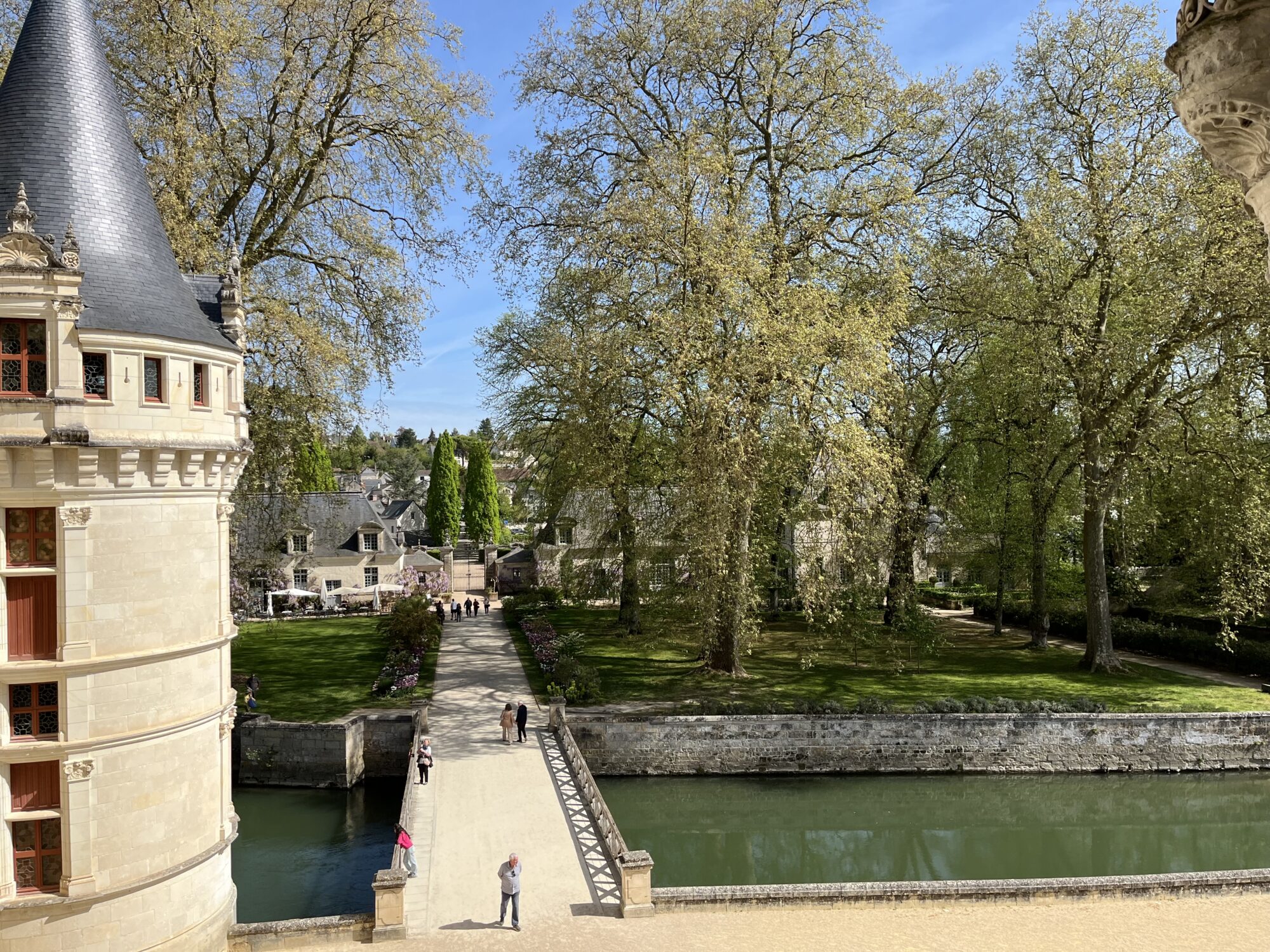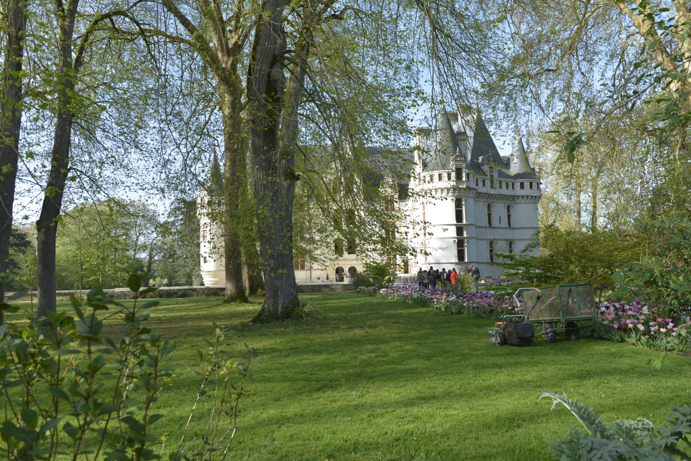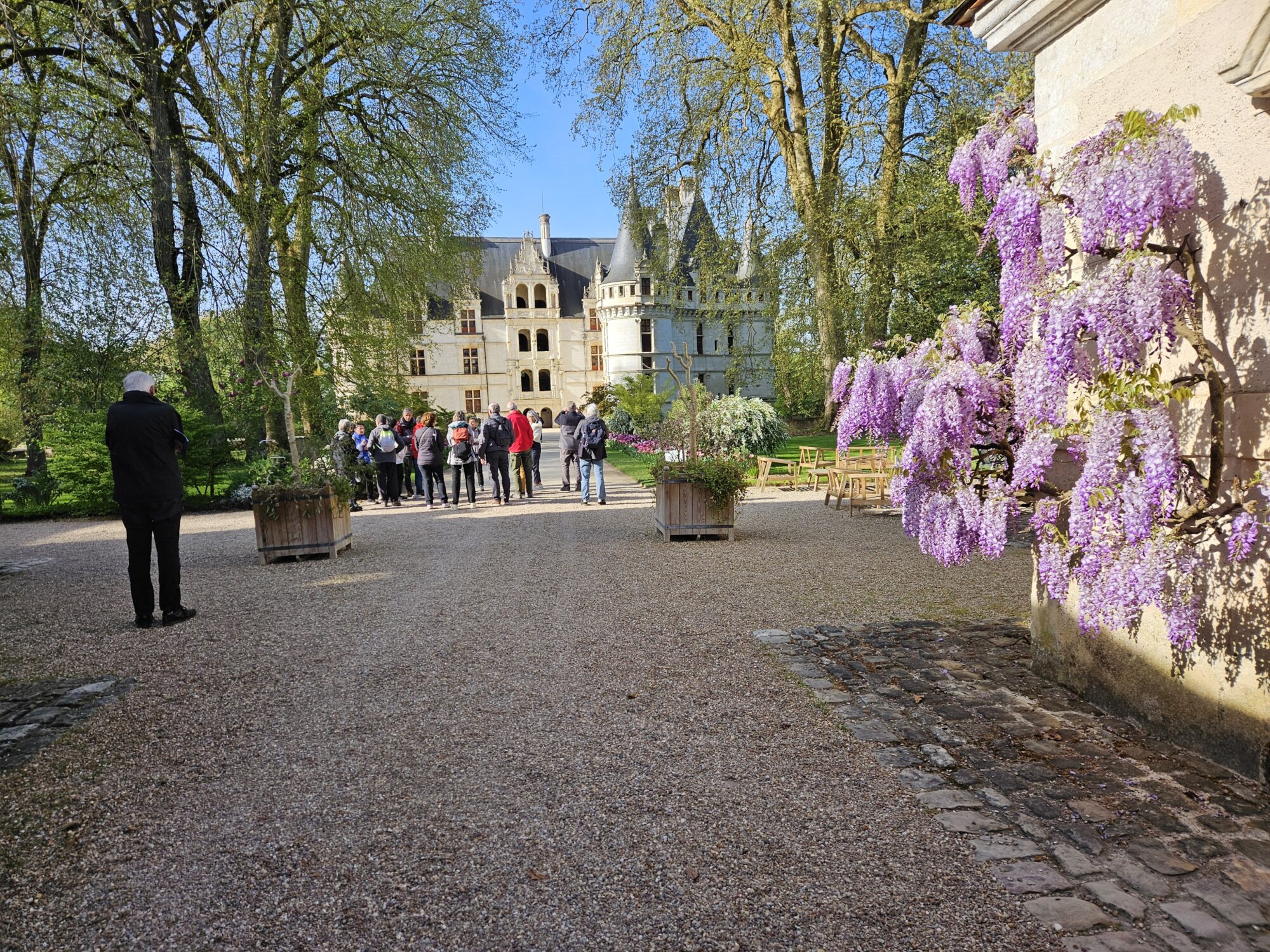 Nous voilà partis pour Azay le Rideau. Une visite du château était programmée. Ce monument est un joyau de la Renaissance française. Il semble flotter sur les eaux de l’Indre qui l’entourent. Construit au XVIe siècle sous le règne de François Ier, il présente une architecture raffinée alliant l’élégance italienne et la tradition française de l’époque. Nous avons pu suivre les explications de notre guide qui nous a transmis ses connaissances à travers la découverte du vocabulaire de l’architecture (tourelle, corniche, encorbellement, pilastre …). Le travail d’observation de la façade arrière nous a même permis de faire des liens avec les cours de géométrie sur la symétrie. Avec la visite de l’intérieur nous avons découvert une partie des appartements de l’ancien propriétaire, Gilles Berthelot, un riche financier et maire de Tours, au début du XVIe siècle. Aujourd’hui, il appartient à tous les Français et est géré par le Centre des monuments nationaux.