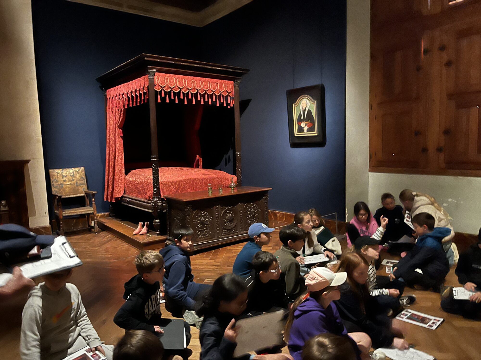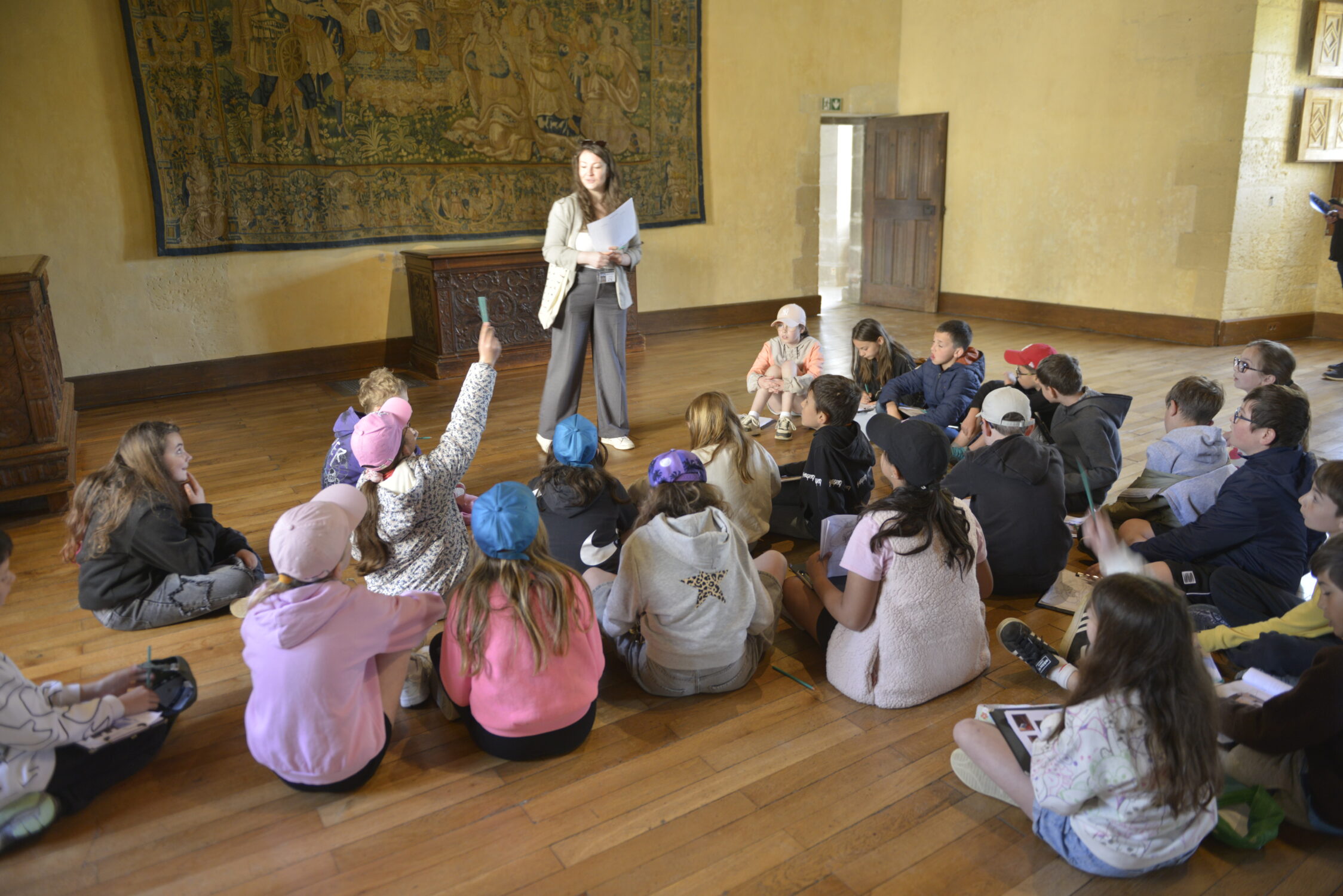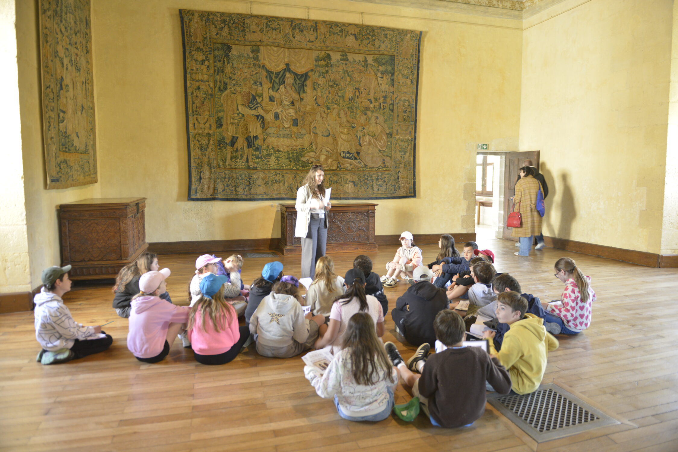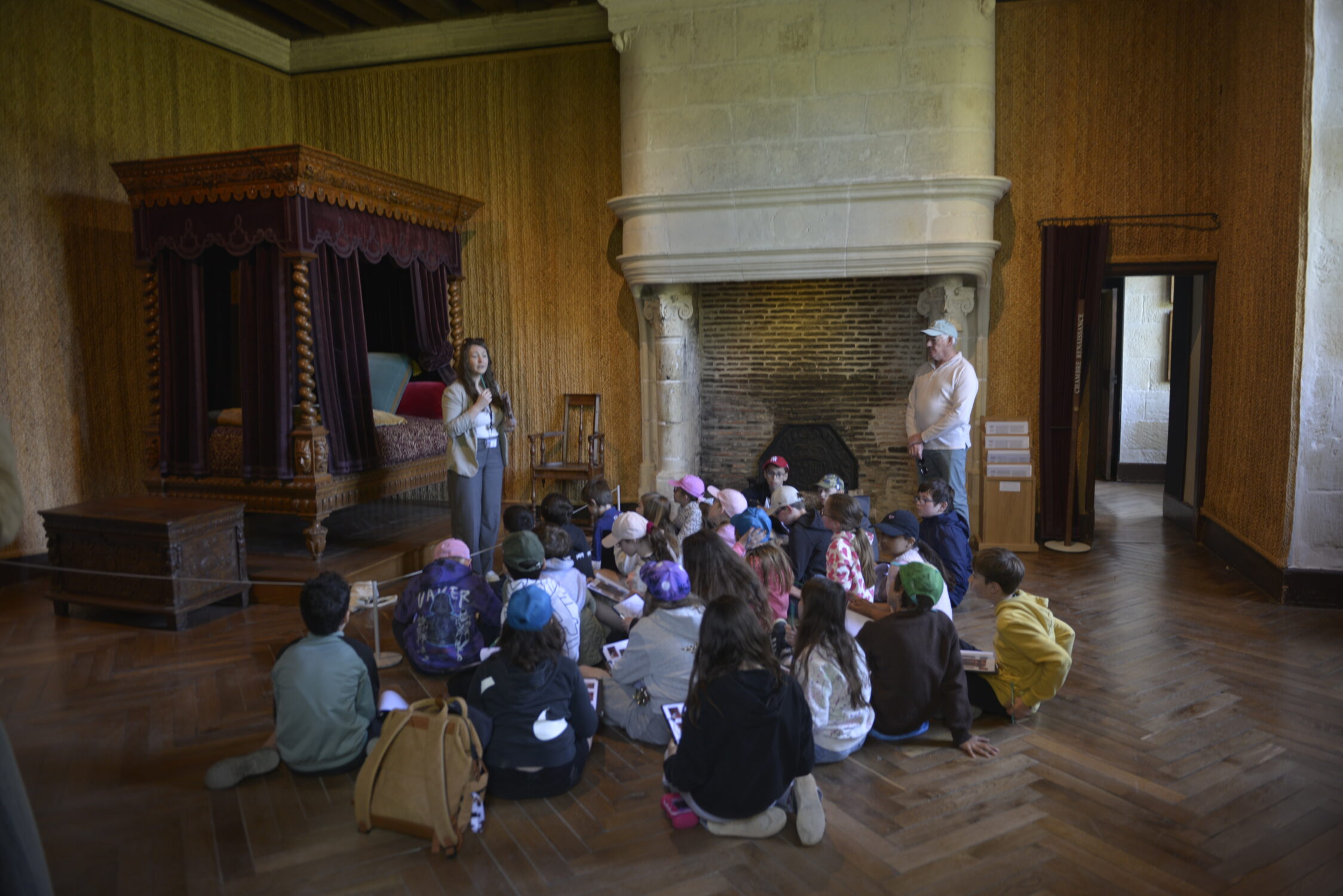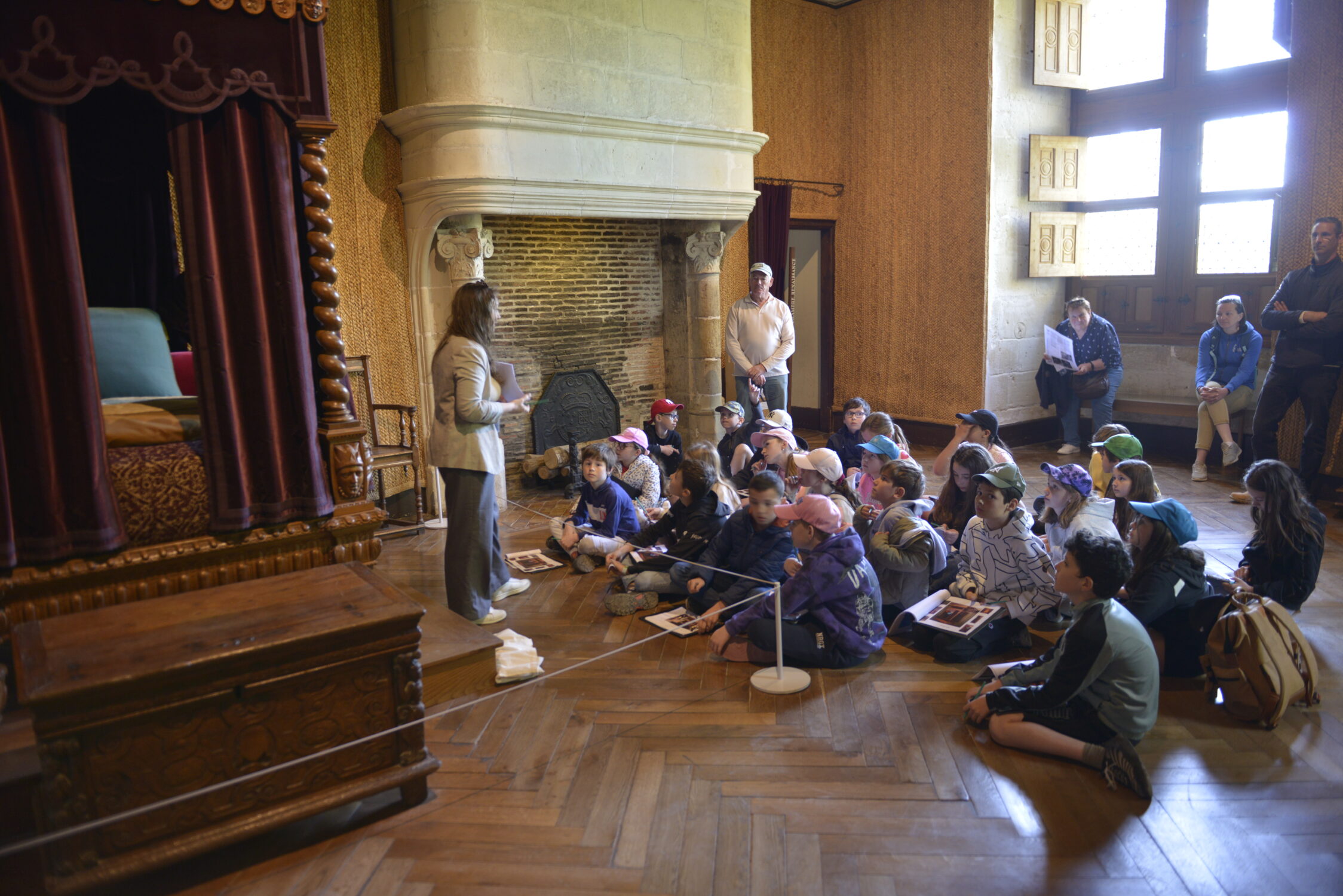 Nous voilà partis pour Azay le Rideau. Une visite du château était programmée. Ce monument est un joyau de la Renaissance française. Il semble flotter sur les eaux de l’Indre qui l’entourent. Construit au XVIe siècle sous le règne de François Ier, il présente une architecture raffinée alliant l’élégance italienne et la tradition française de l’époque. Nous avons pu suivre les explications de notre guide qui nous a transmis ses connaissances à travers la découverte du vocabulaire de l’architecture (tourelle, corniche, encorbellement, pilastre …). Le travail d’observation de la façade arrière nous a même permis de faire des liens avec les cours de géométrie sur la symétrie. Avec la visite de l’intérieur nous avons découvert une partie des appartements de l’ancien propriétaire, Gilles Berthelot, un riche financier et maire de Tours, au début du XVIe siècle. Aujourd’hui, il appartient à tous les Français et est géré par le Centre des monuments nationaux.