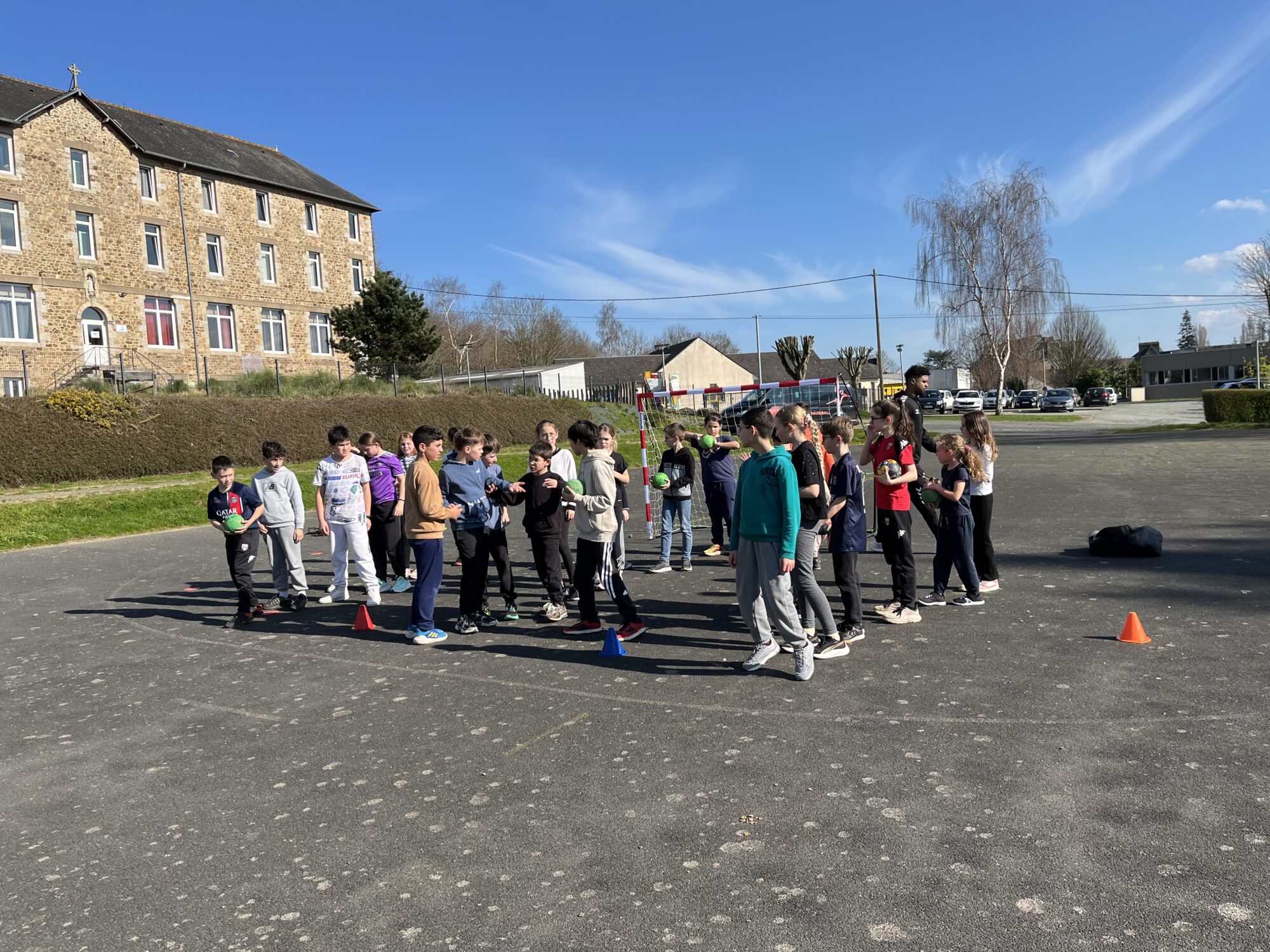Les élèves ont la chance de participer à un cycle Hand de 6 séances. Exercices, règles et matchs au programme !