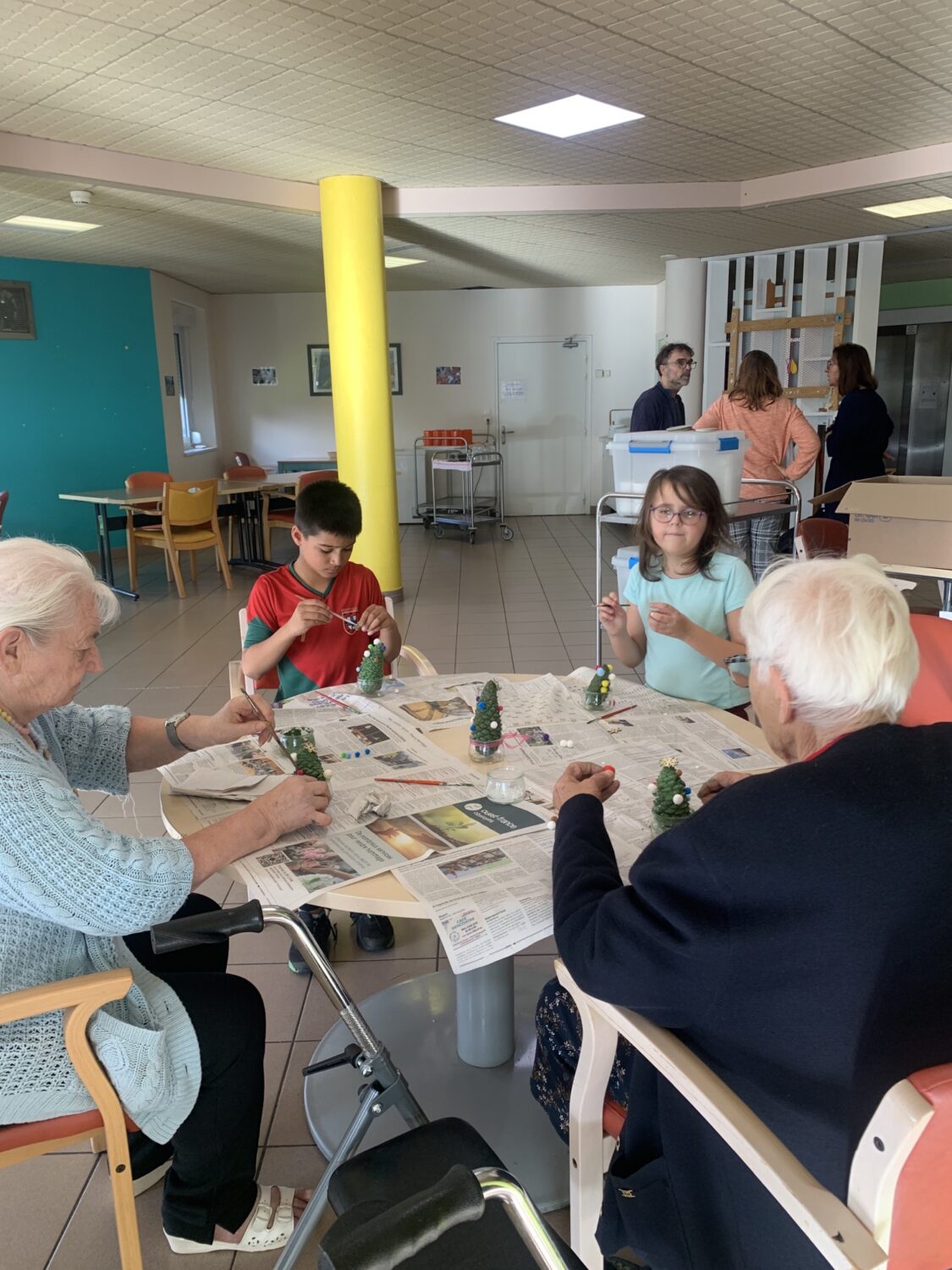 Jeudi 6 novembre, nous étions conviés à l’EHPAD Les Hortensias pour un après-midi “Décoration de Noël”. Les résidents et les enfants ont en effet réalisé un joli petit sapin de Noël à partir d’une pomme de pin à déposer sur la table de Noël ! Avant de nous quitter, nous avons partagé un bon petit goûter. Nous reviendrons en Janvier pour la bonne année !