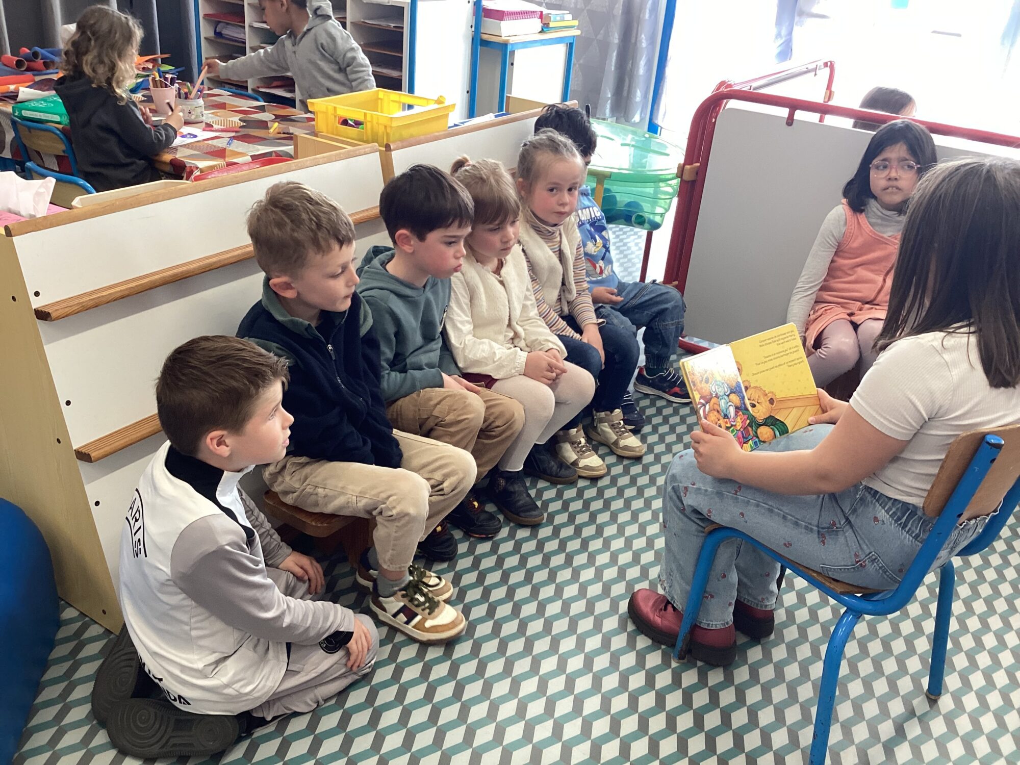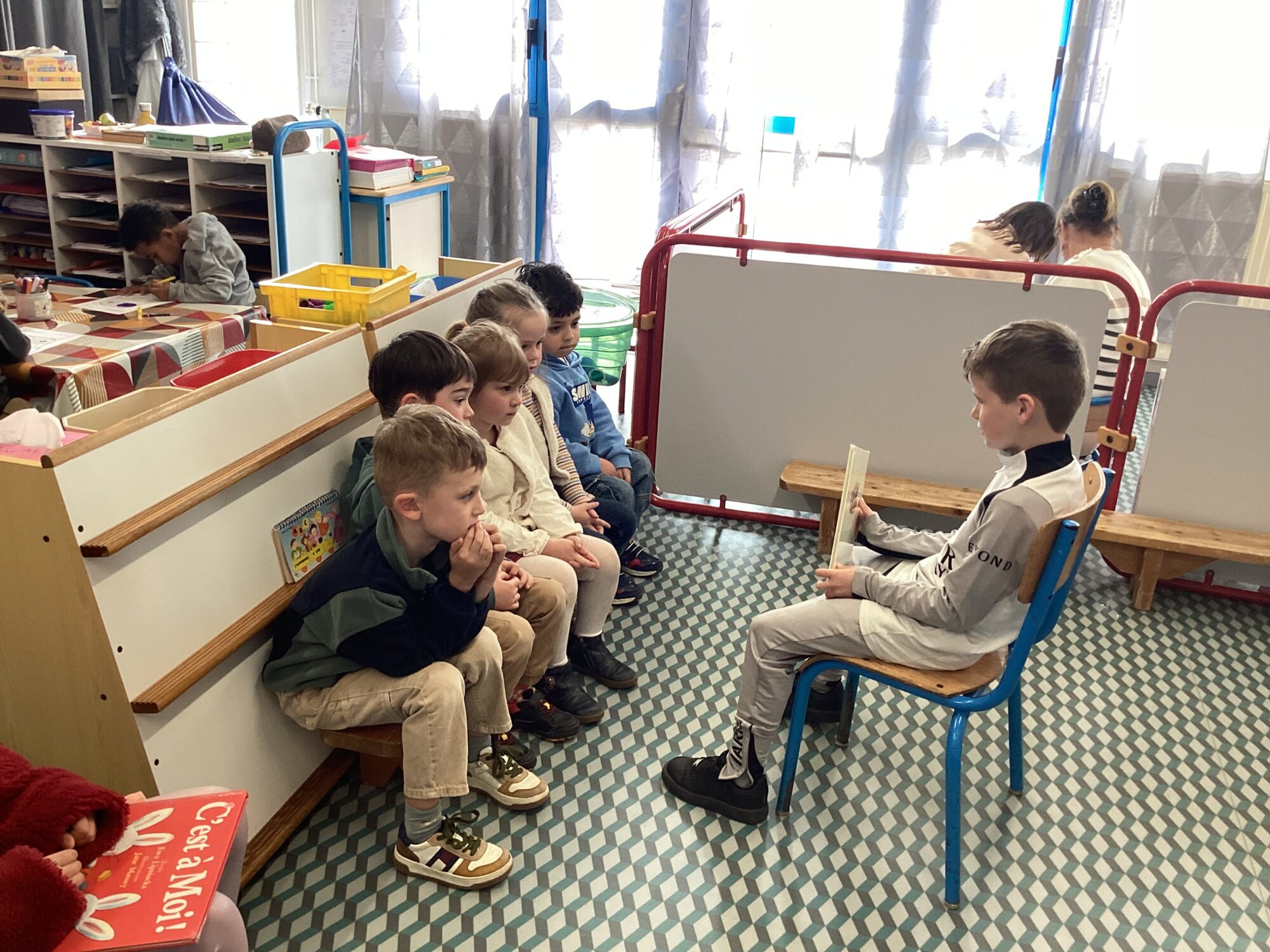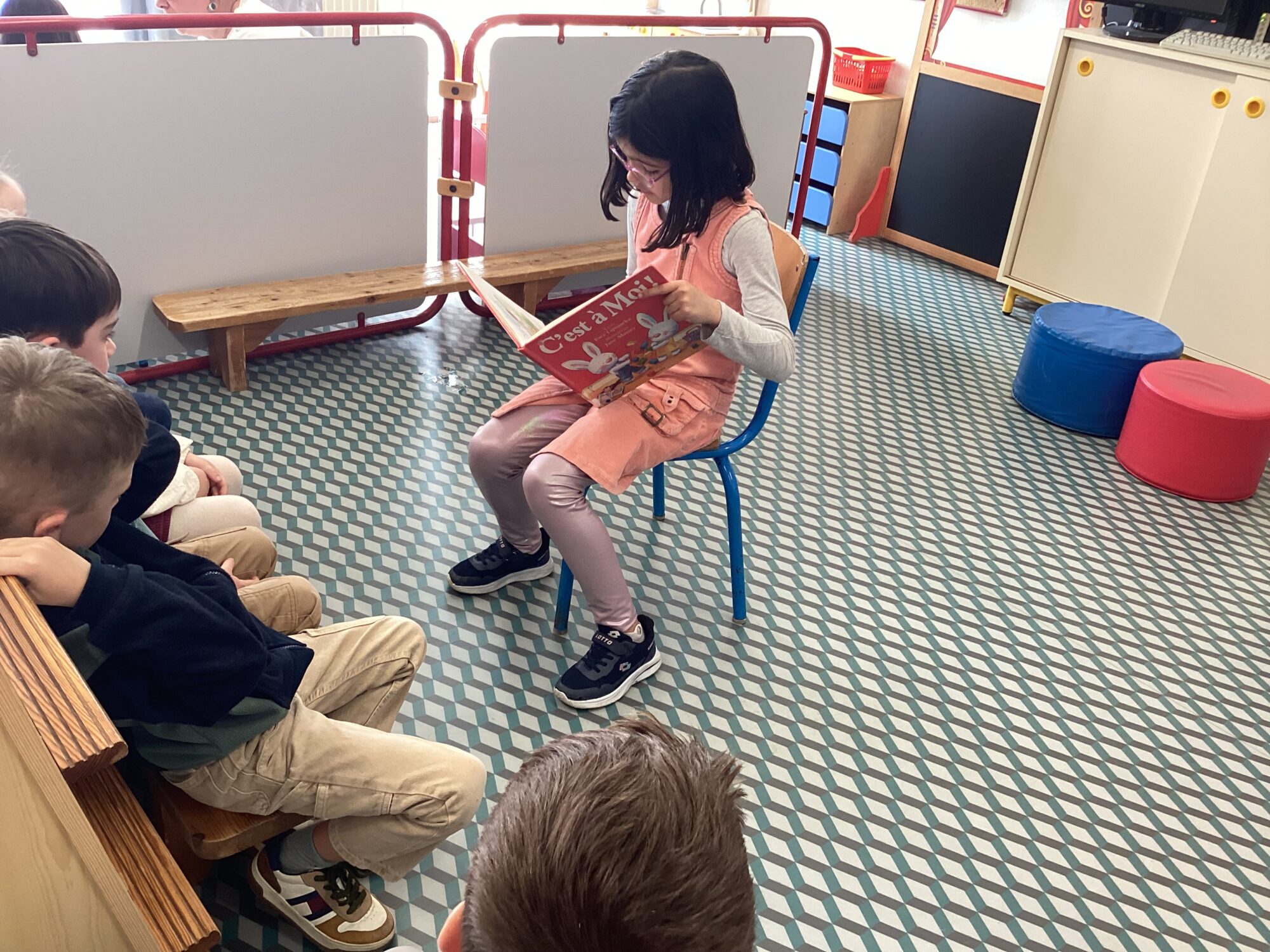 Cette semaine, Théo , Ines et Romane sont venus lire des histoires . Merci !!