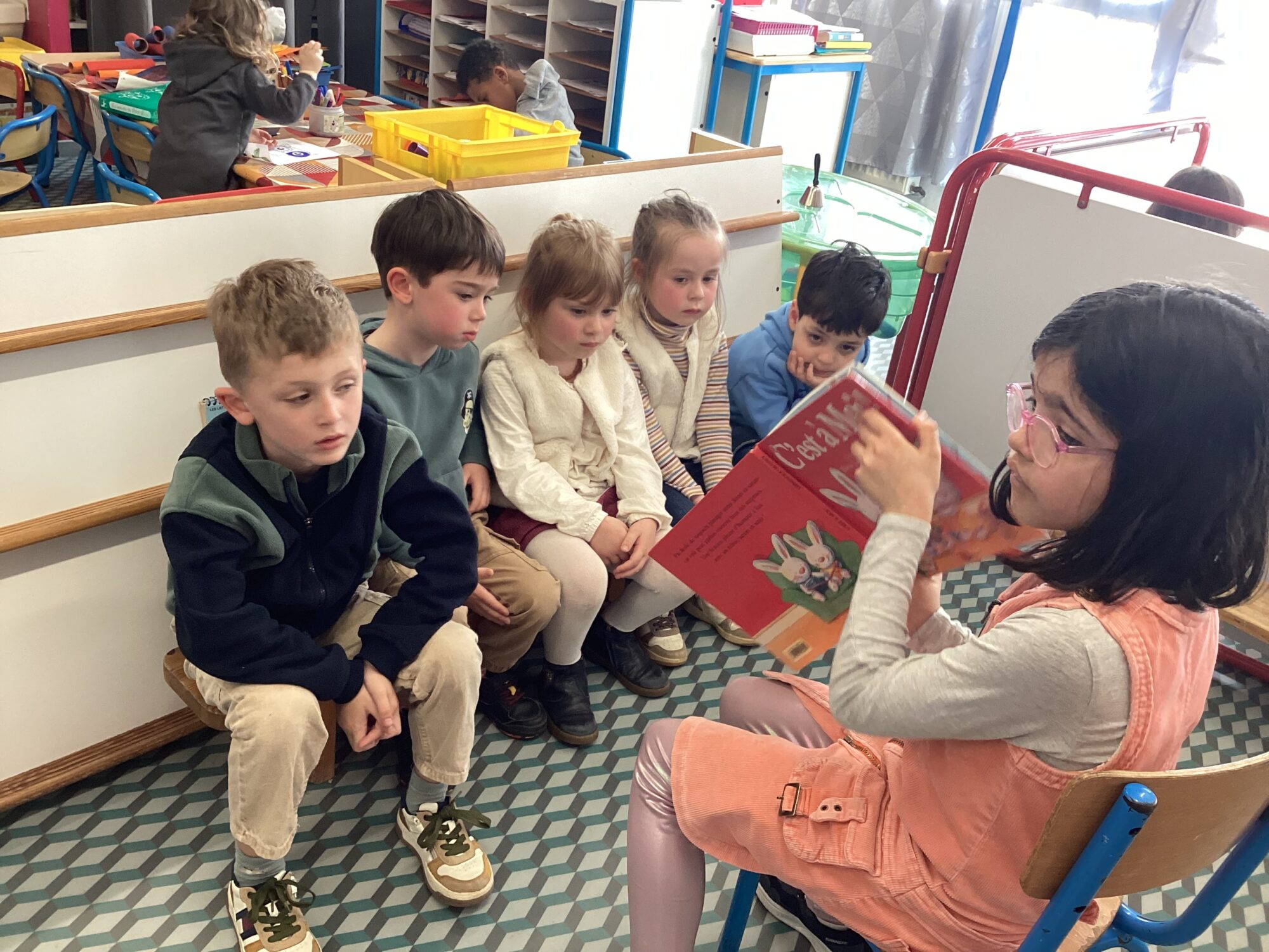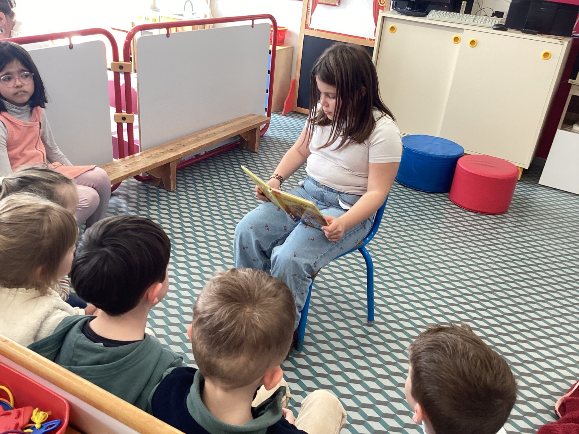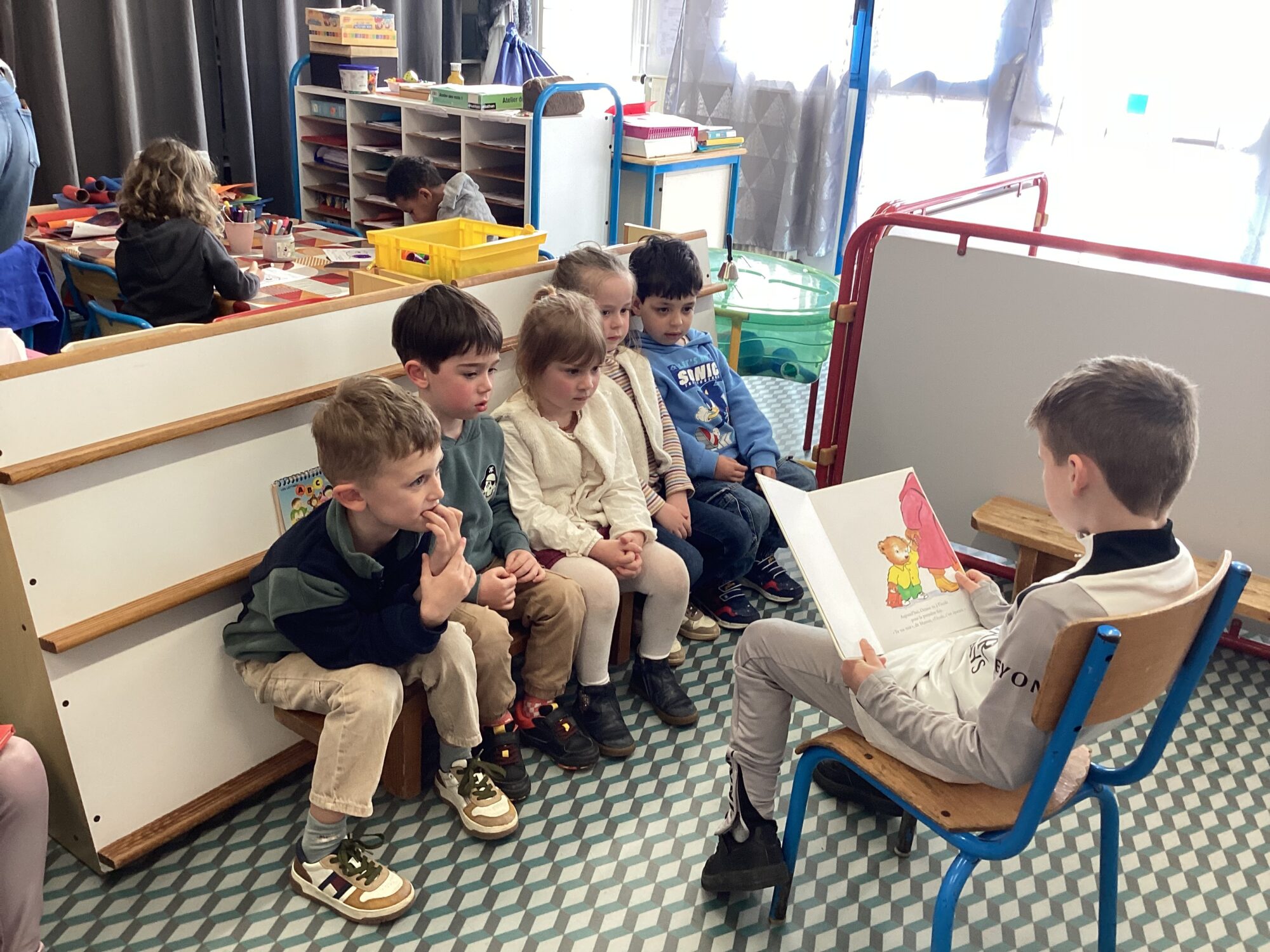 Cette semaine, Théo , Ines et Romane sont venus lire des histoires . Merci !!