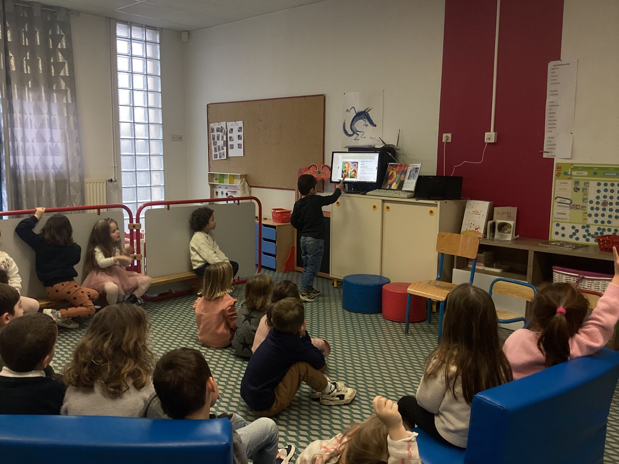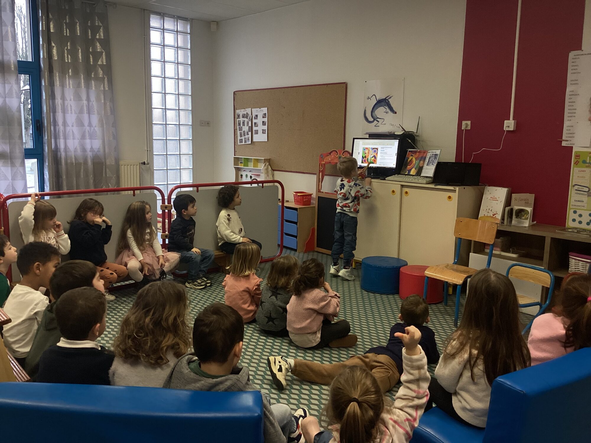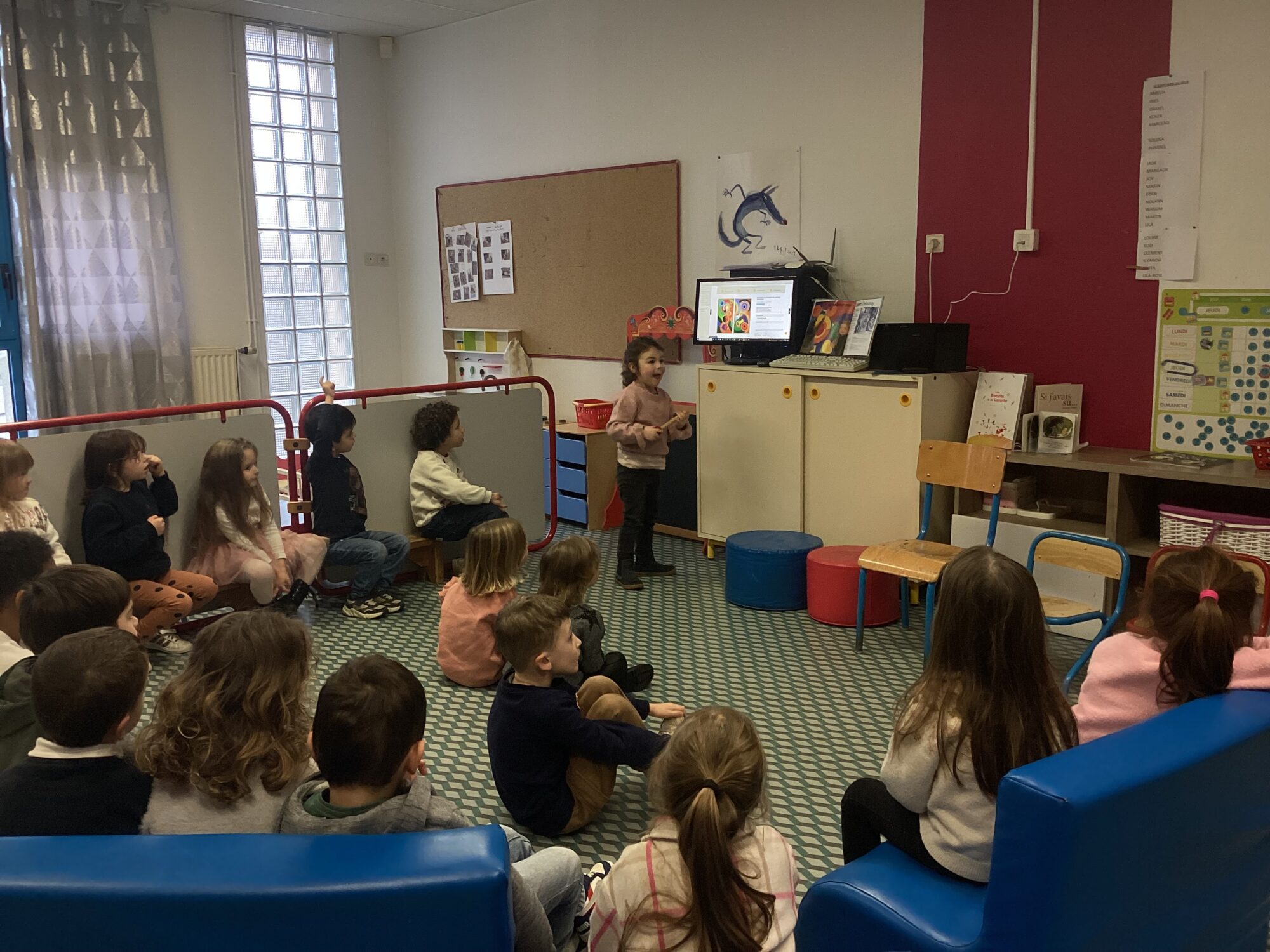Dans un second temps nous avons écouté à l’aide d’une tablette les différents chants ou cris d’oiseaux. Enfin nous avons regardé une vidéo d’un oiseau qui construisait son nid dans un nichoir jusqu’à la naissance des oisillons et la façon dont ils étaient nourris. C’était fort intéressant !