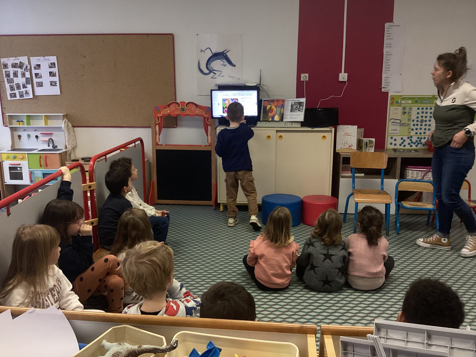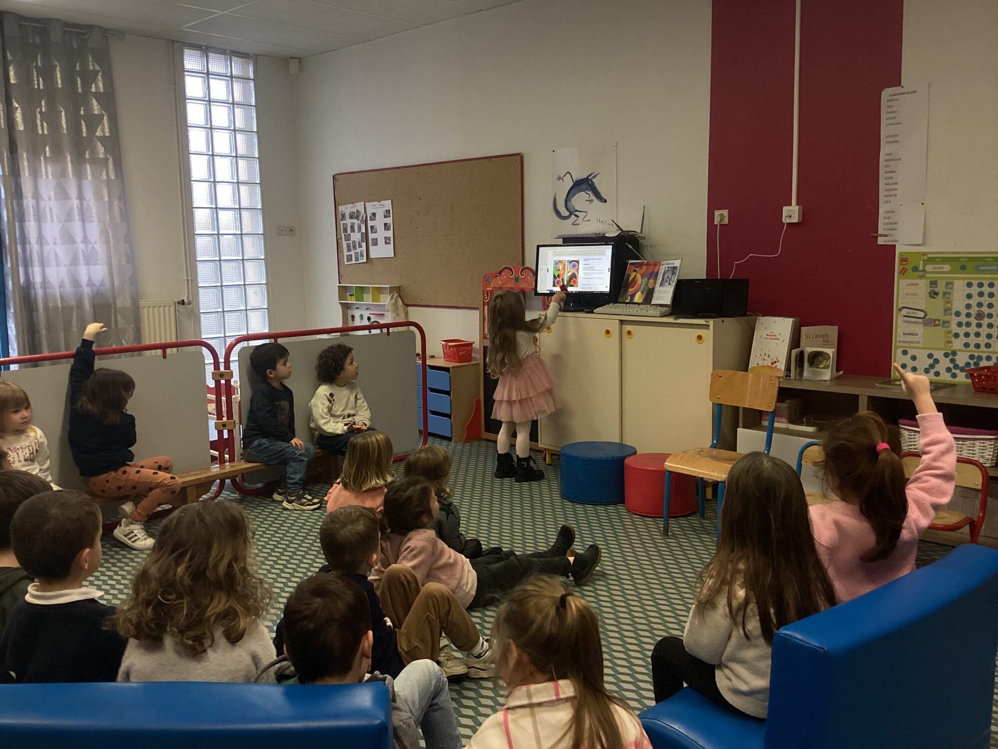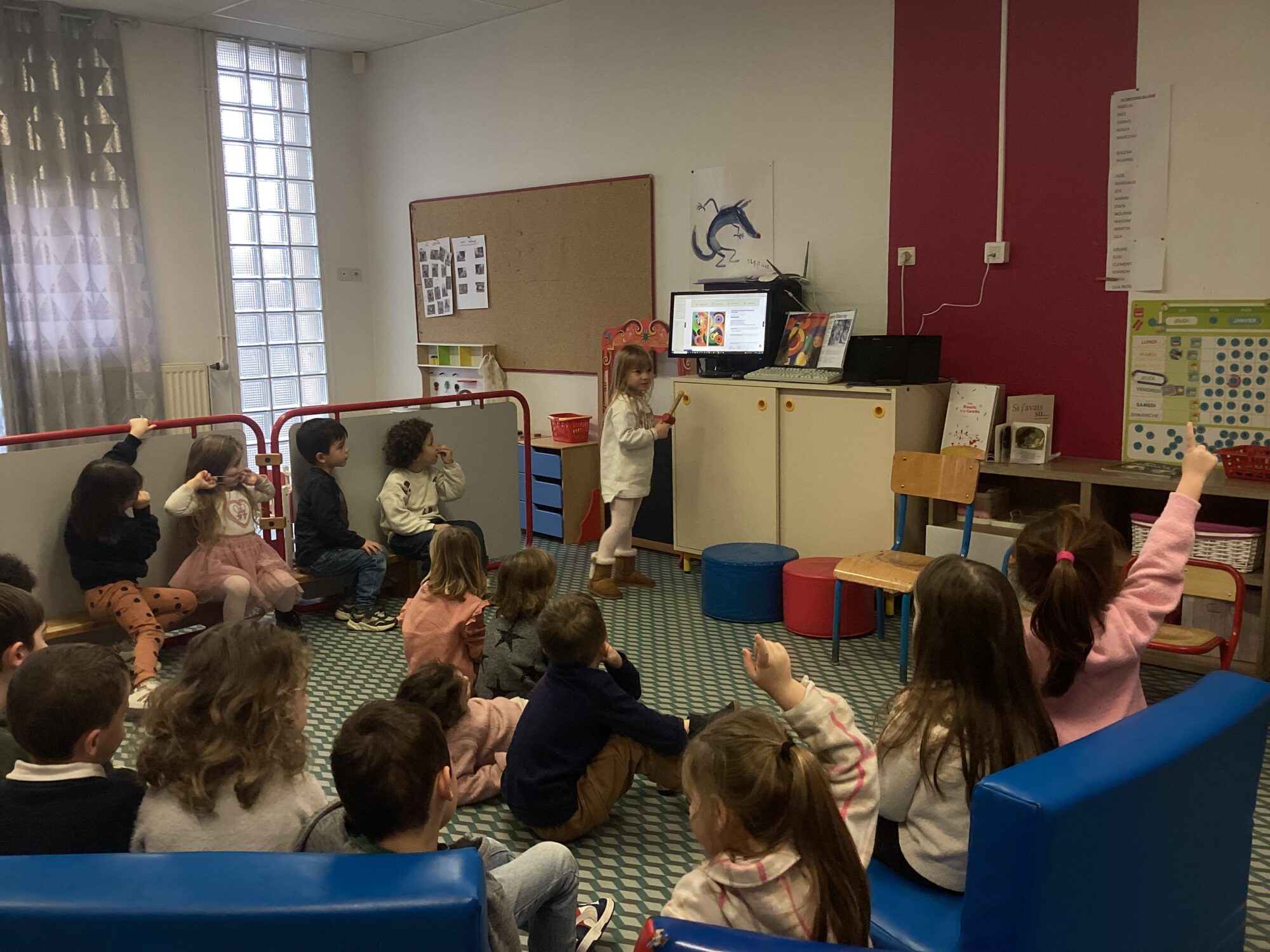 Dans un second temps nous avons écouté à l’aide d’une tablette les différents chants ou cris d’oiseaux. Enfin nous avons regardé une vidéo d’un oiseau qui construisait son nid dans un nichoir jusqu’à la naissance des oisillons et la façon dont ils étaient nourris. C’était fort intéressant !