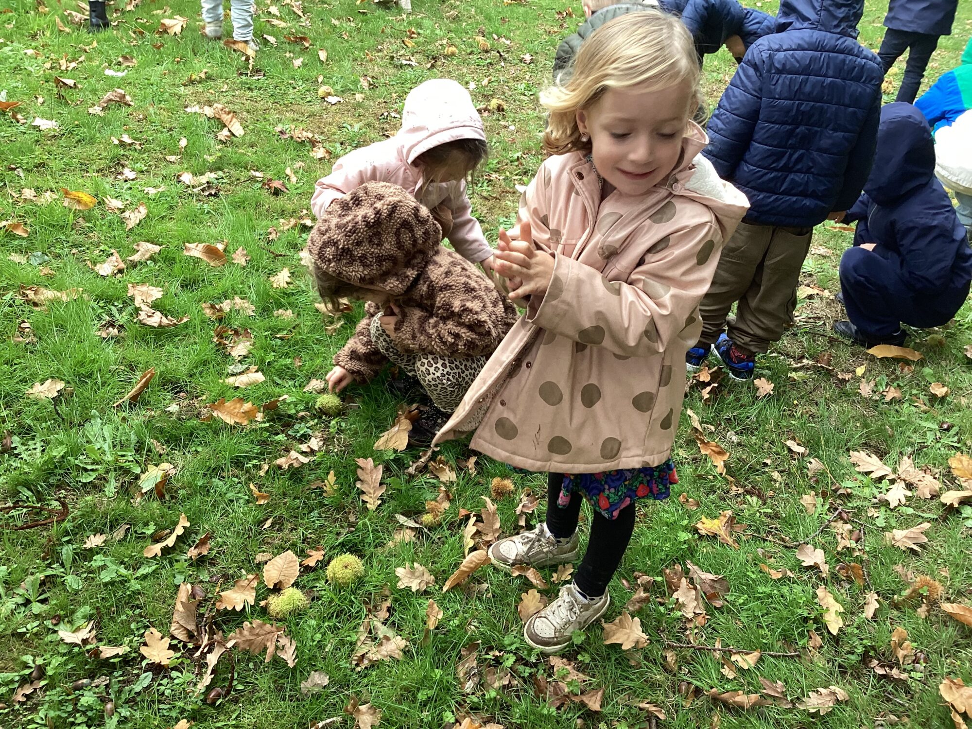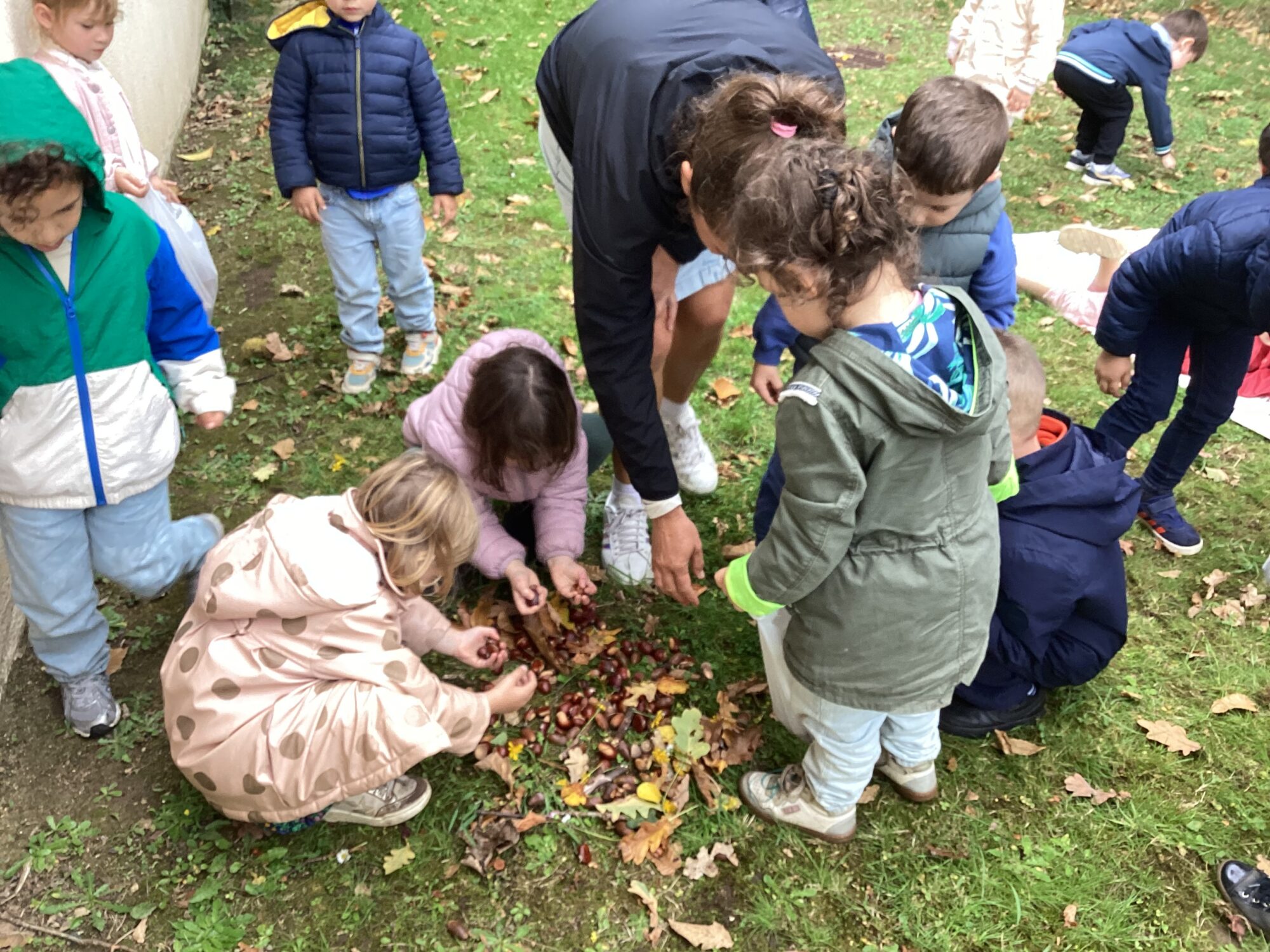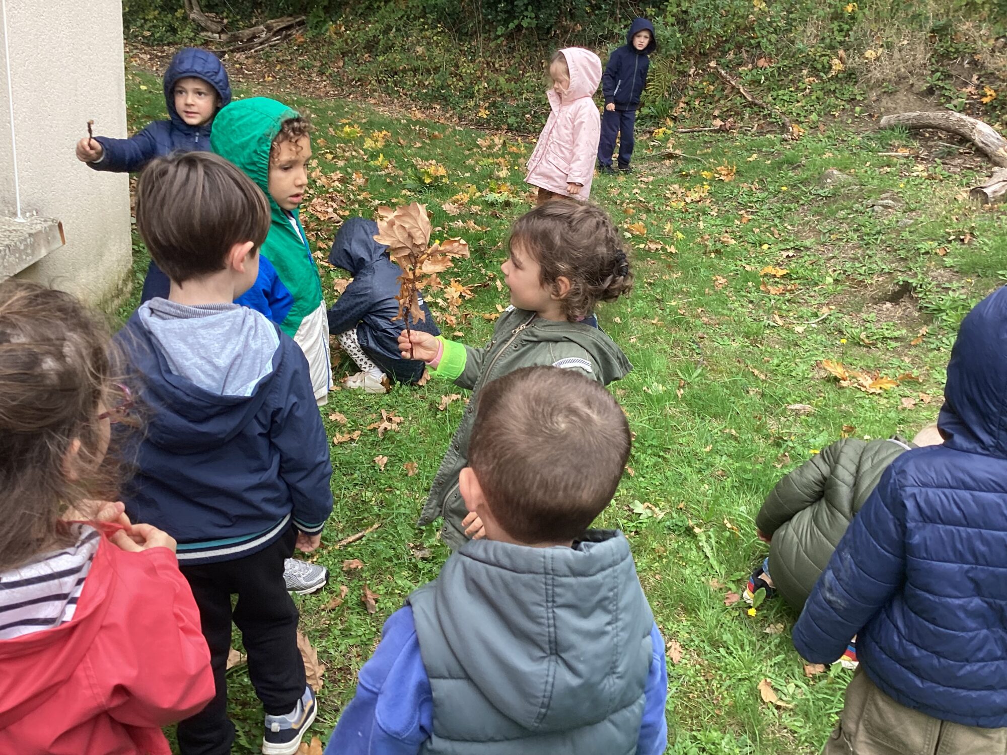 Pour cette activité, nous avons récolté différents éléments présents dans l environnement : feuille, bâtons, glands’, châtaignes, fleurs, bogues, ….après la cueillette nous avons catégorisé les éléments. Puis nous avons associé les mots de vocabulaire correspondant.