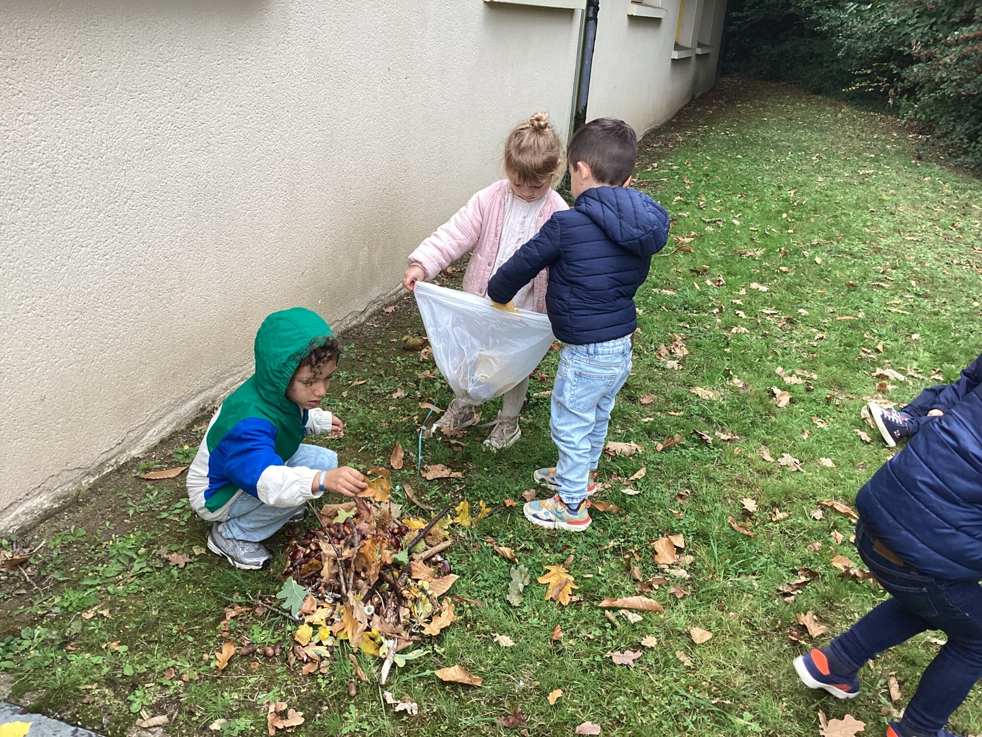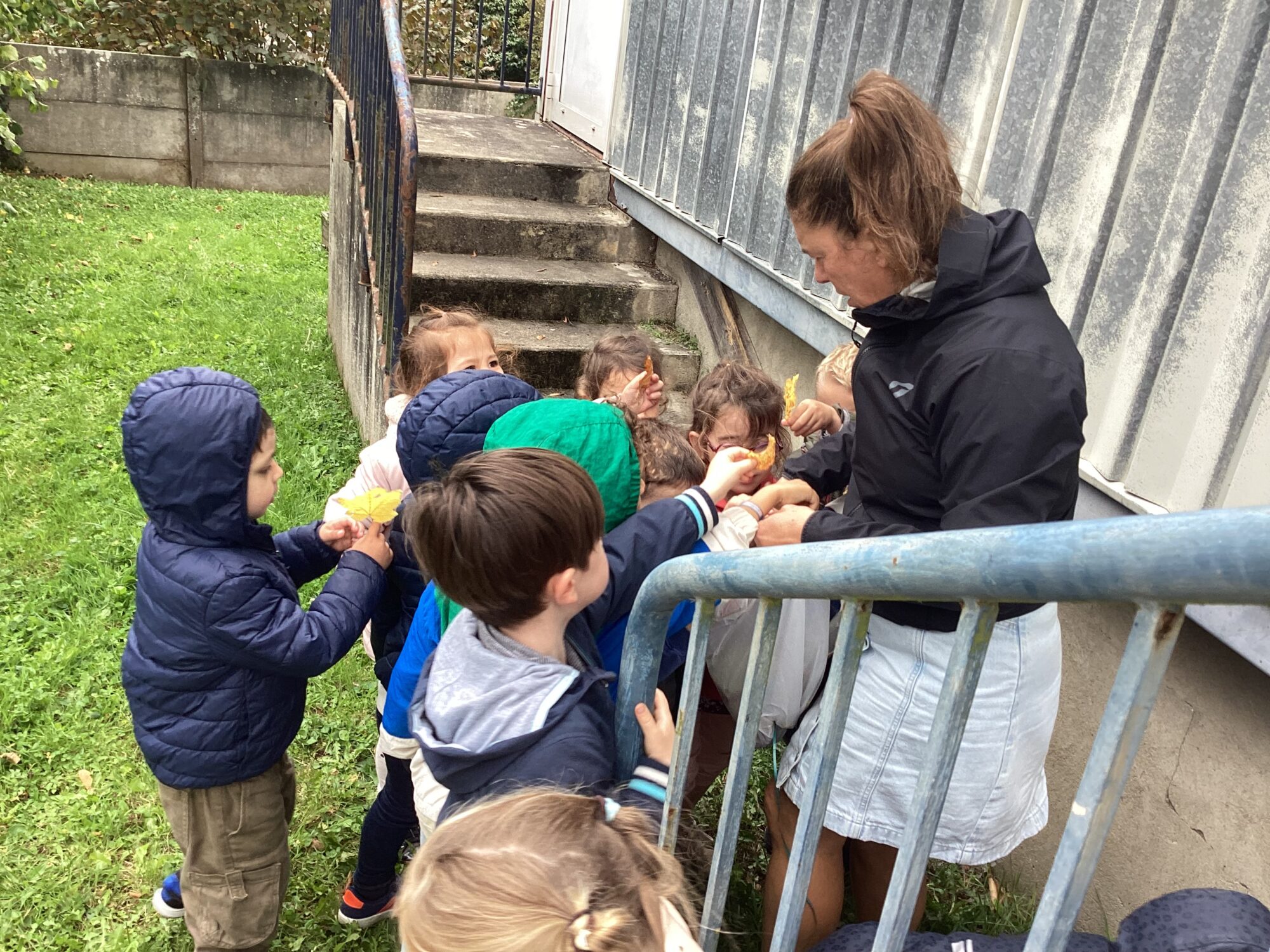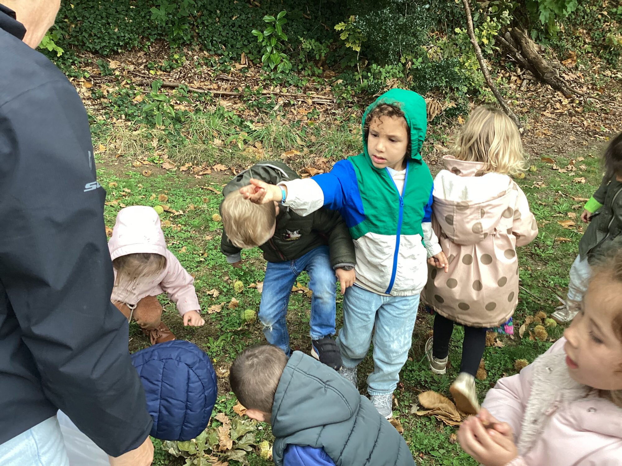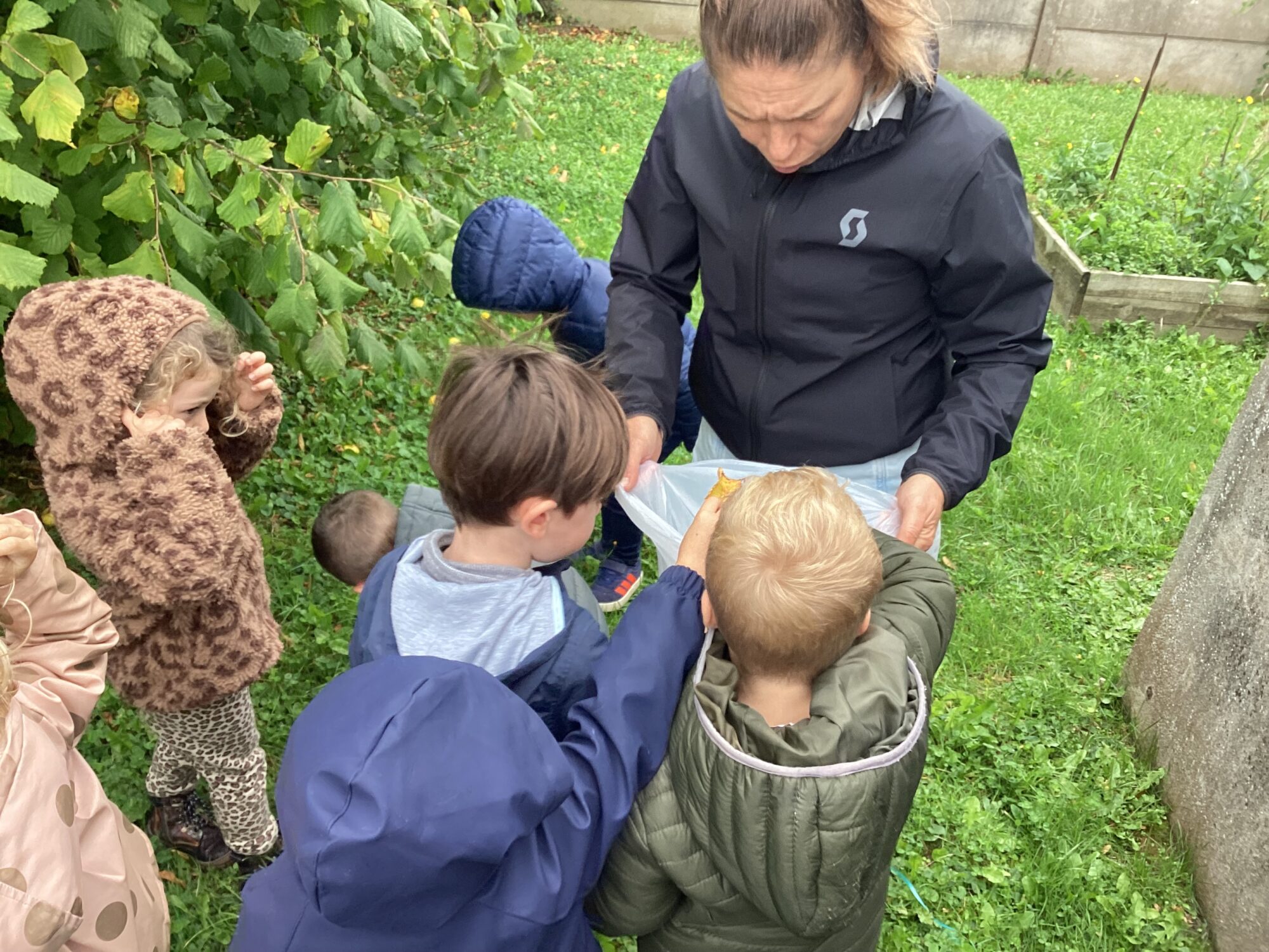 Pour cette activité, nous avons récolté différents éléments présents dans l environnement : feuille, bâtons, glands’, châtaignes, fleurs, bogues, ….après la cueillette nous avons catégorisé les éléments. Puis nous avons associé les mots de vocabulaire correspondant.