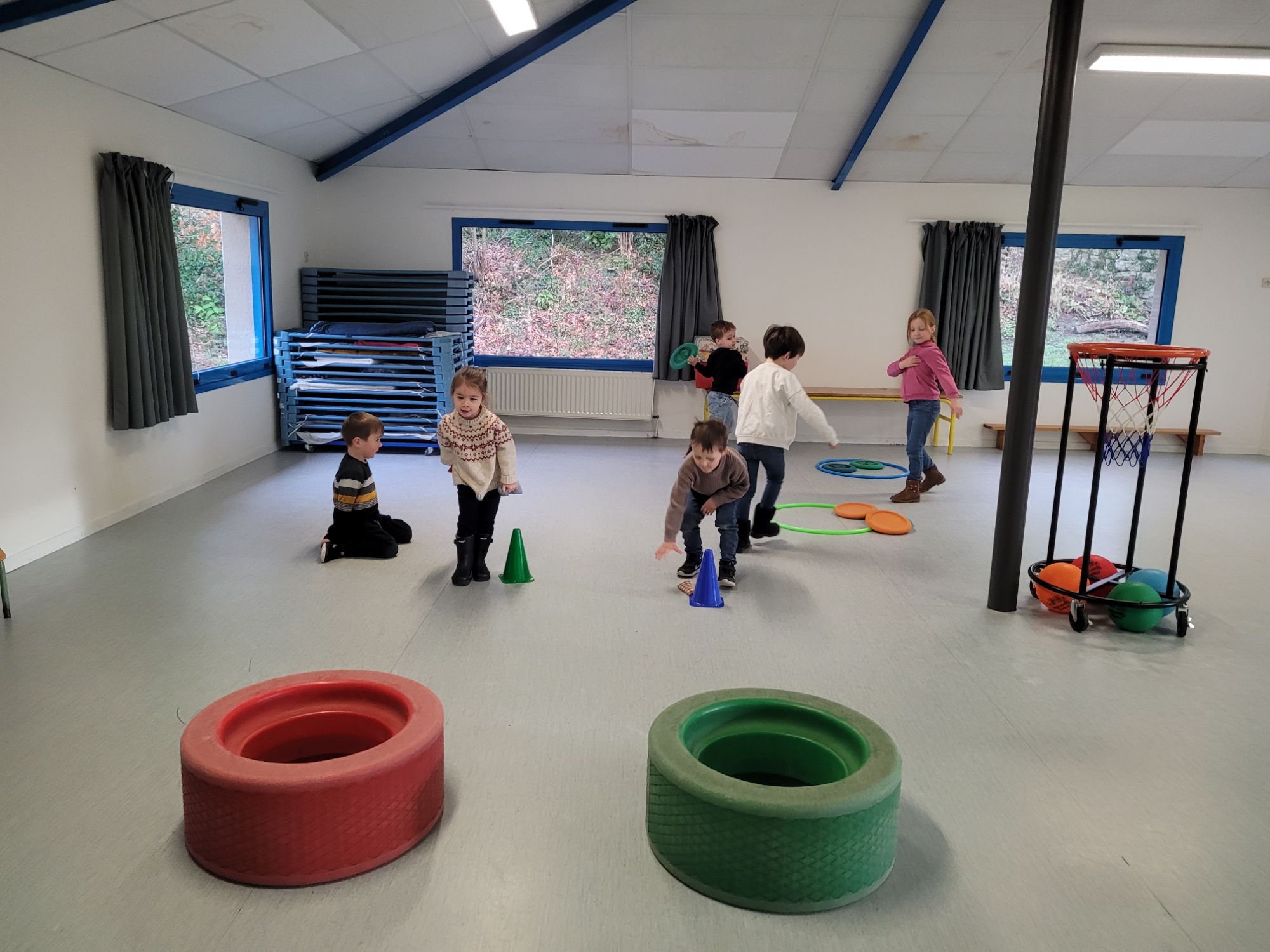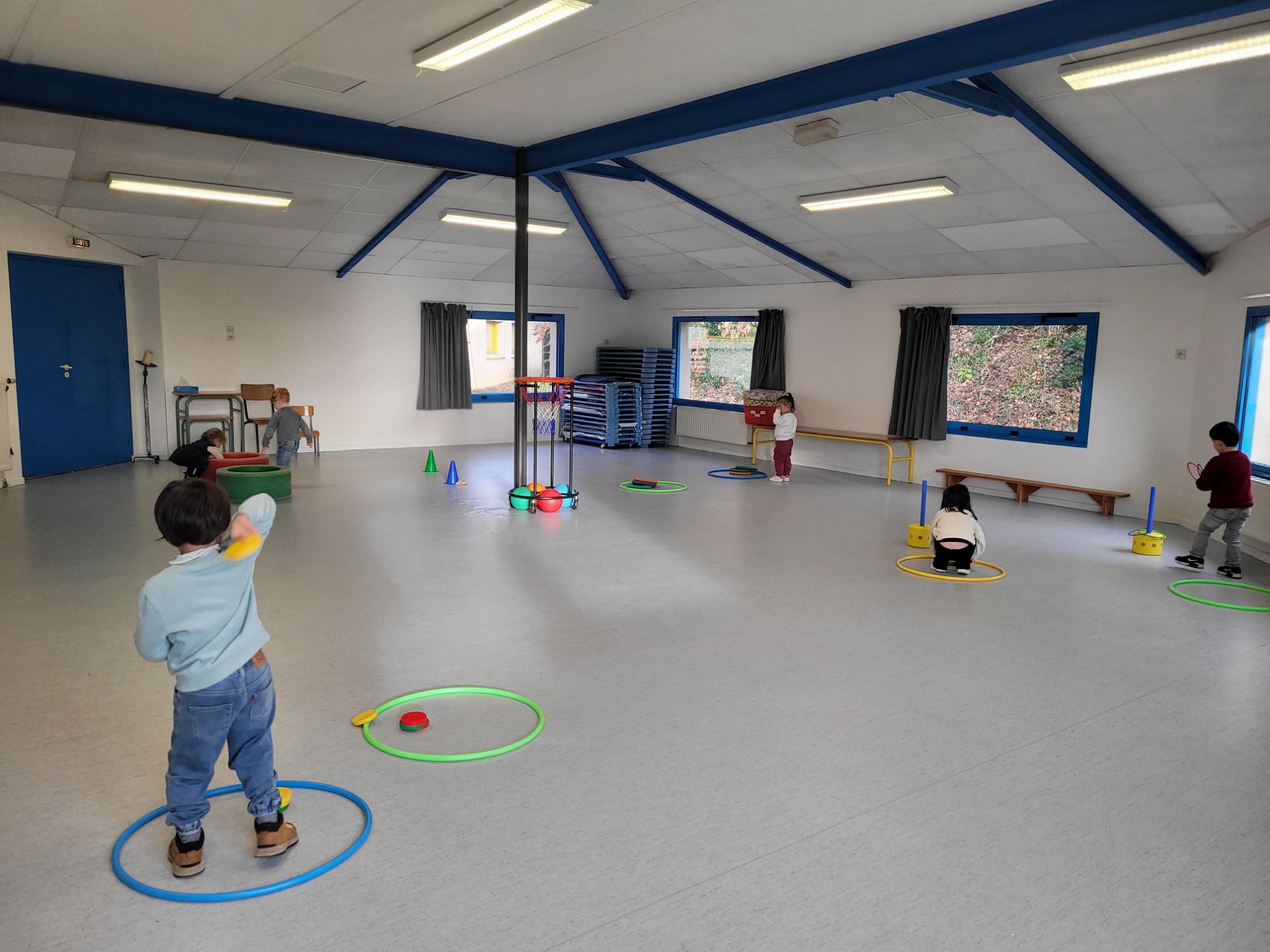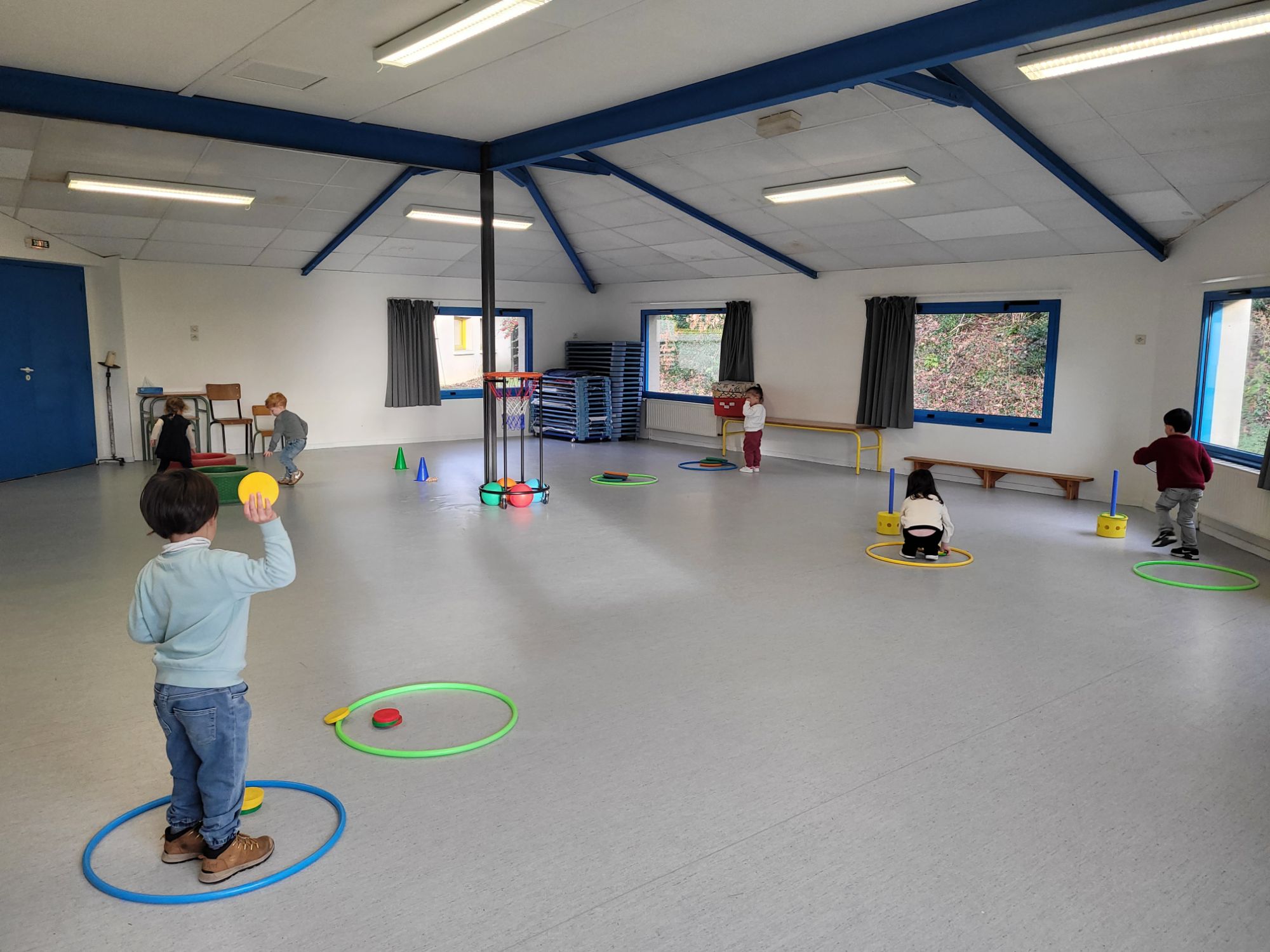 Tous les jours les enfants font du sport, soit dans la salle “bleue”, soit sur la structure.