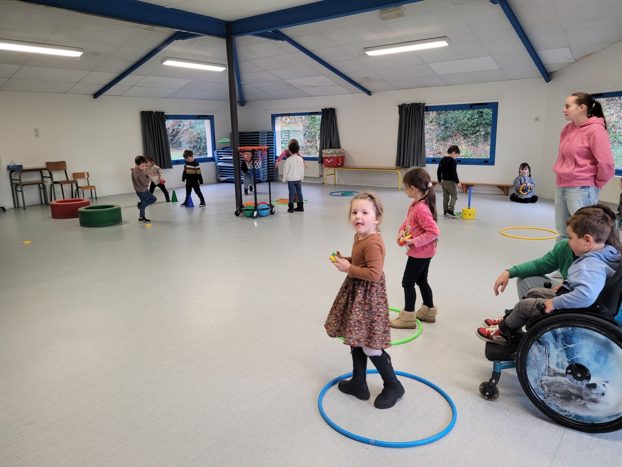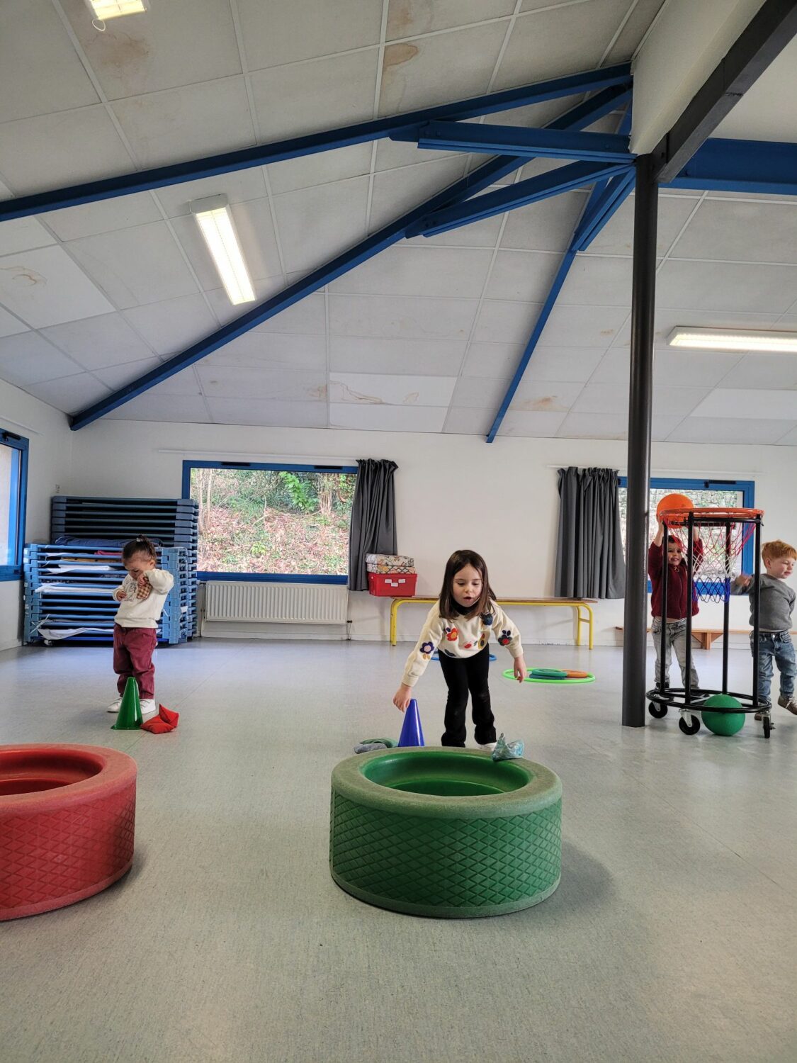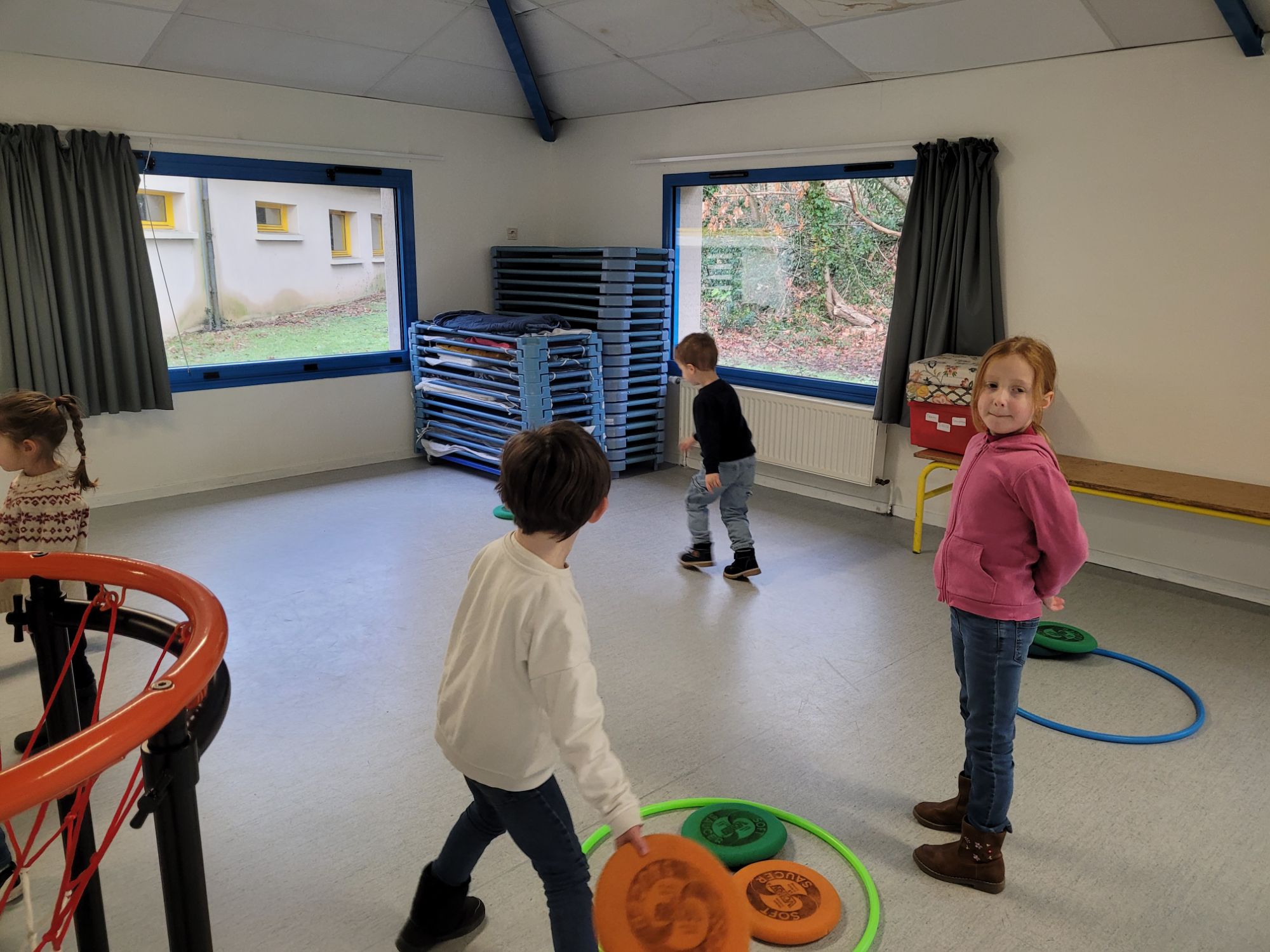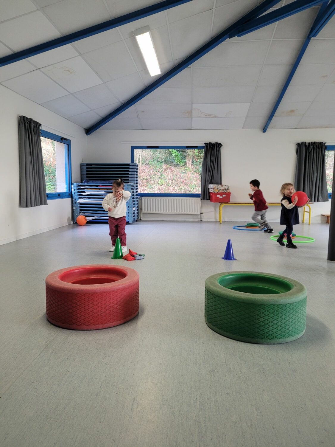 Tous les jours les enfants font du sport, soit dans la salle “bleue”, soit sur la structure.