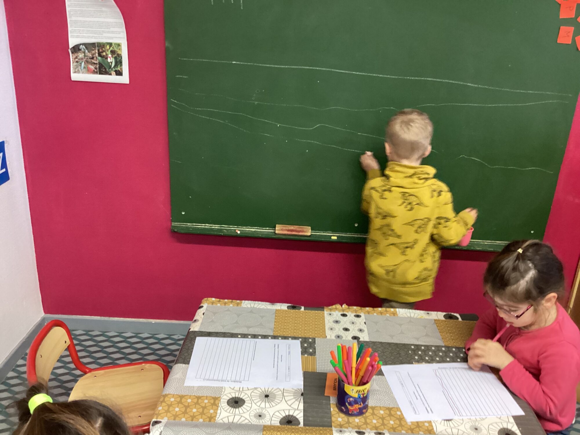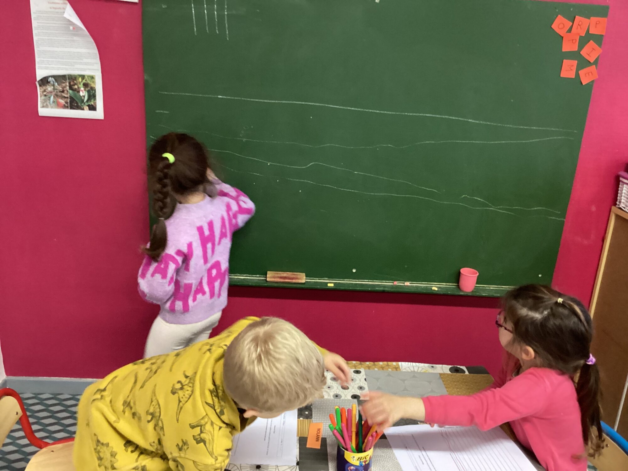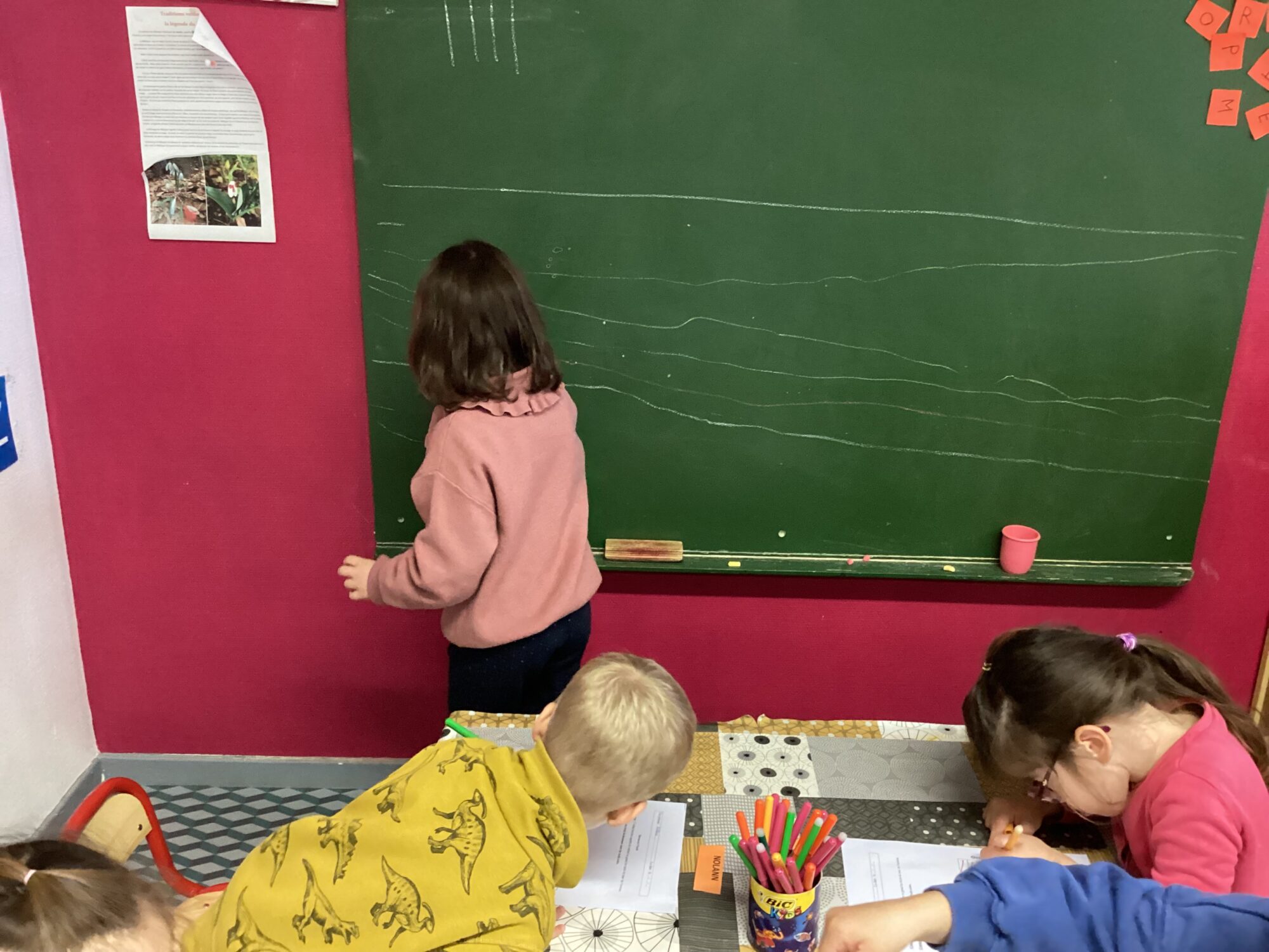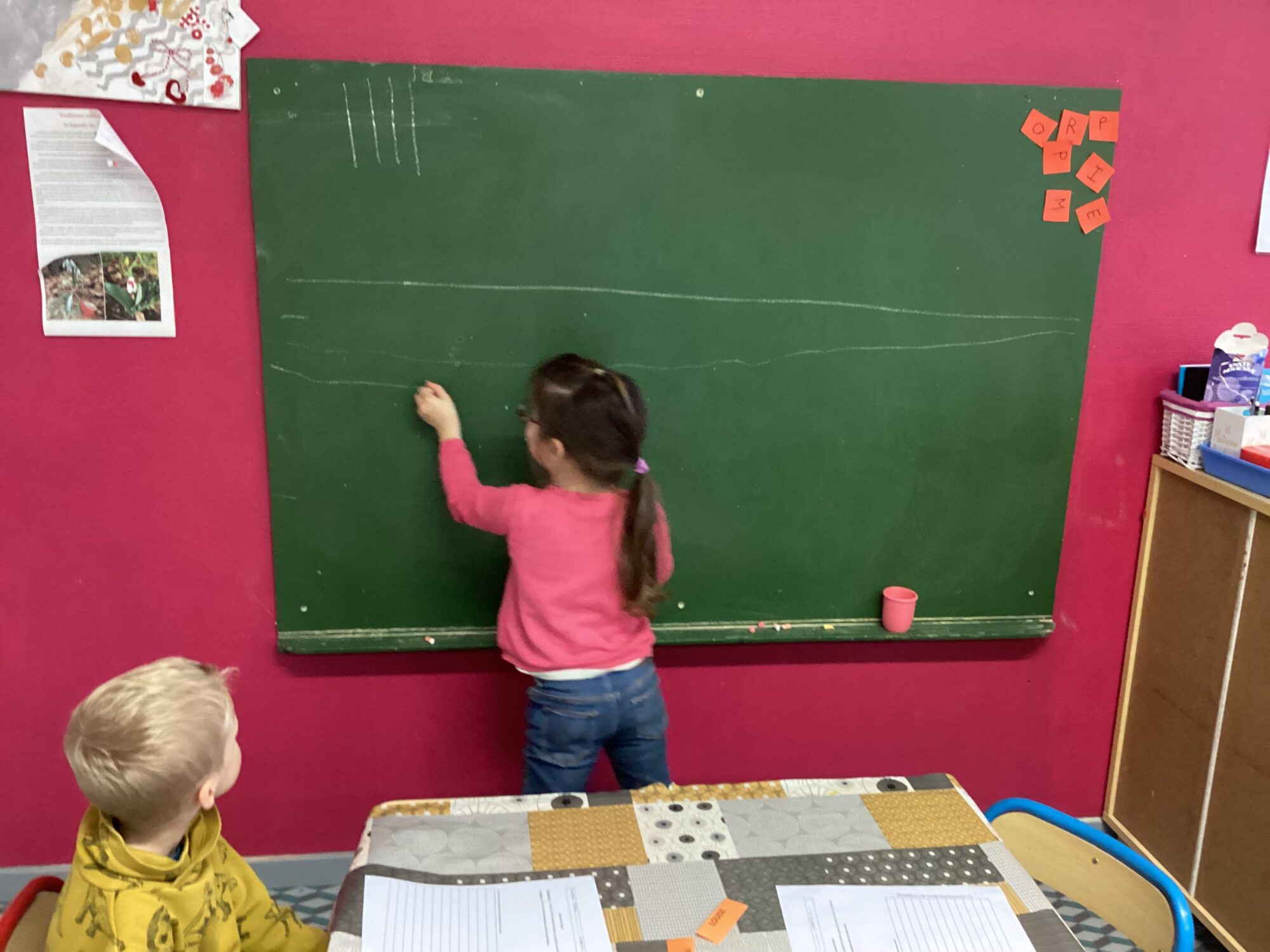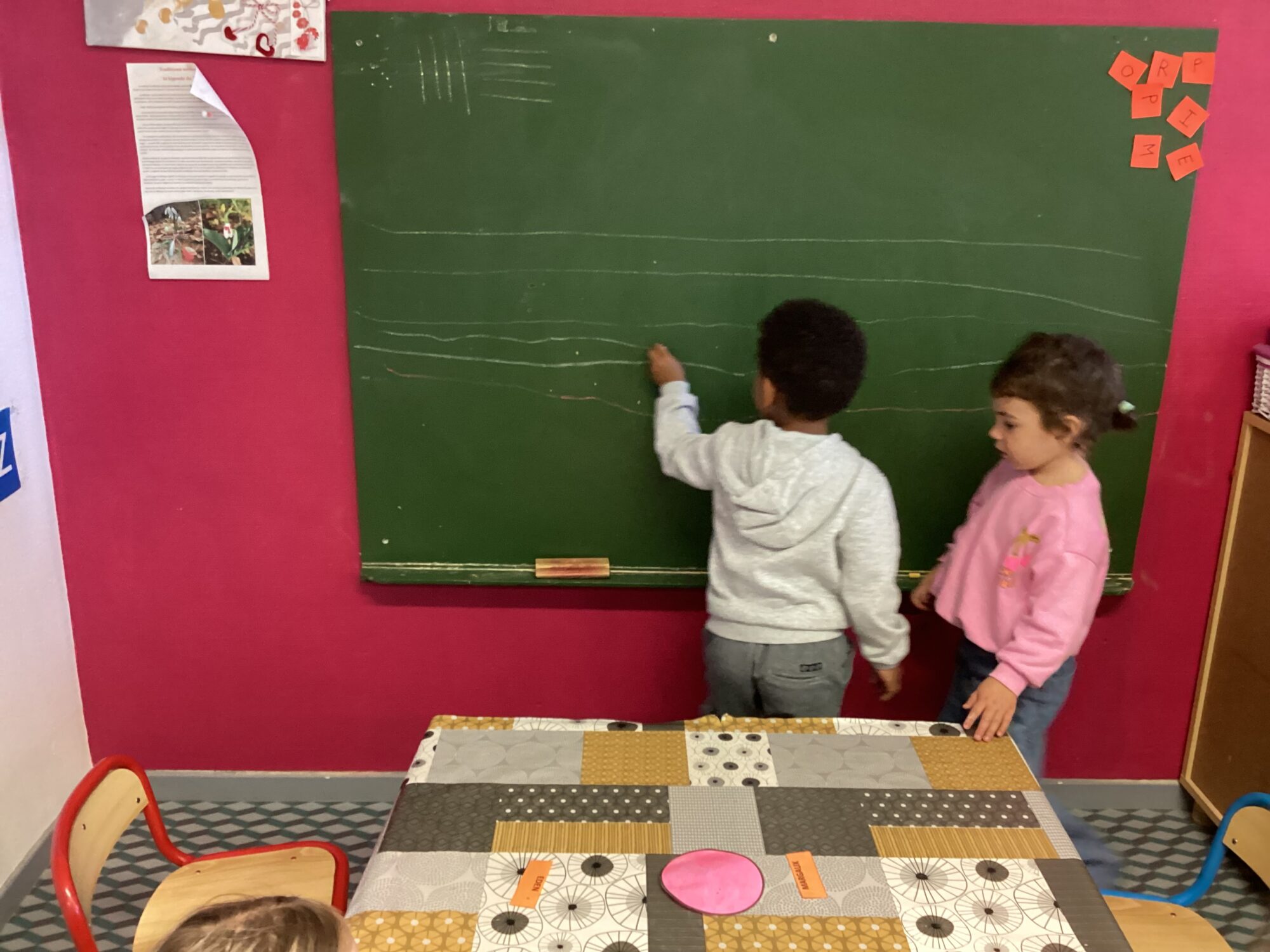 Les élèves s entraînent à tracer «  en grand » des lignes horizontales.