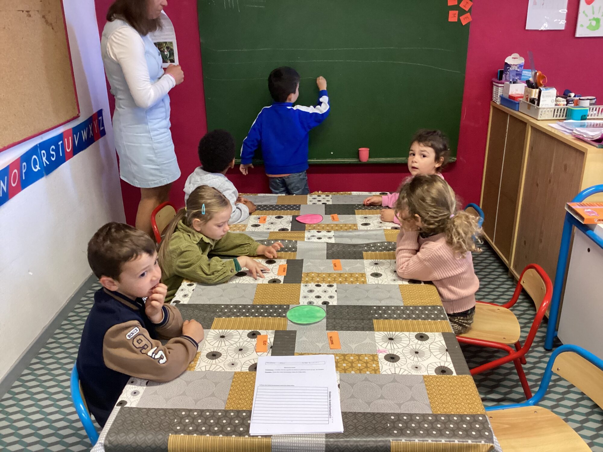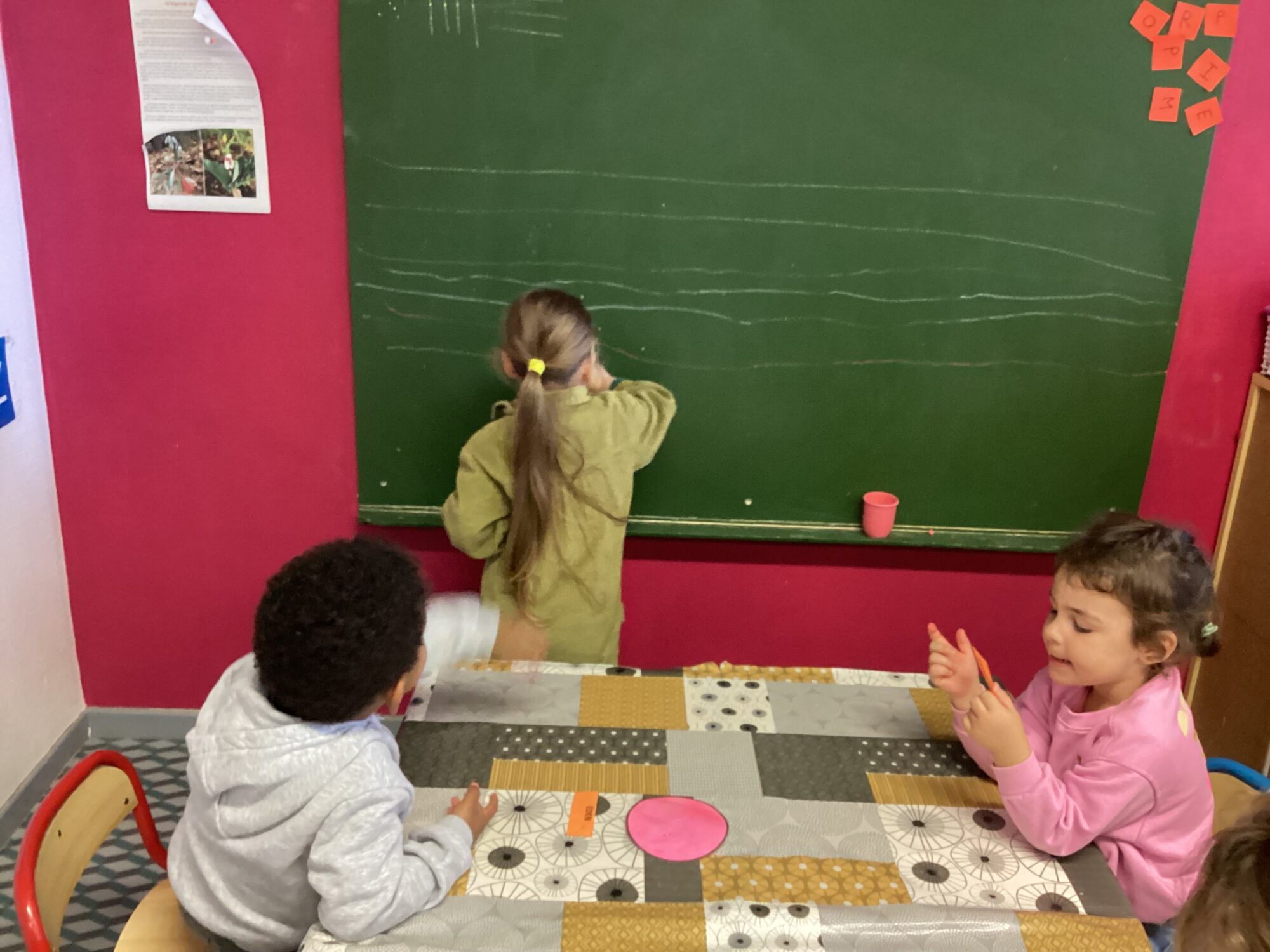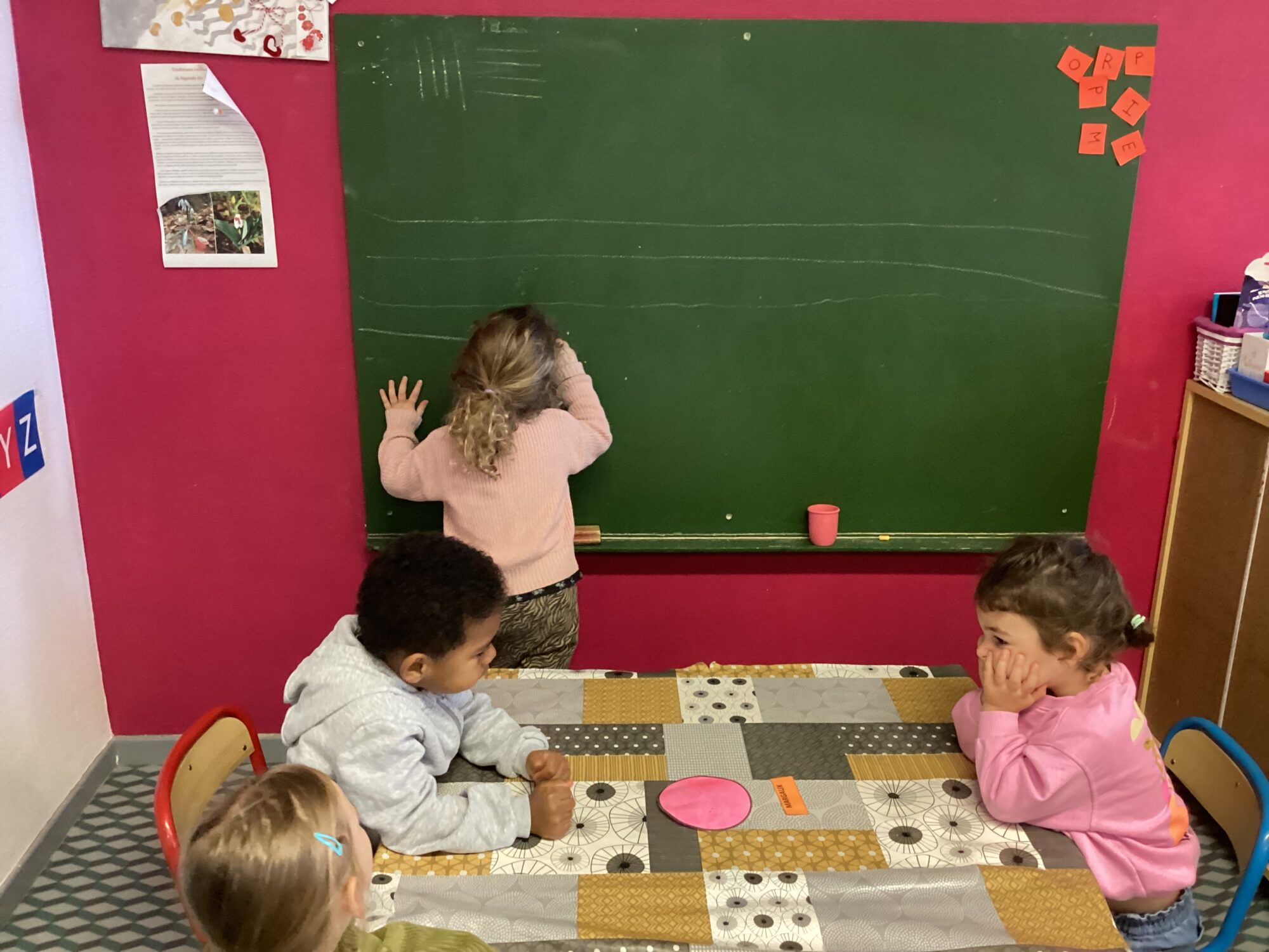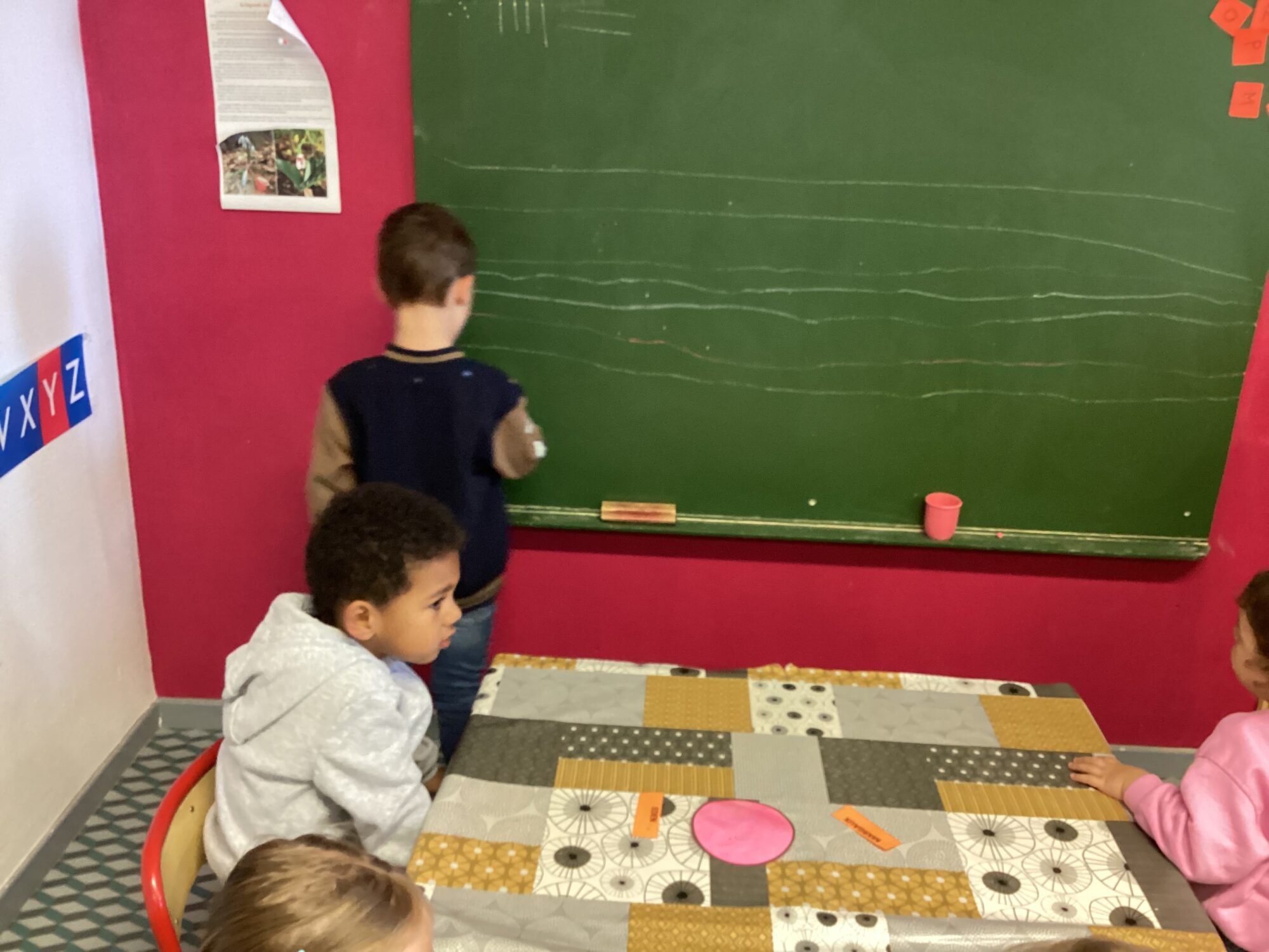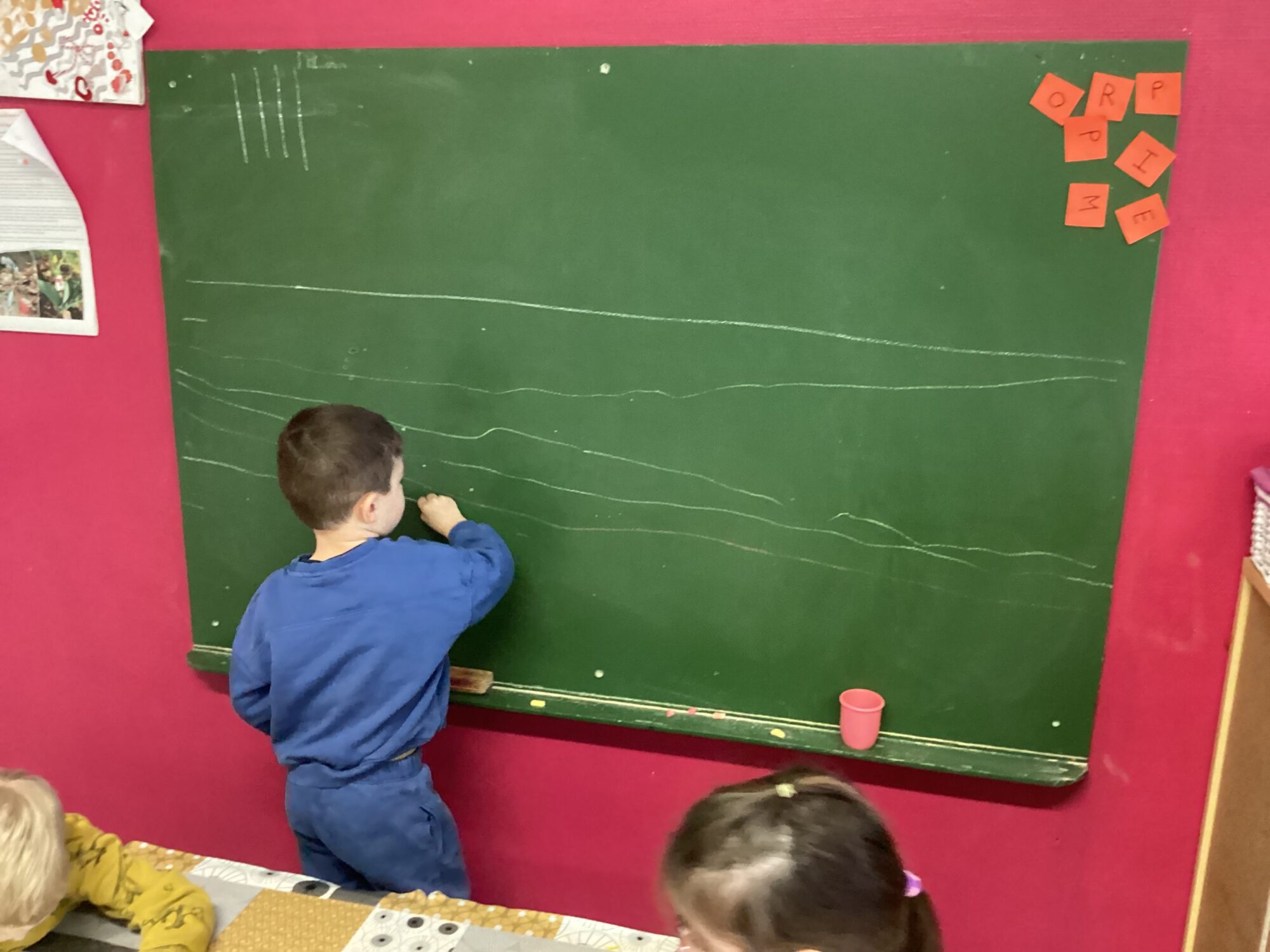 Les élèves s entraînent à tracer «  en grand » des lignes horizontales.