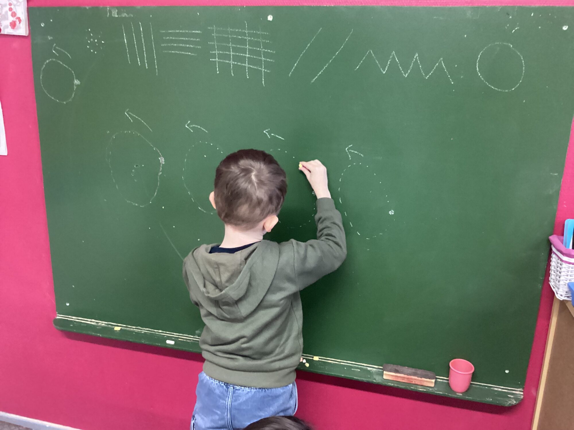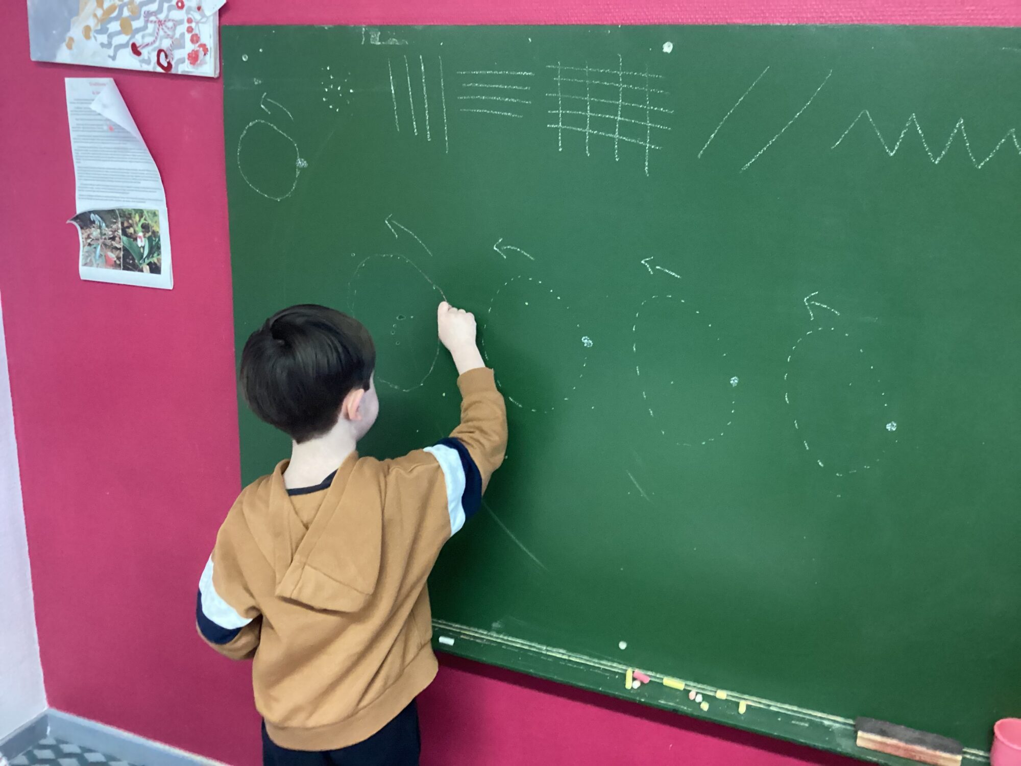 L’avant dernier jour d’école nous sommes allés avec les grands, à la chapelle Saint Léonard, près de l’école pour pique. Nous avions auparavant été cueillir une salade de notre potager ainsi qu’un concombre qui avait bien poussé. Nous en avons fait une salade que nous avons partagée.