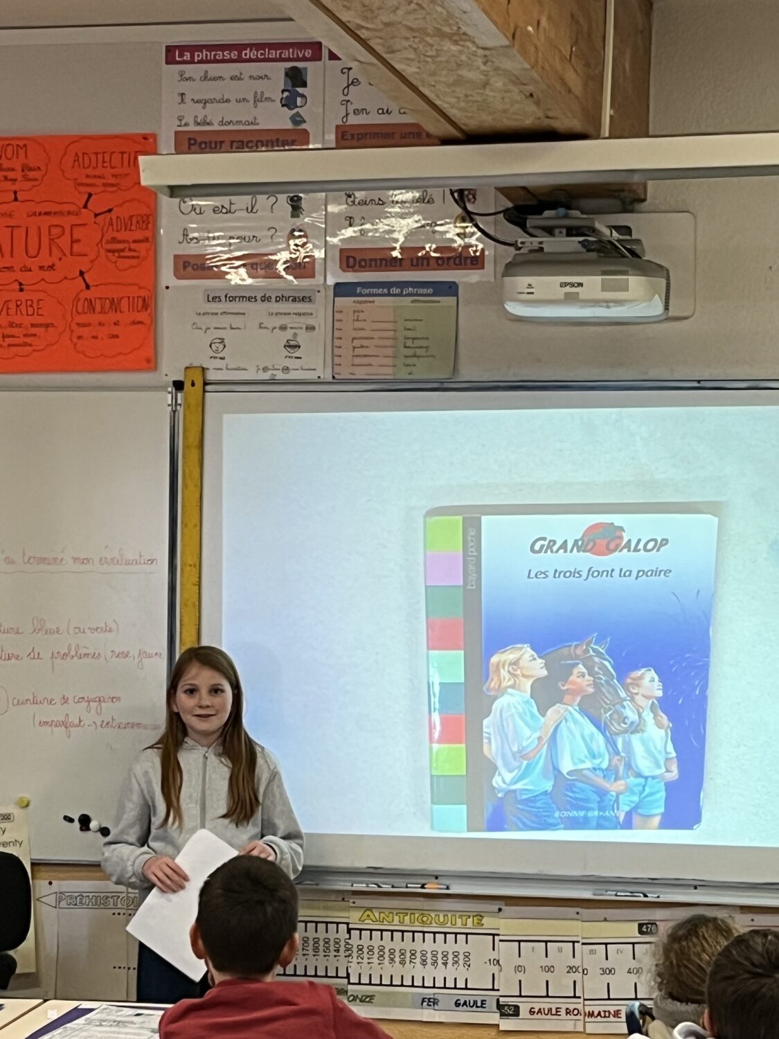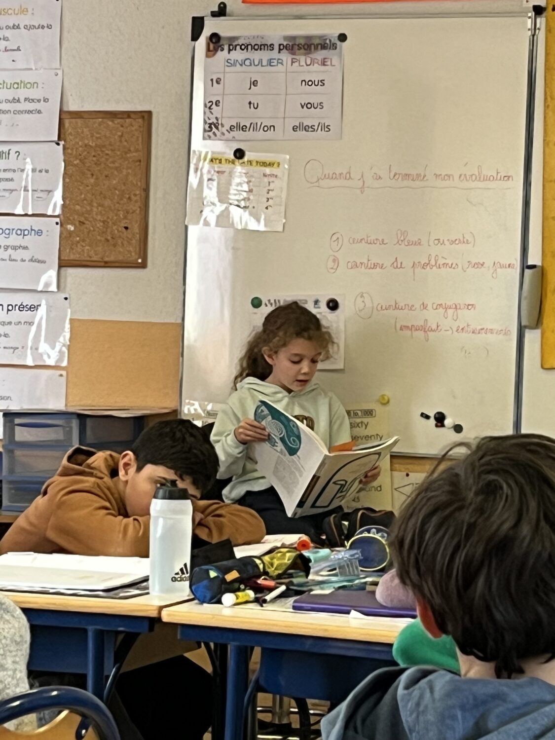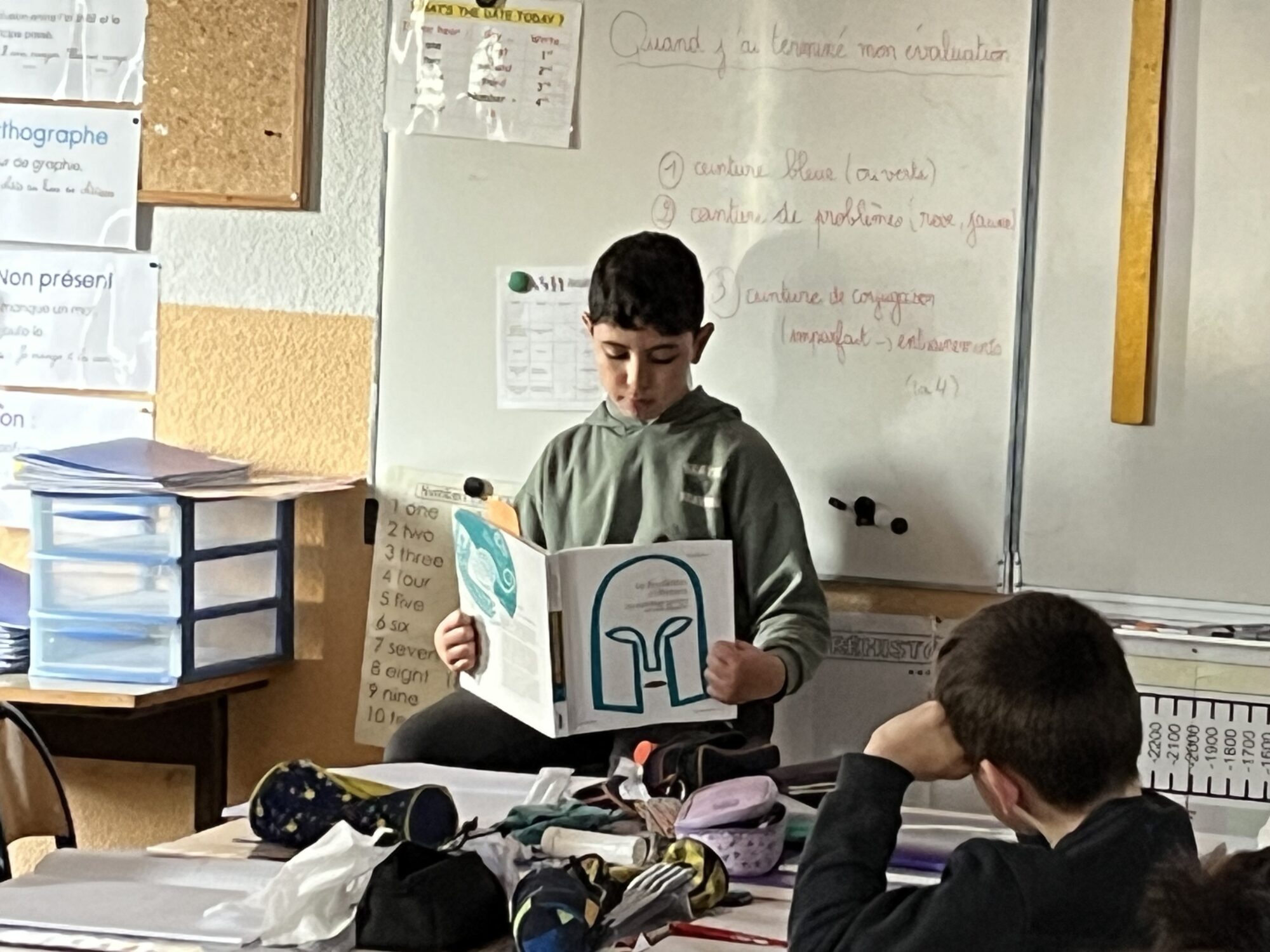 Nous poursuivons aussi les présentations de livres et d’exposés. Découvrir de nouveaux livres pour susciter l’envie de découvrir ! S’exercer également devant les autres à synthétiser sa pensée, à s’exprimer clairement en faisant découvrir un pays, un sport, un animal sous forme de diaporama. Ces deux exercices ont à nouveau été relevés avec brio !