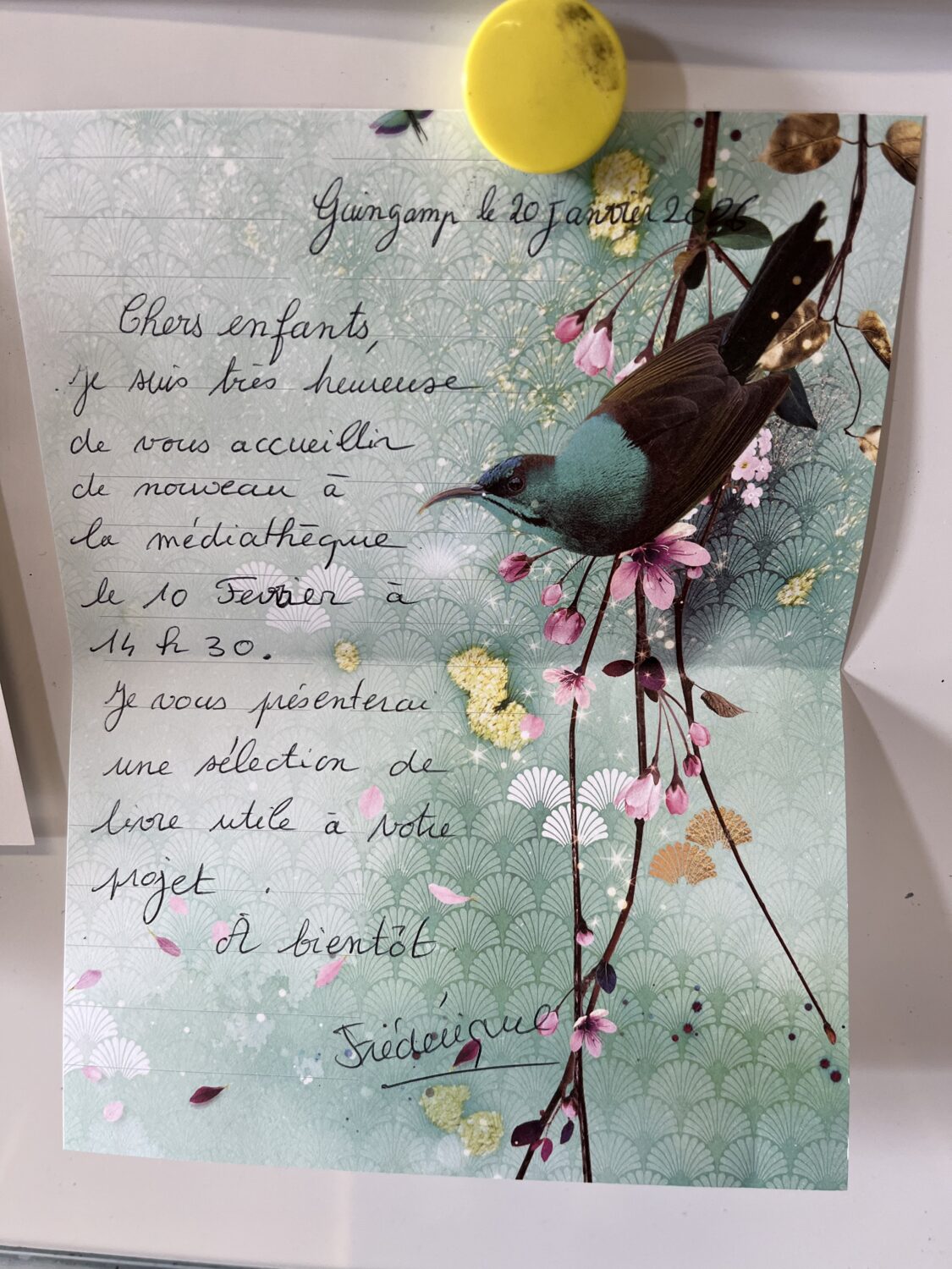 Nous avons aussi reçu un courrier de la médiathèque. Nous poursuivons notre projet correspondance. Nous nous y rendrons très prochainement pour découvrir les livres sélectionnés par Frédérique. Nous vous expliquerons en quoi consiste ce projet dans un prochain article.